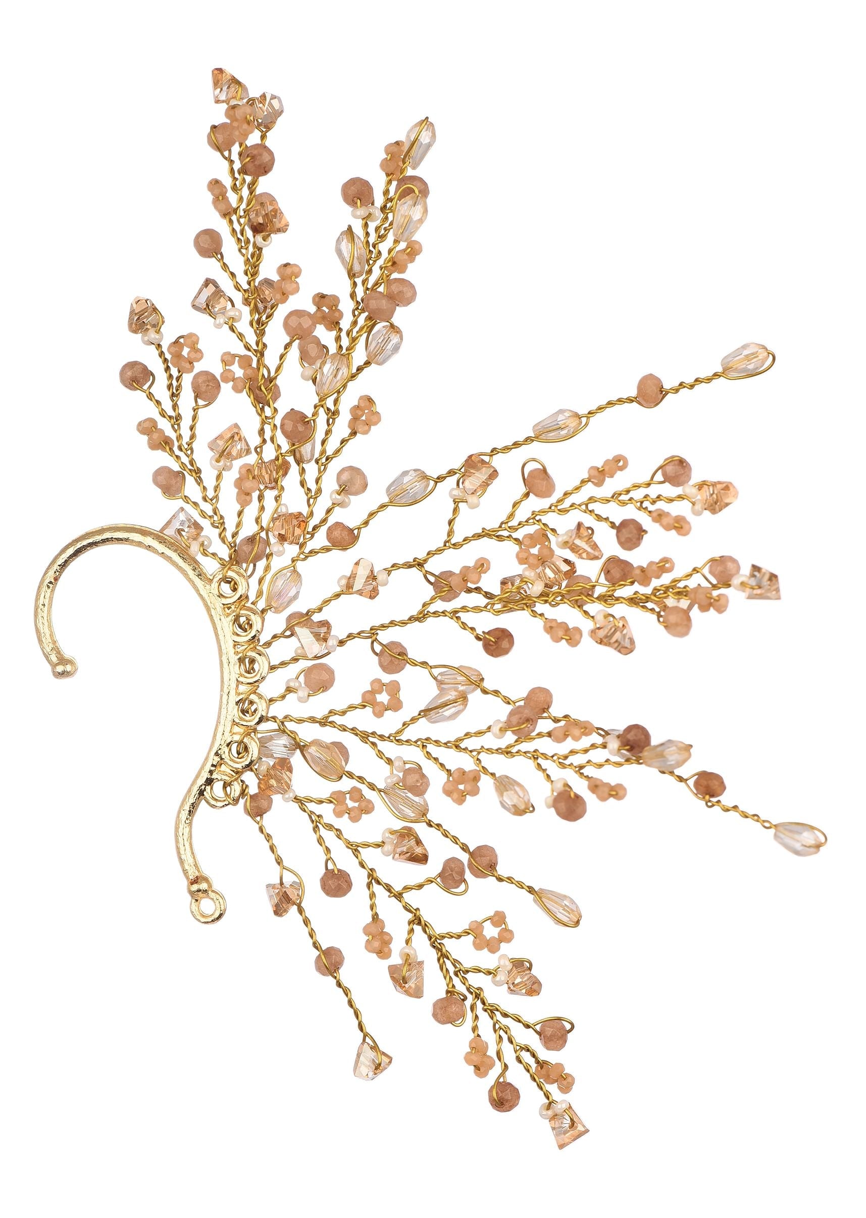 For a standout look, pair your multicolored and red handcrafted earcuff with a sleek, low bun to highlight the intricate details.