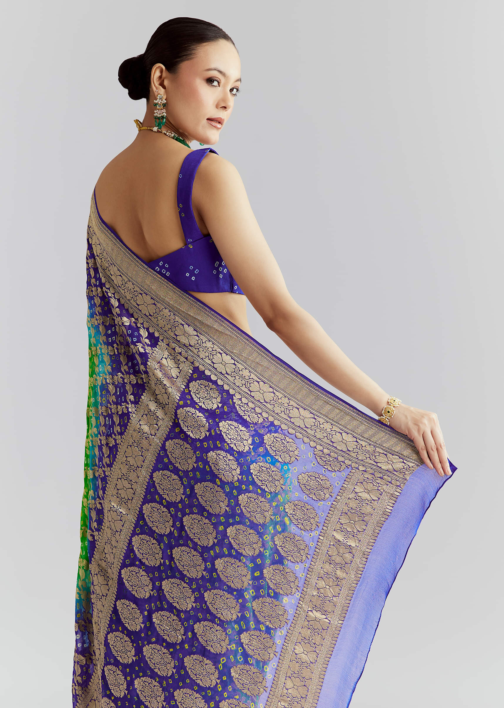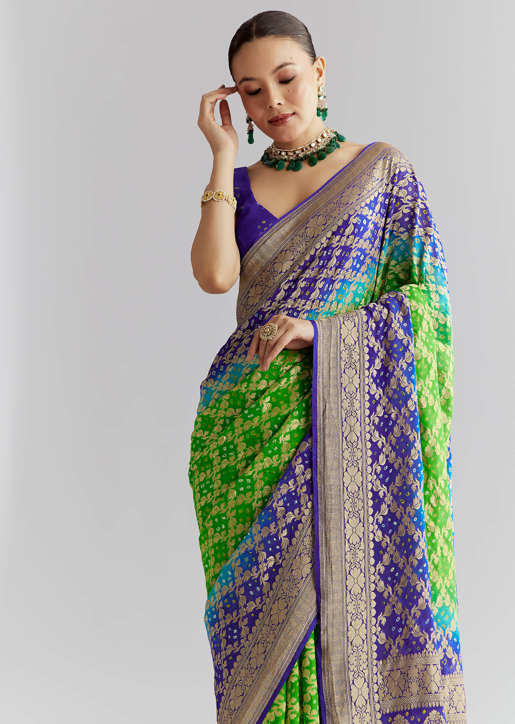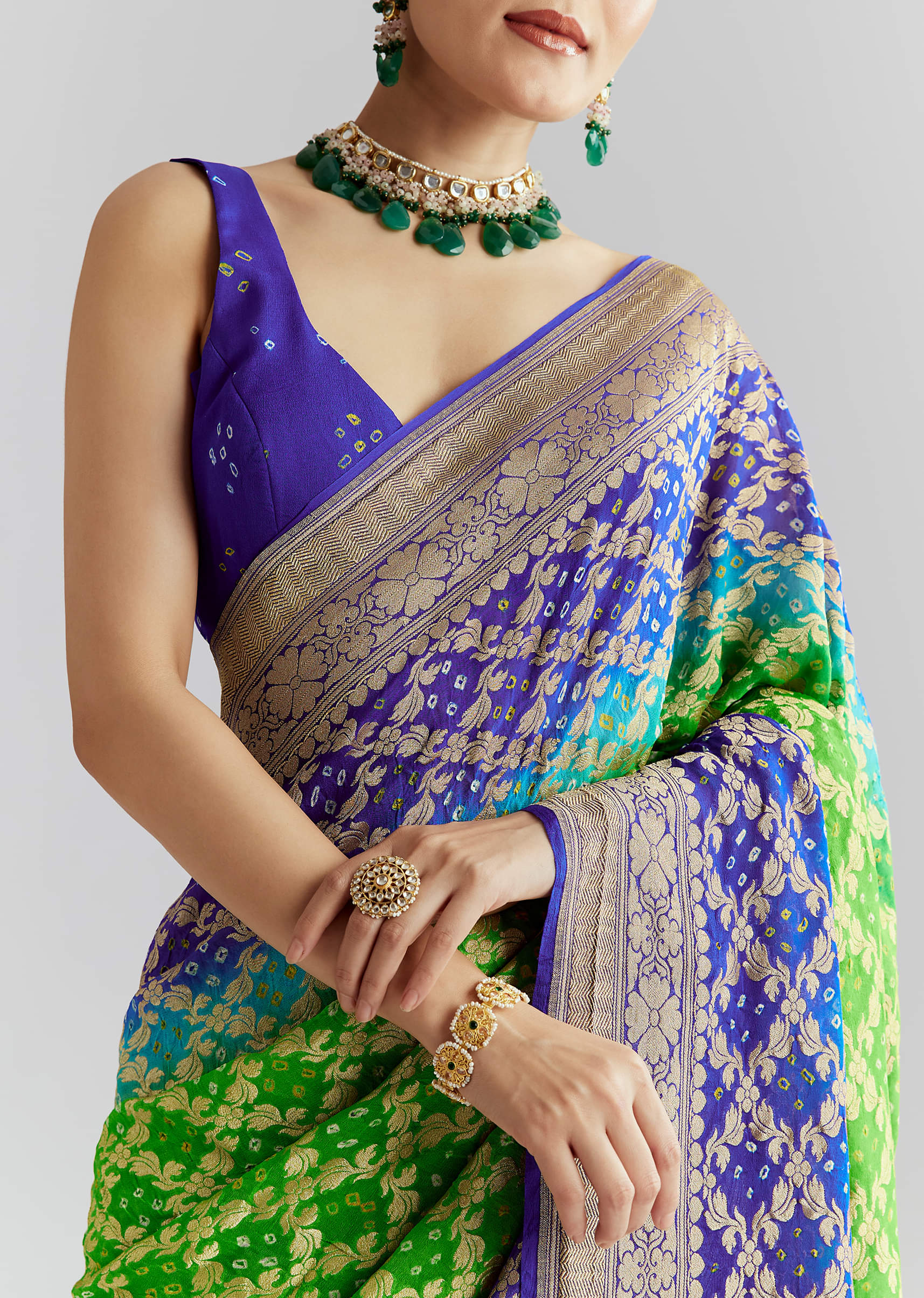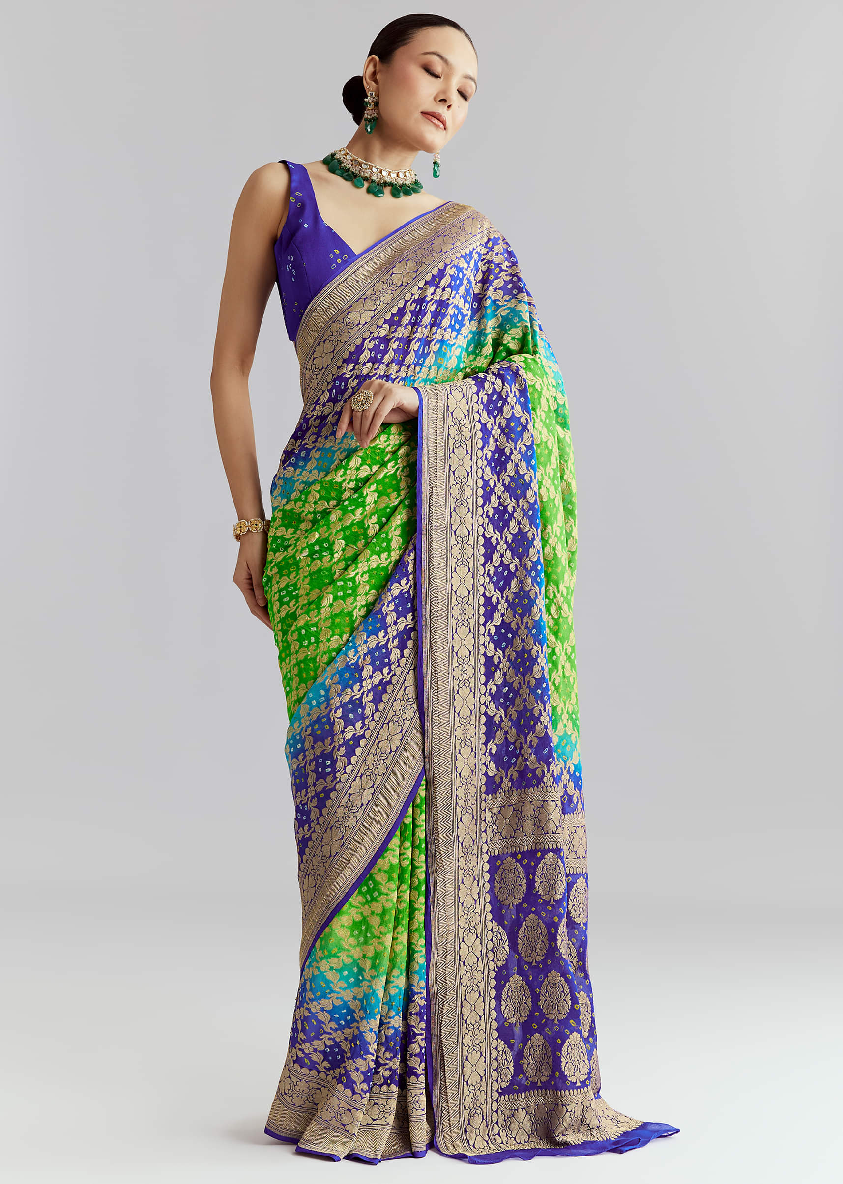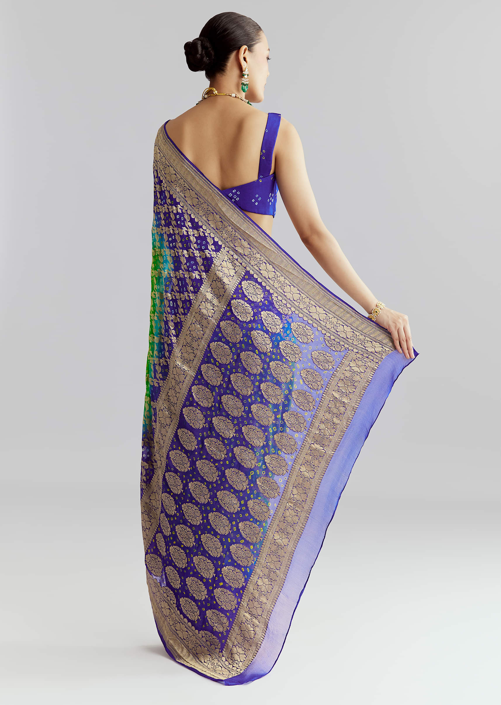 Multicolour Khadi Georgette Woven Saree With Bandhani And Butti Work