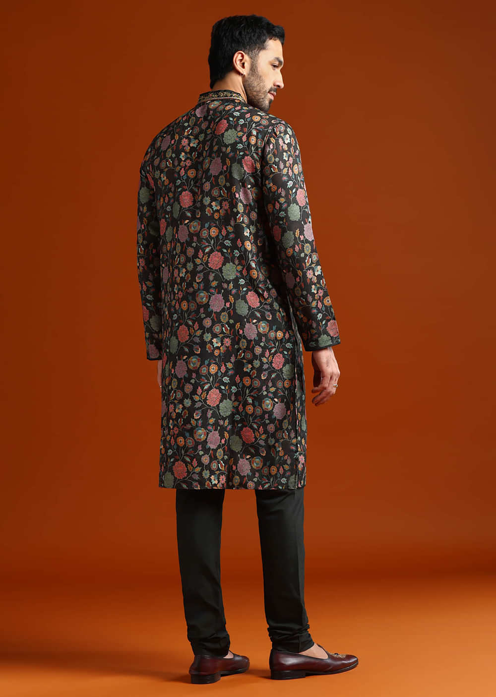 Multicolour Viscose Printed Kurta Set For Men With Heavy Hand Embroidery