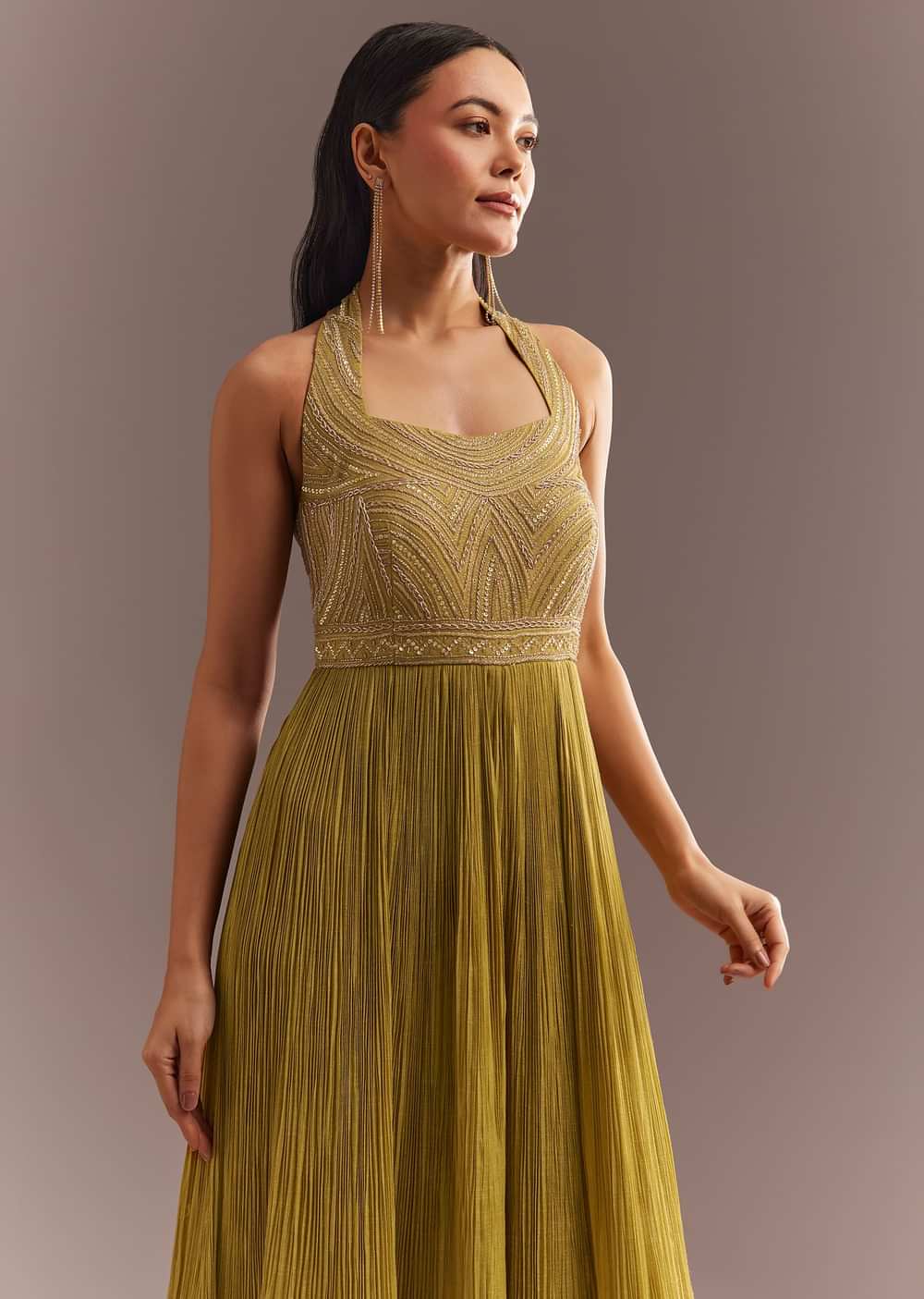 Mustard French Tissue Jumpsuit With Cutdana Work