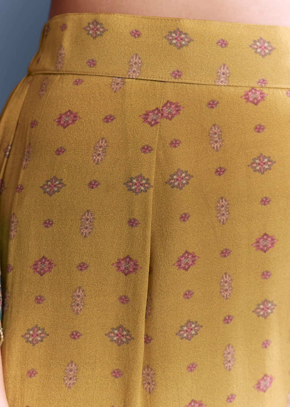 Mustard Yellow Crepe Kurta Set With Paisley And Floral Print