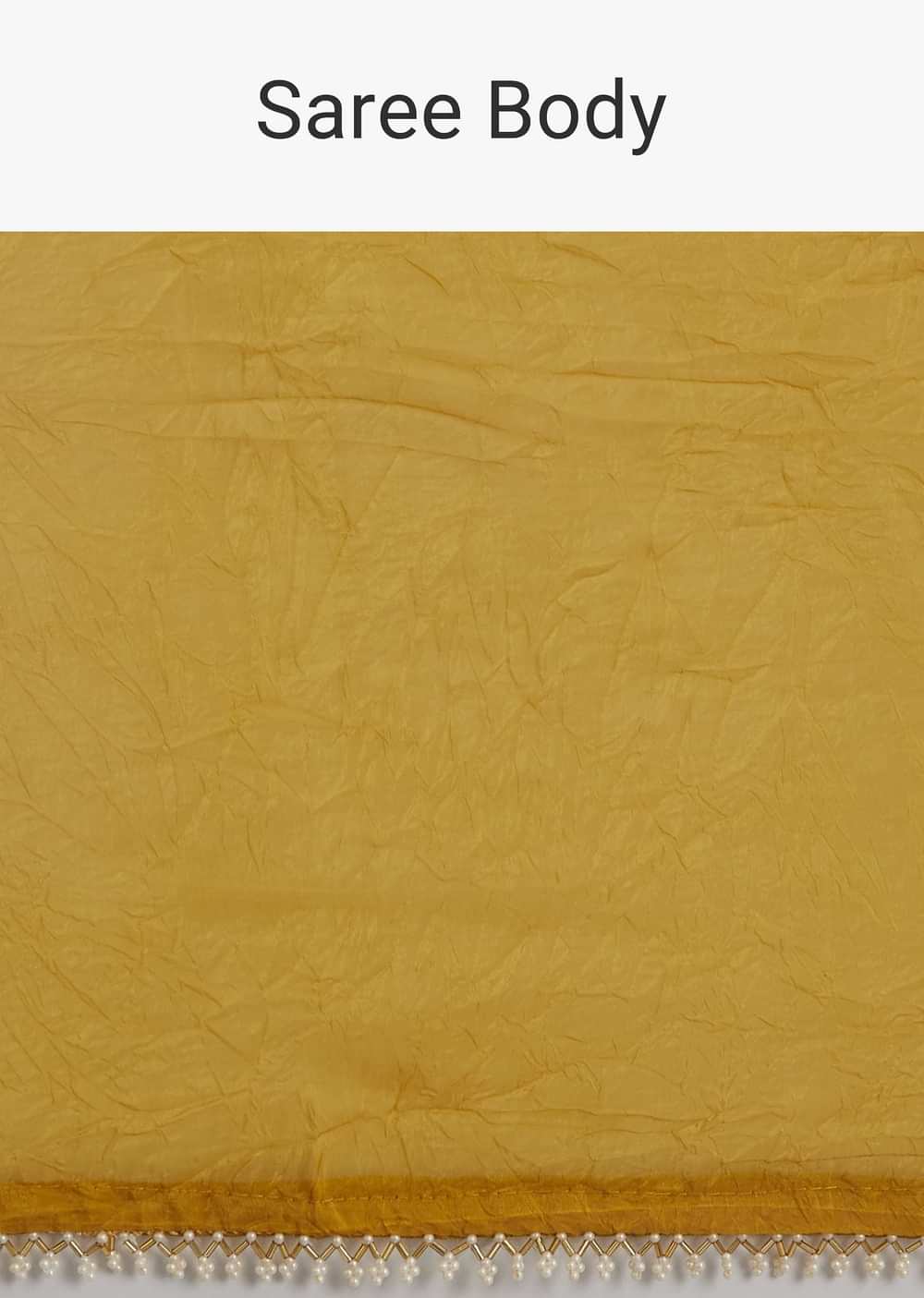 Mustard Yellow Crushed Tissue Saree With Moti Cutdana Embellished Border