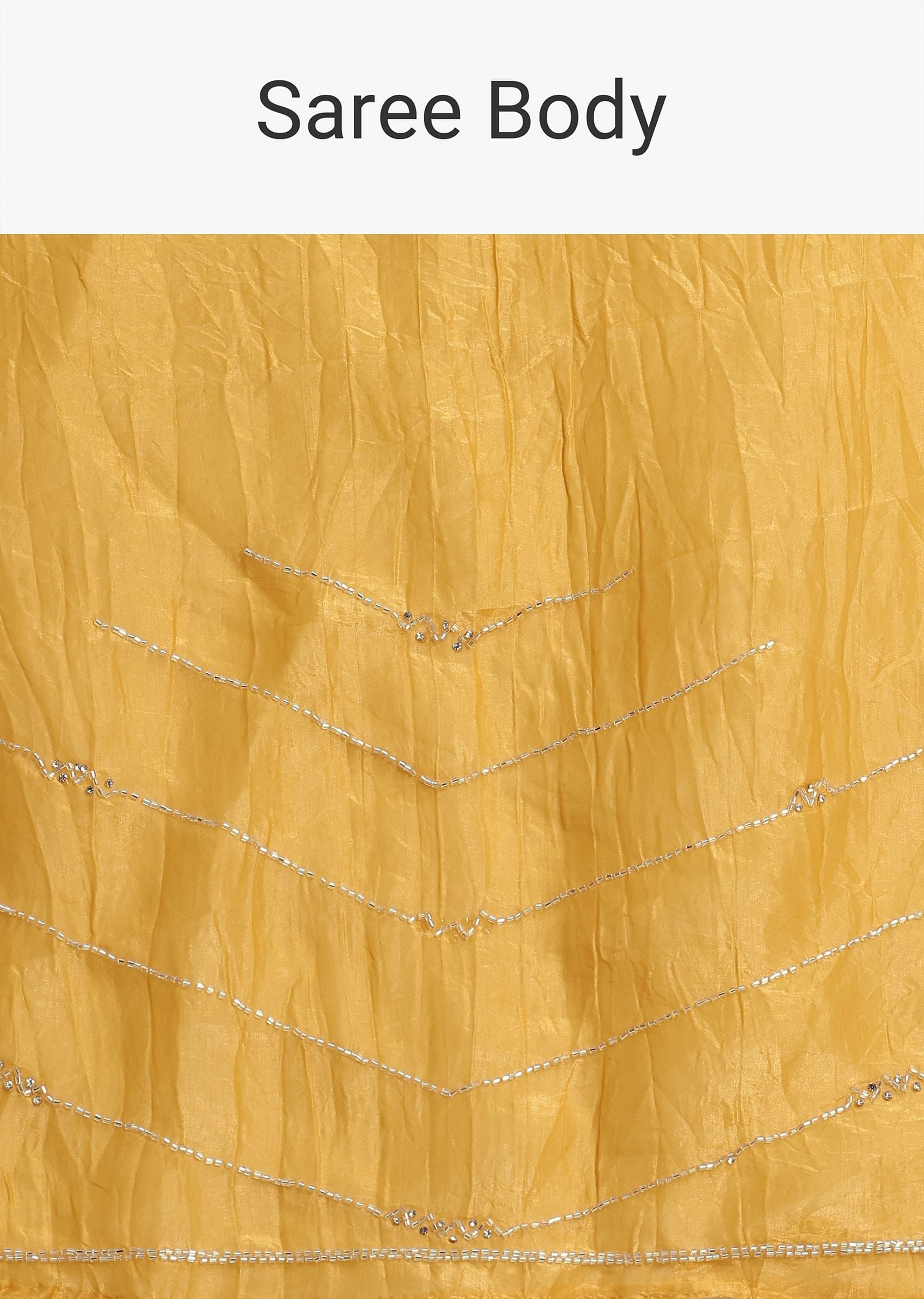 Indulge in the sophistication of our mustard yellow saree perfect for weddings and festive occasions. The saree is crafted from crepe fabric and adorned with delicate cutdana and stone work.... More Product Details