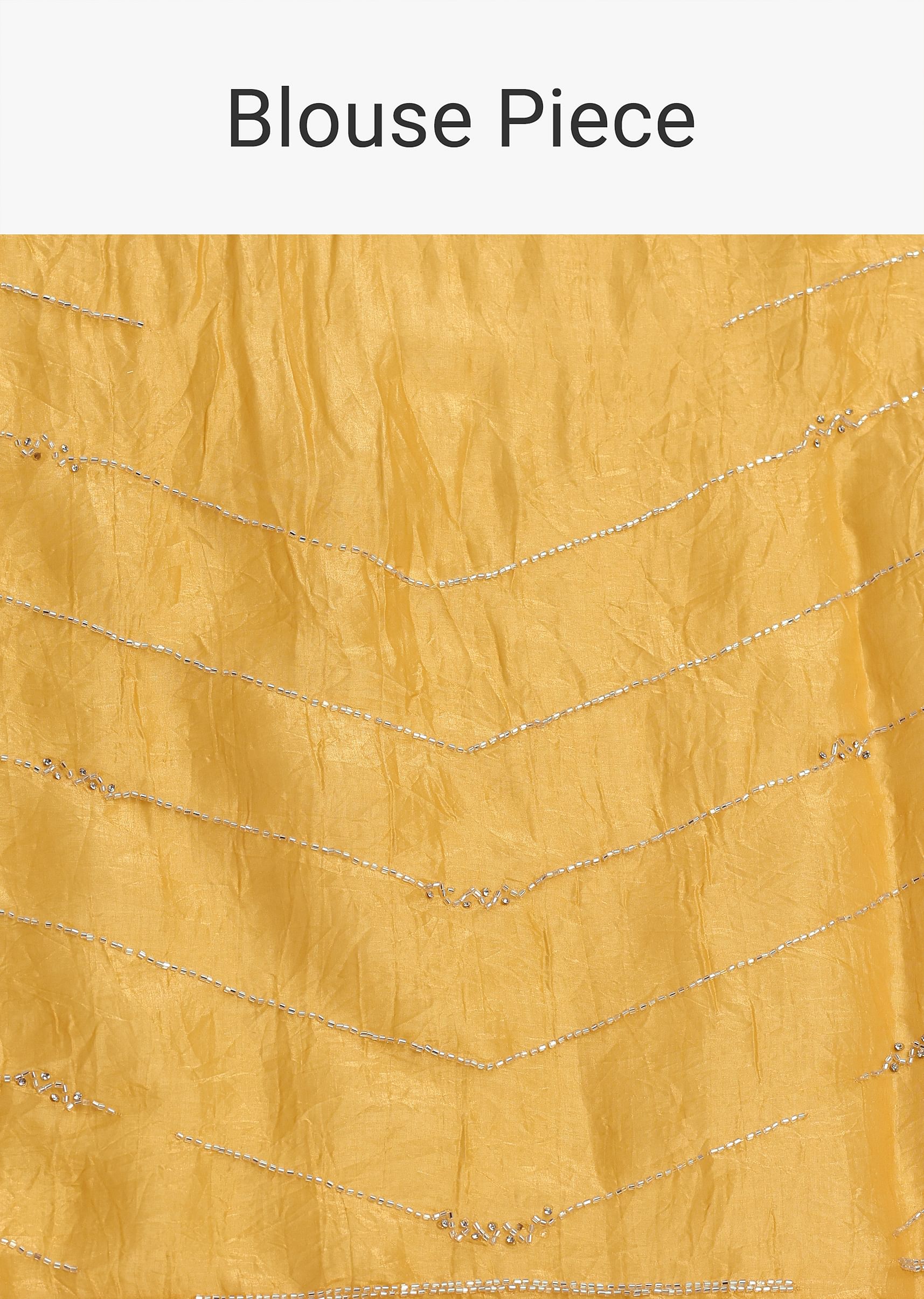 Mustard Yellow Embroidered Crepe Saree With Unstitched Blouse