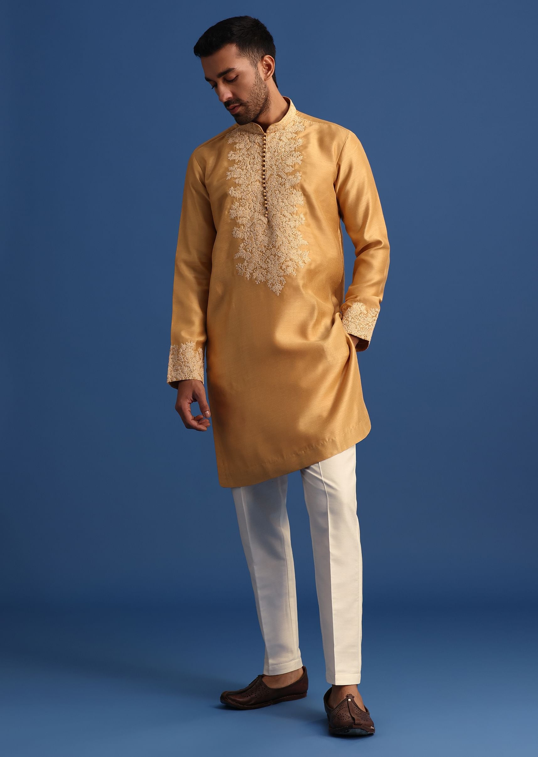 Mustard Yellow Embroidered Kurta Set With Resham Work