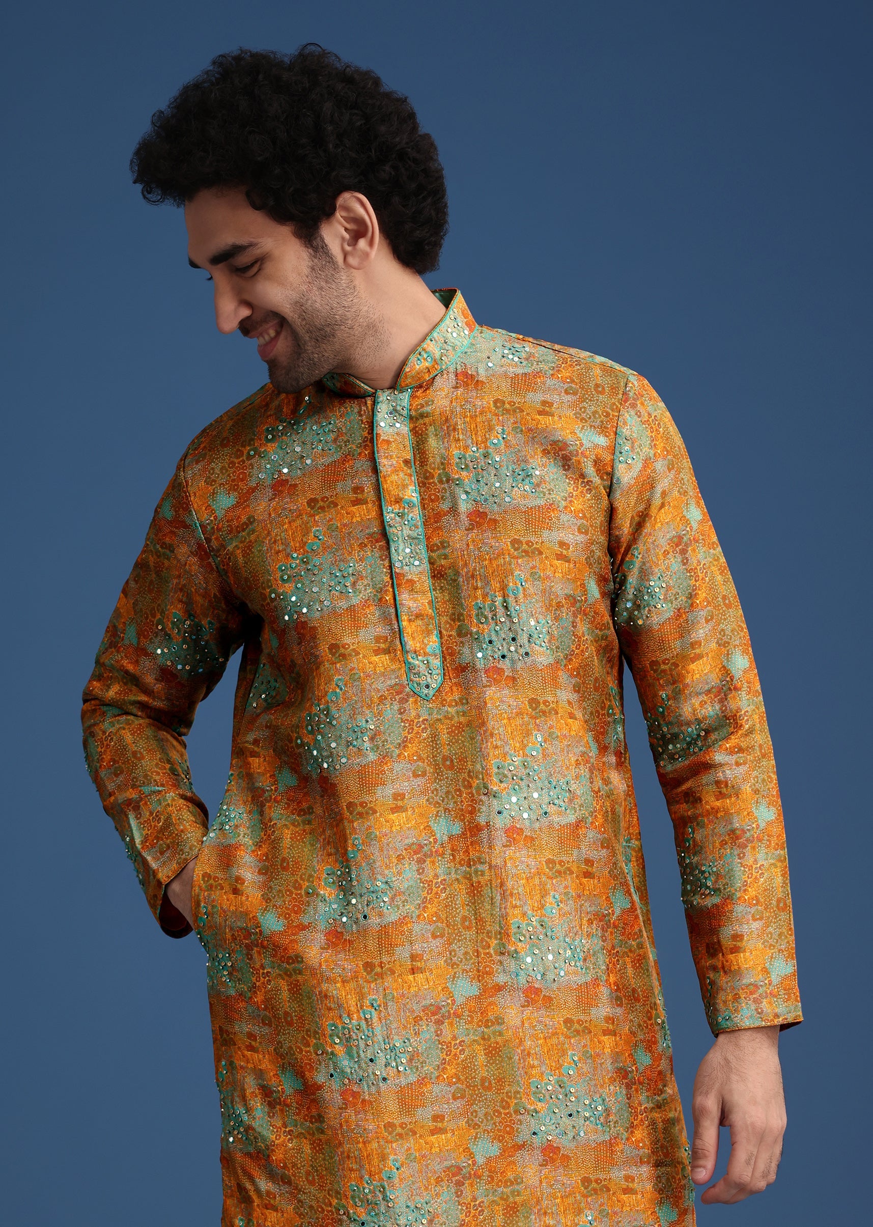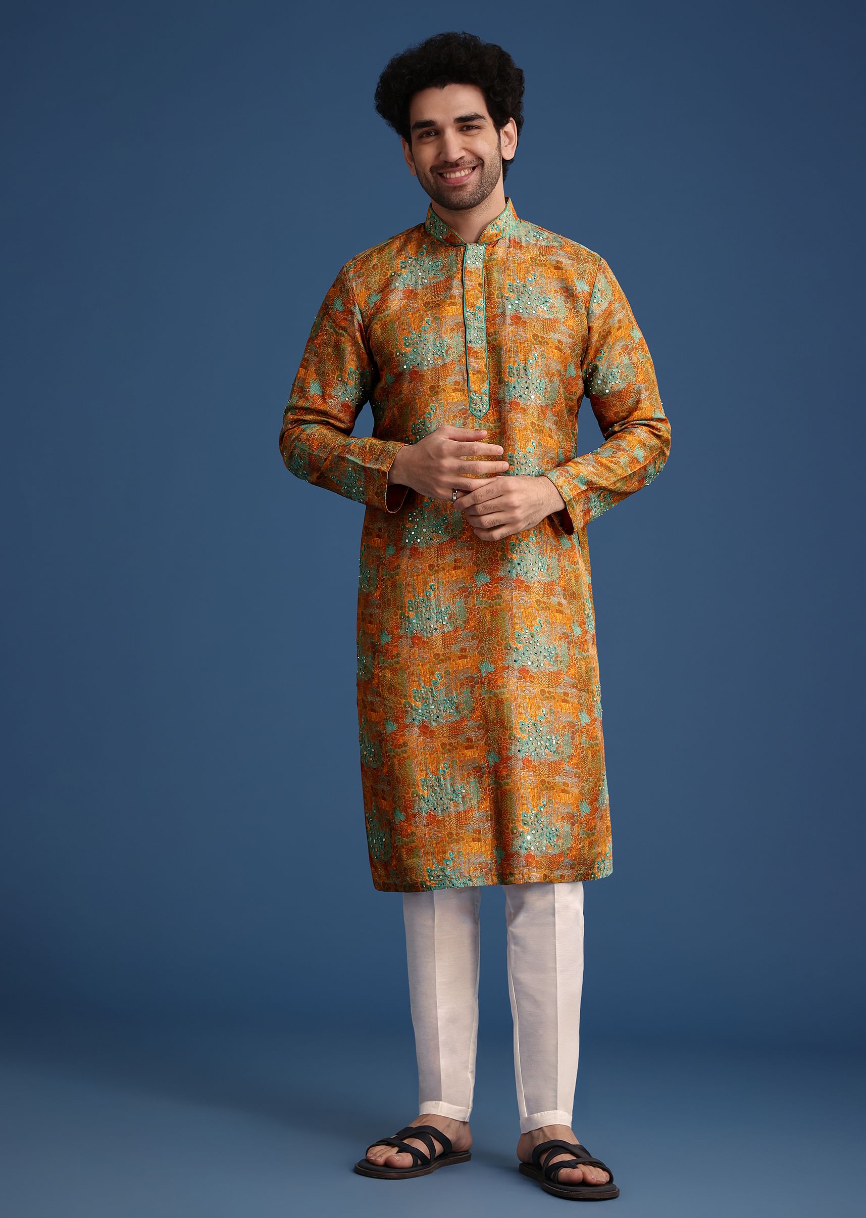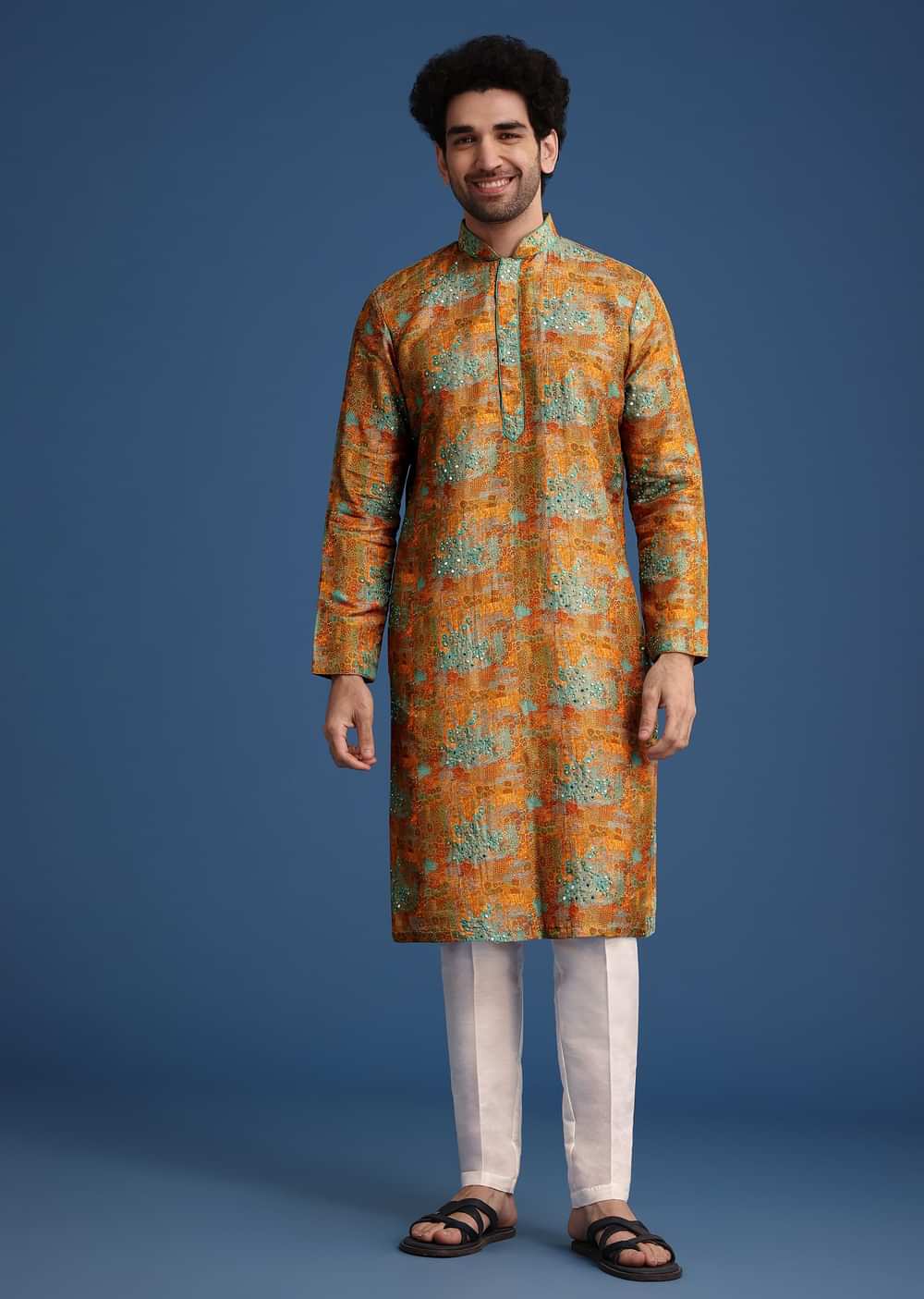 Turn Heads In This Mustard Yellow Silk Printed Kurta Set—A Perfect Blend Of Royal Elegance And Modern Charm. Crafted From Luxurious Silk With Intricate Prints That Add A Touch Of Heritage This Look Is Effortlessly Stylish And Celebrationready.Awarded As The Most Trusted Brand We'Re Delivering Styles You Love Just As Promised.