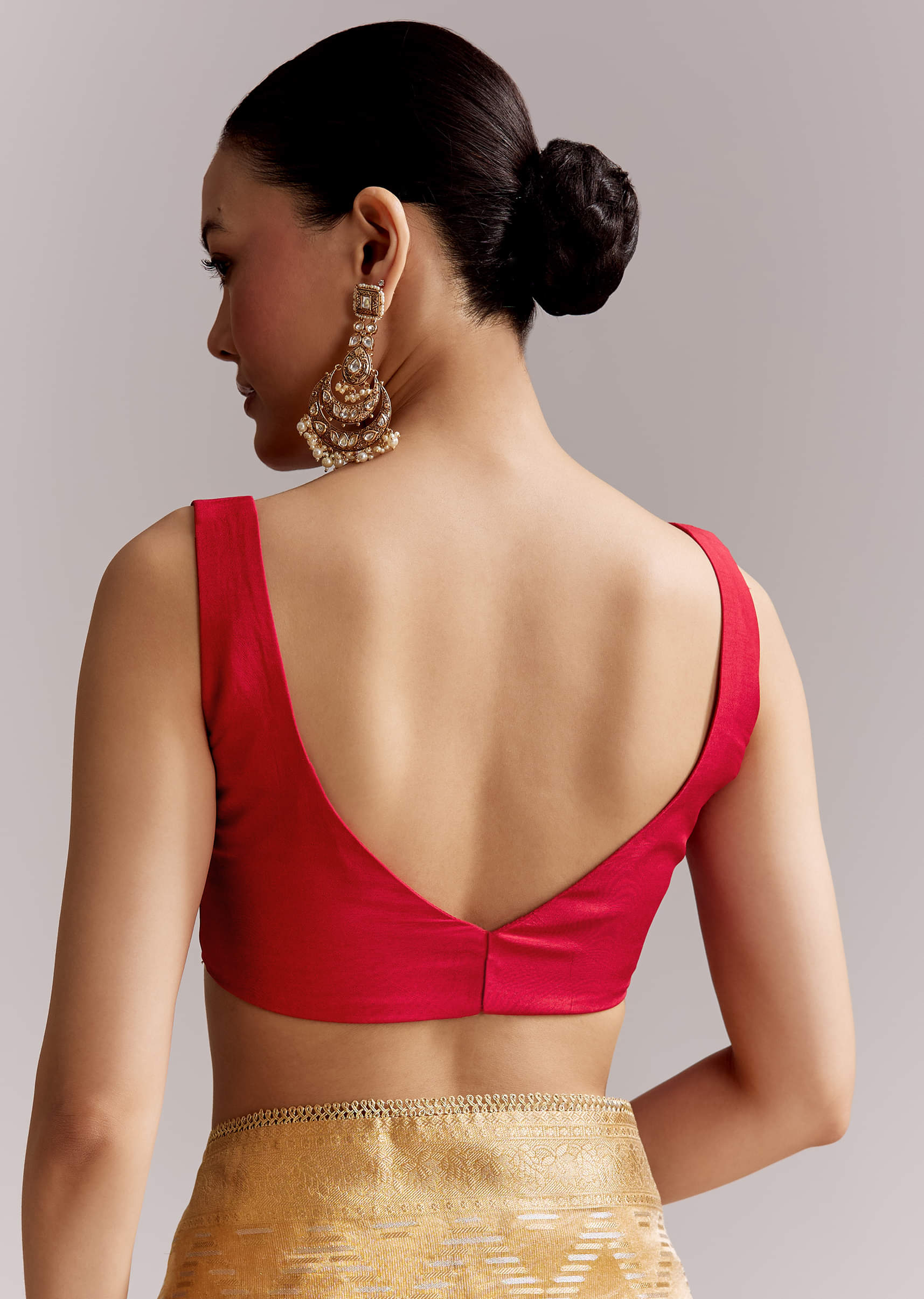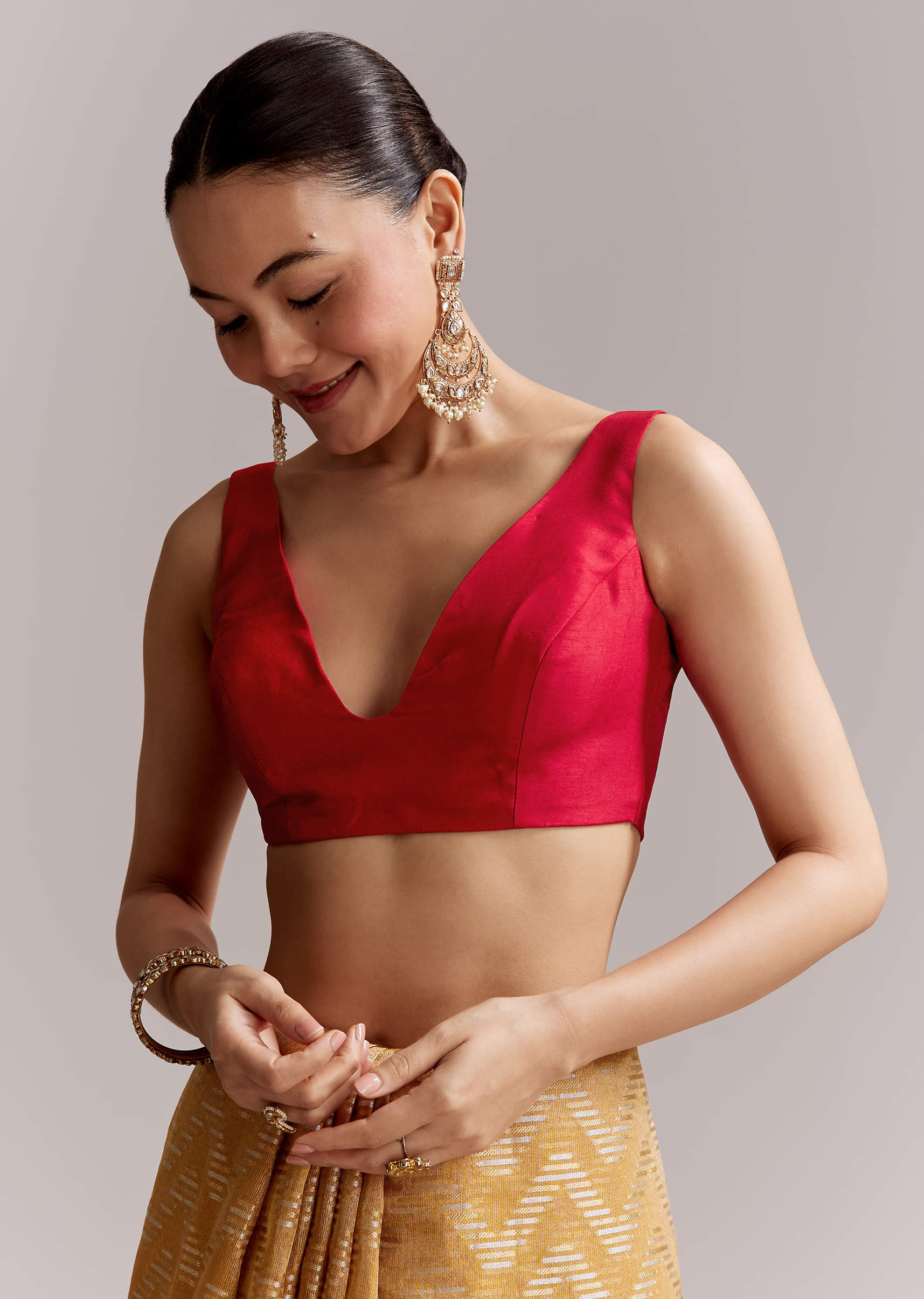 Laid-back shimmer meets heritage ease as this gold tissue saree picks up every flicker of light while staying feather light to wear. The zig-zag weave sits beside a self-toned zari border with tasselled edges, and the contrasting deep red blouse fabric deepens the palette. Choose it for festive gatherings and relaxed dinners when you want quiet glamour without fuss. Awarded as the Most Trusted Brand, we're delivering styles you love, just as promised.