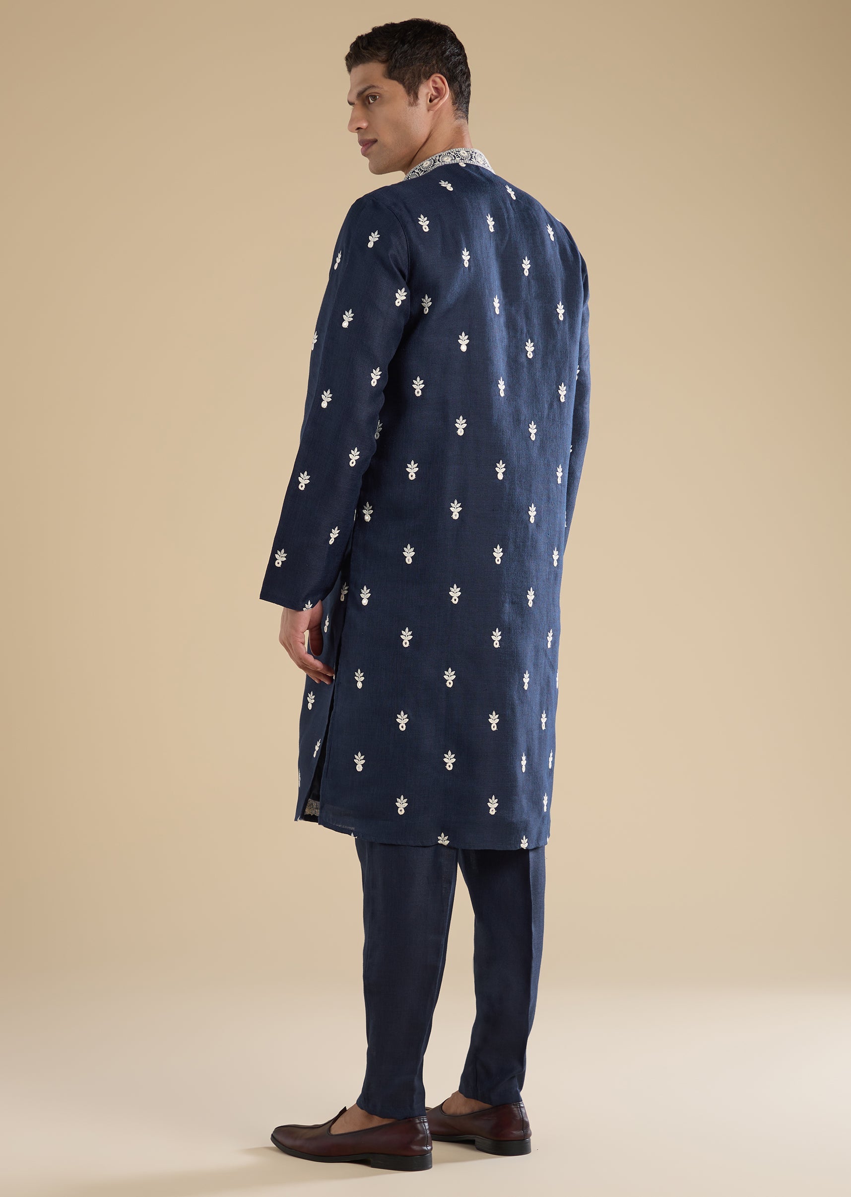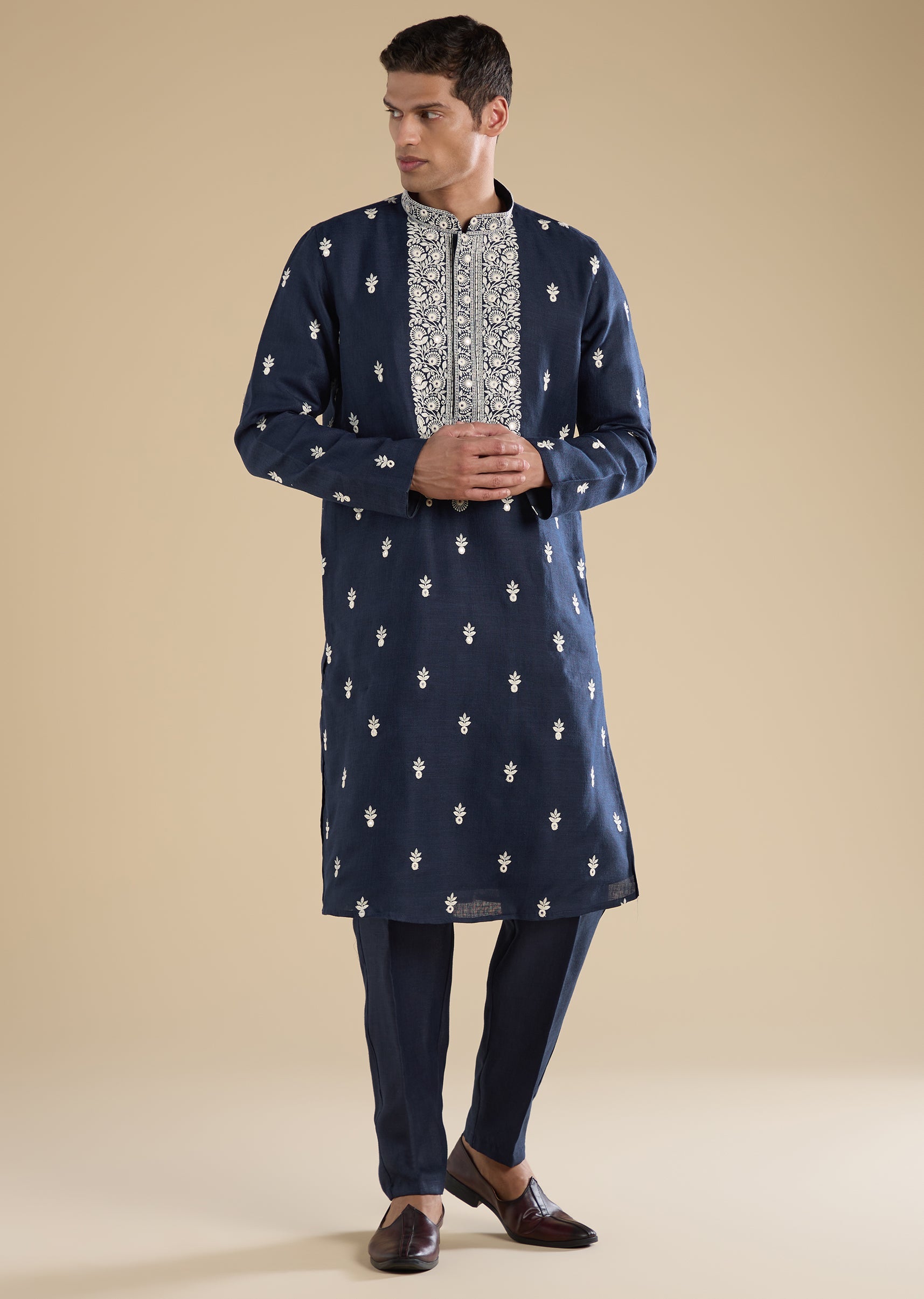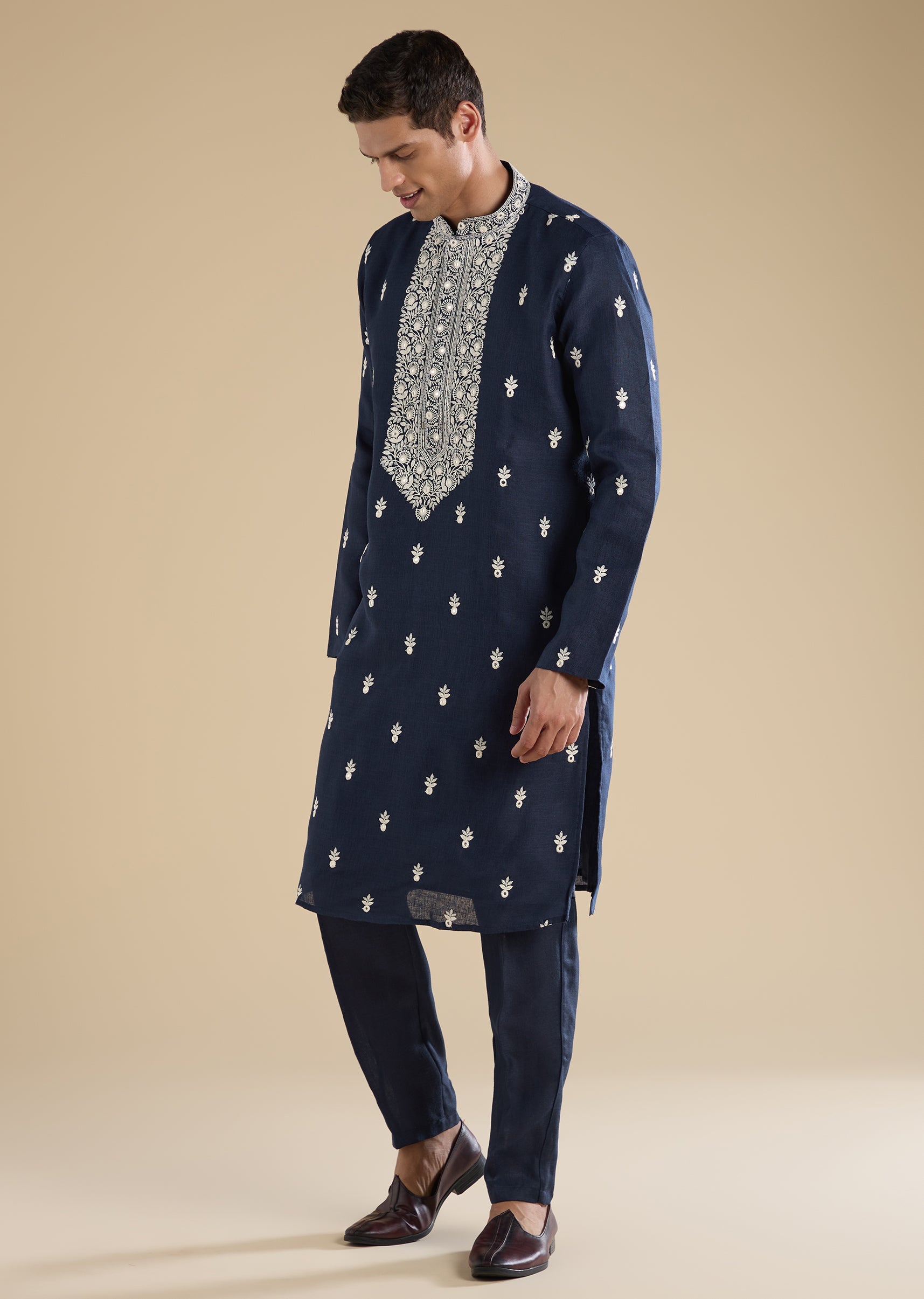 Navy Blue Embroidered Kurta Set