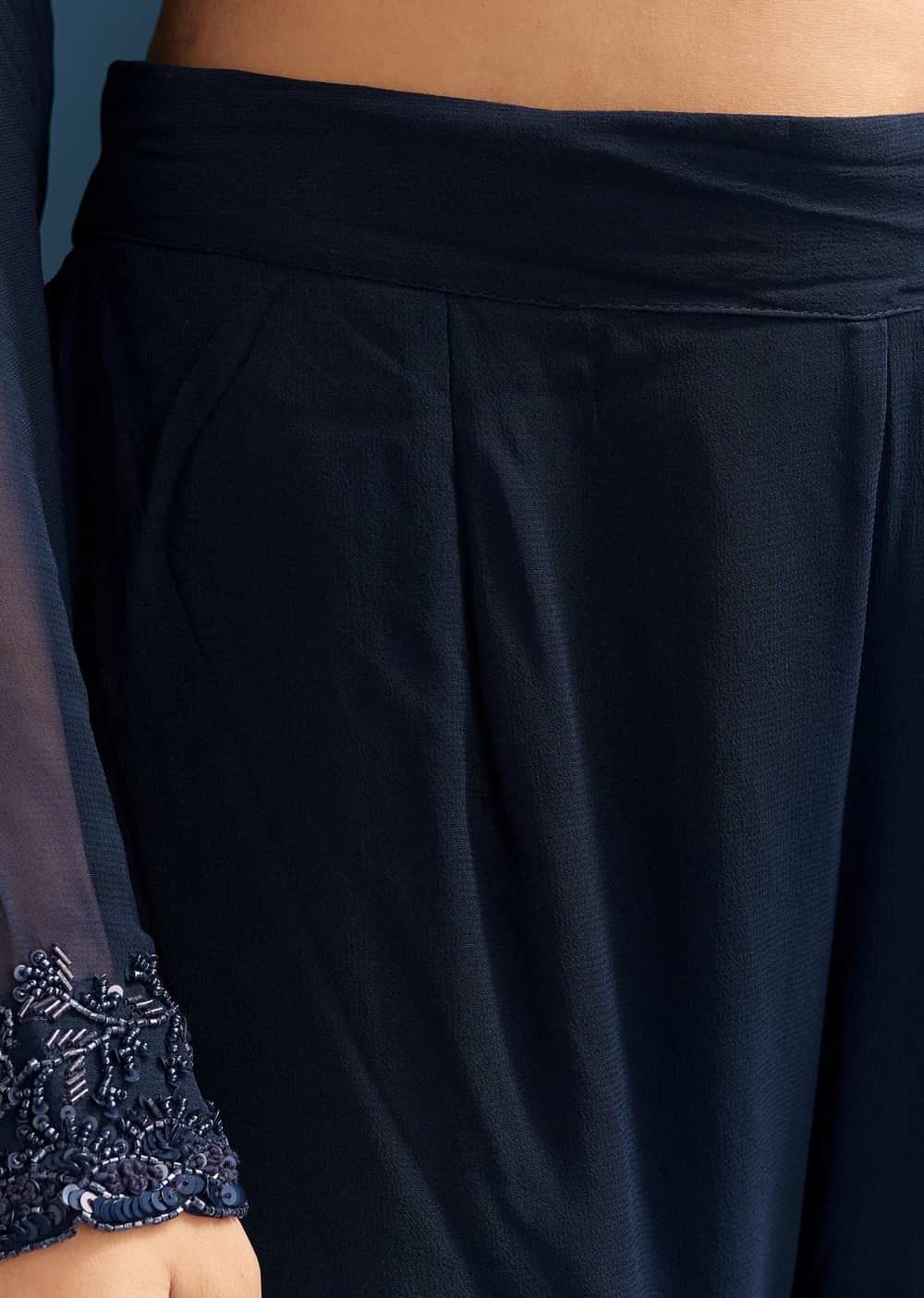 Navy Blue Georgette Sharara Suit With Embroidered Kurta And Dupatta