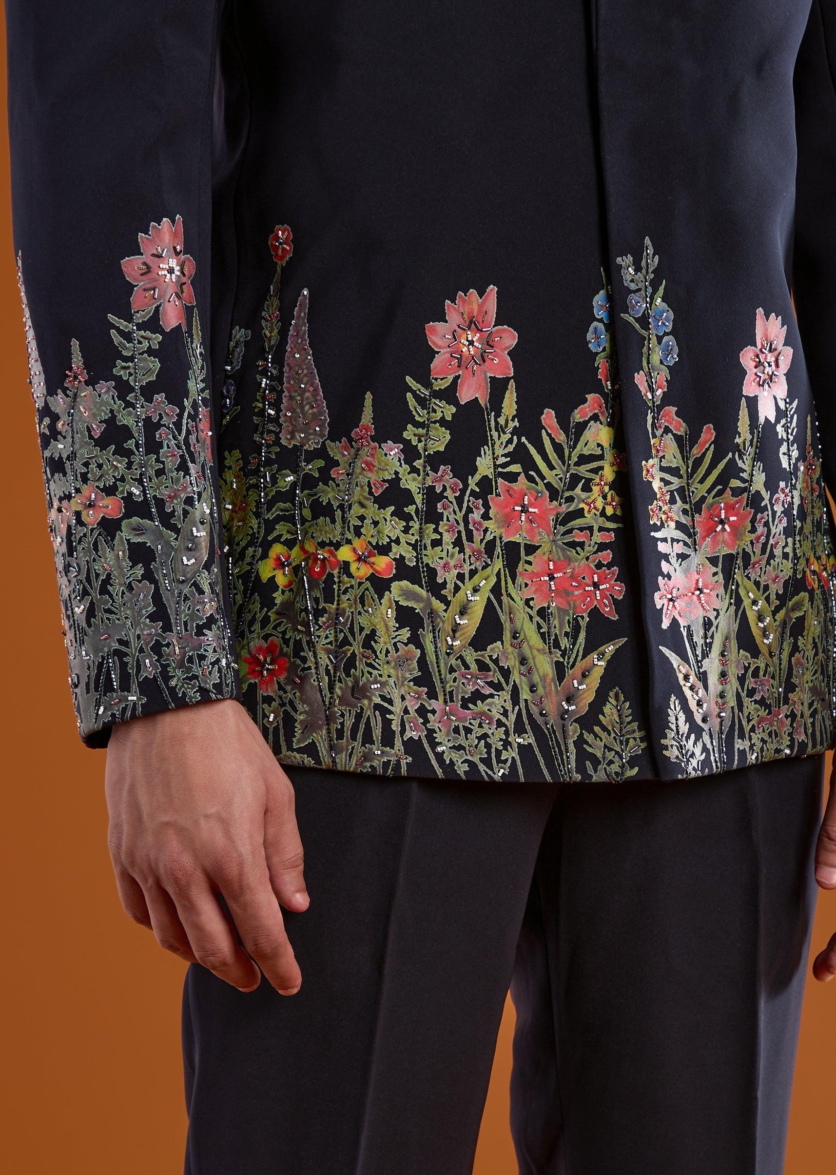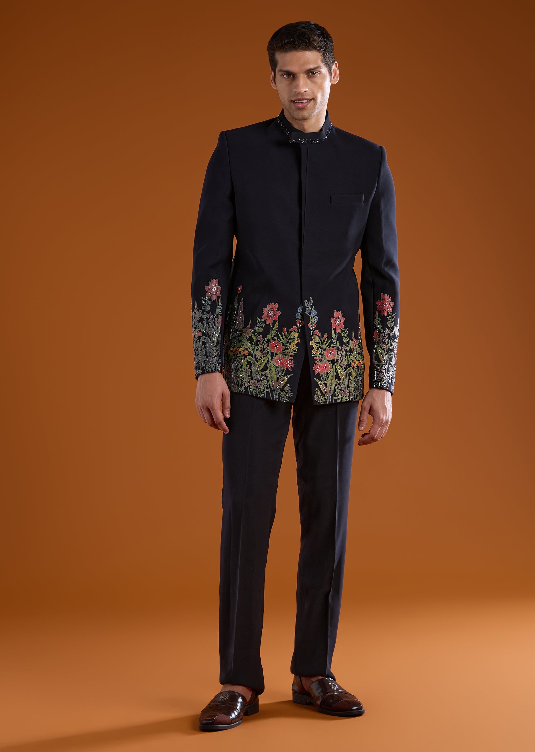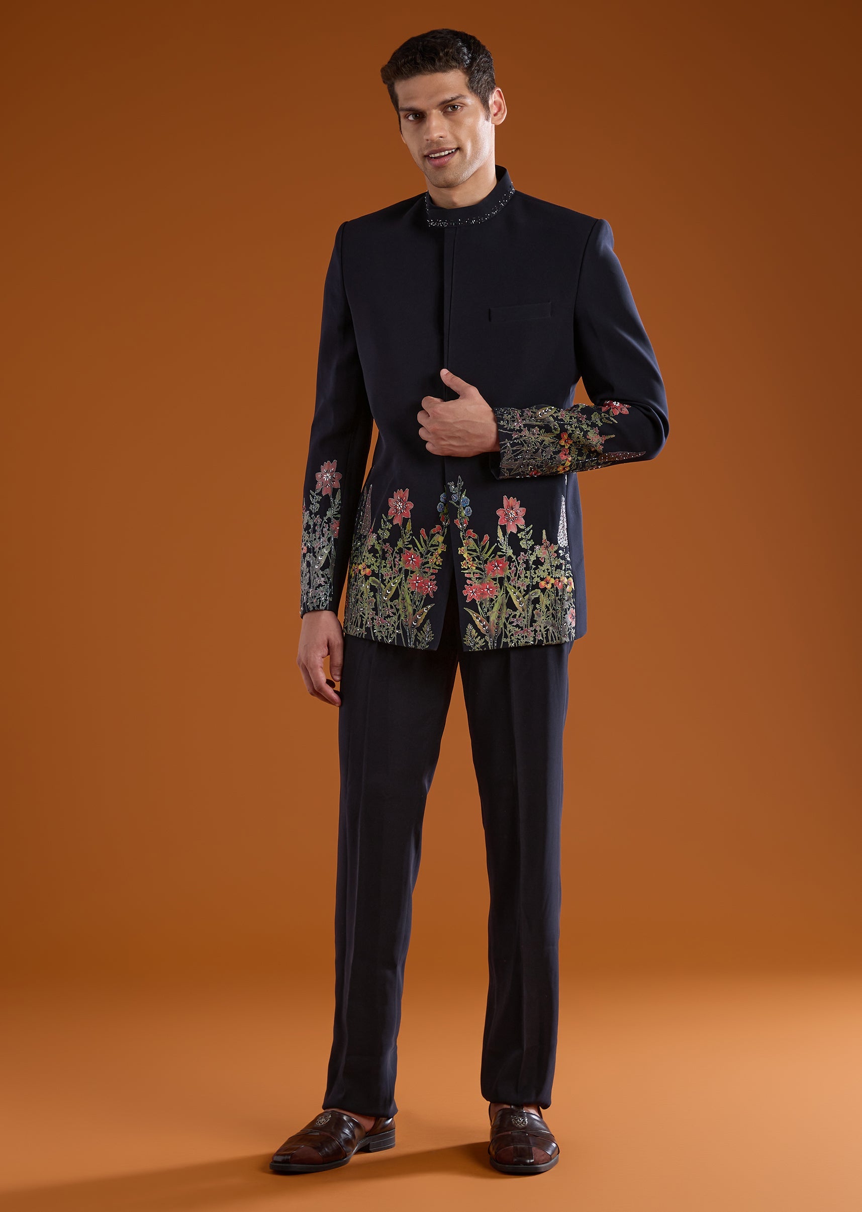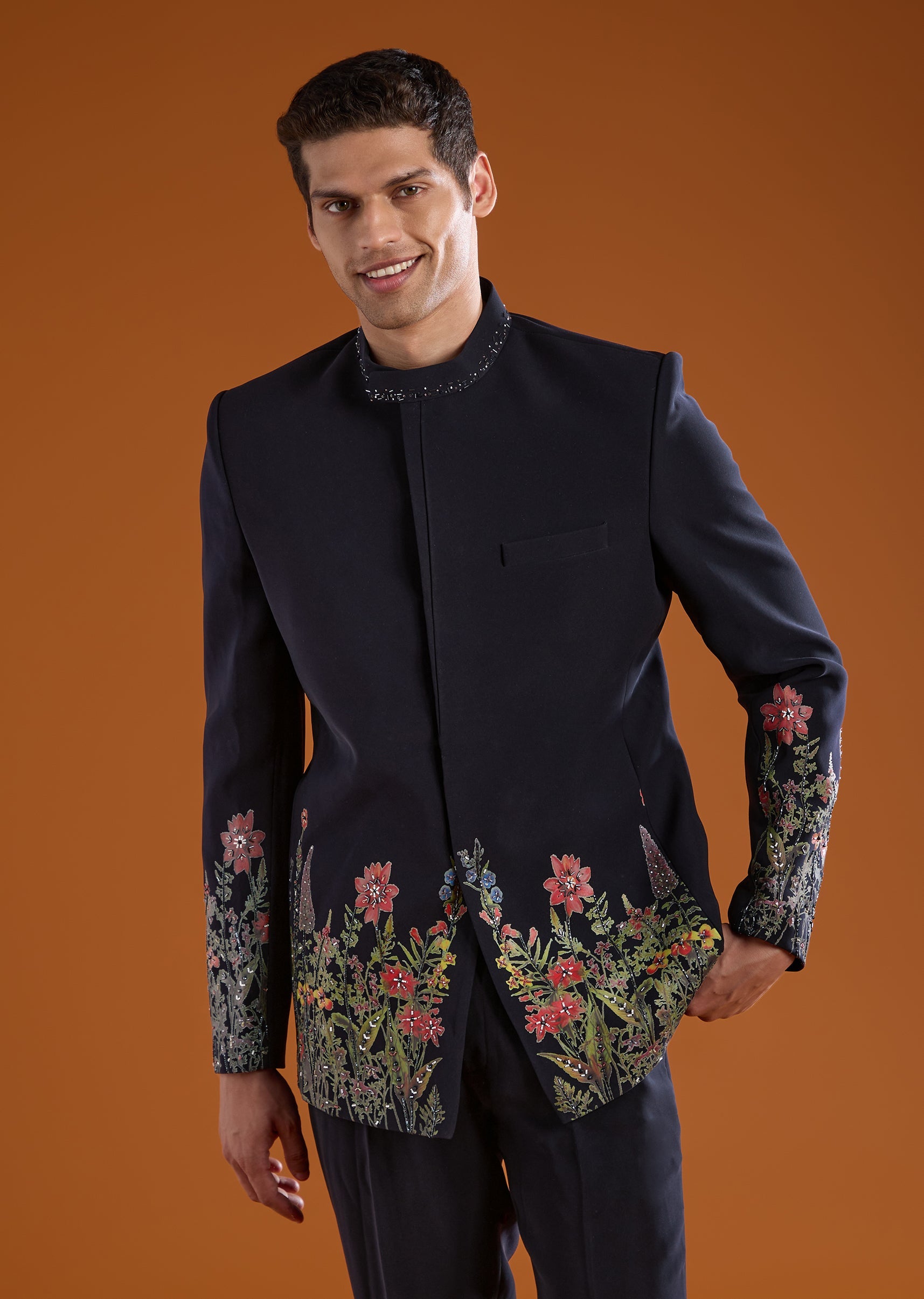 Navy Blue Jodhpuri Kurta Set with Bead Work