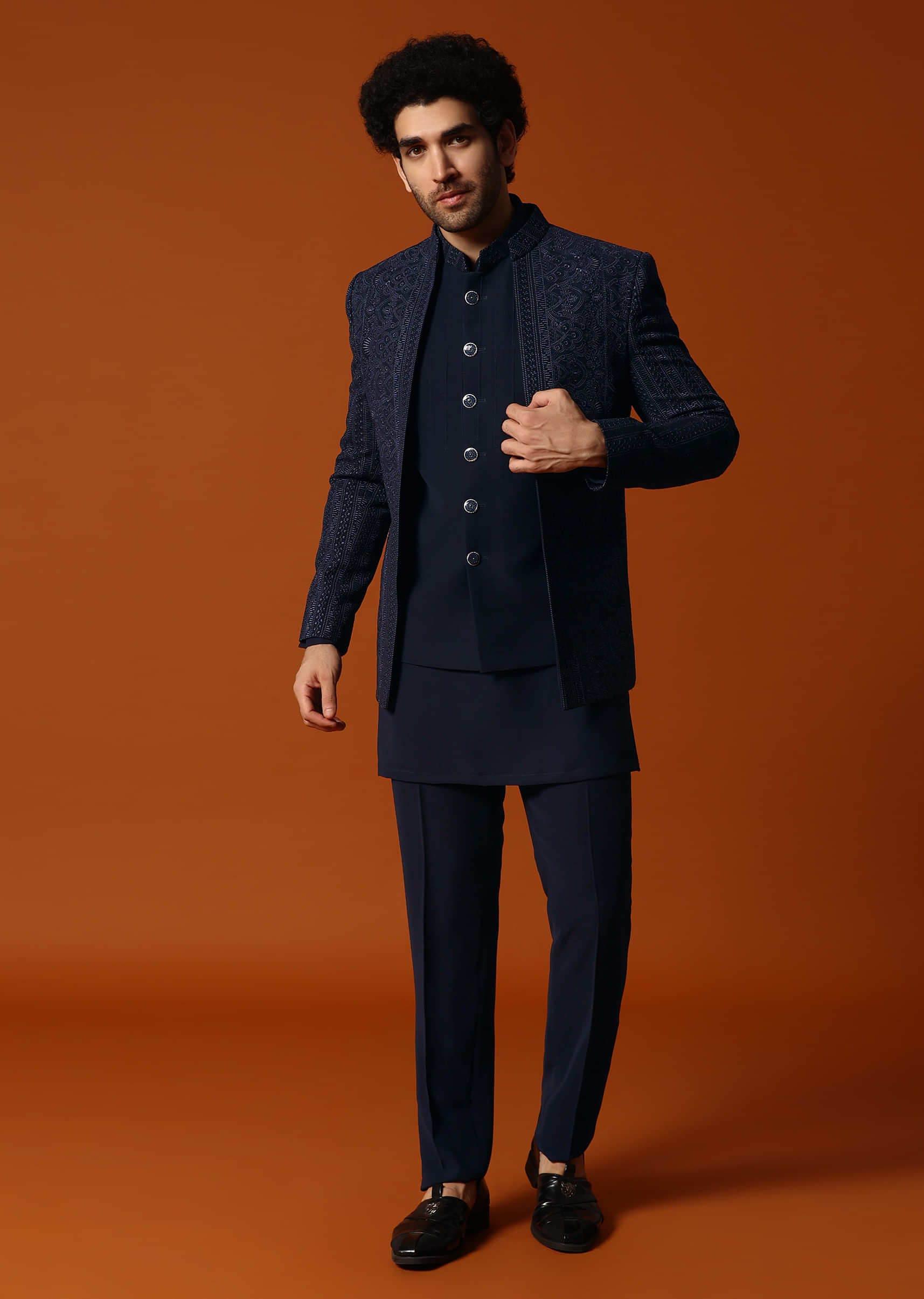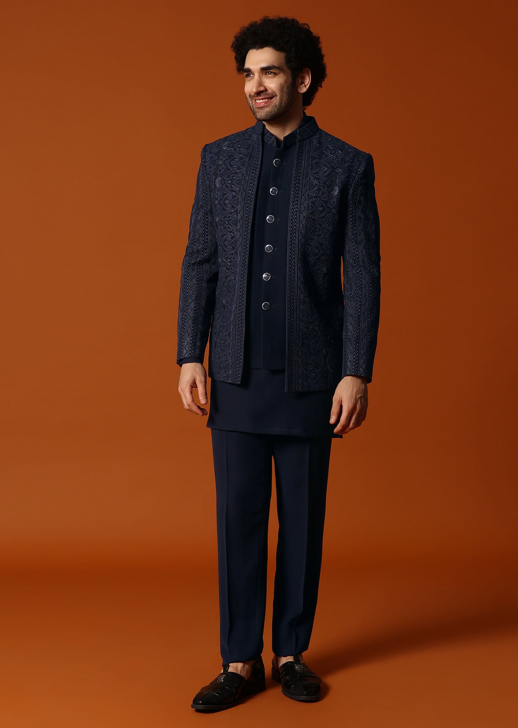 Navy Blue Jodhpuri Set In Resham Work For Men