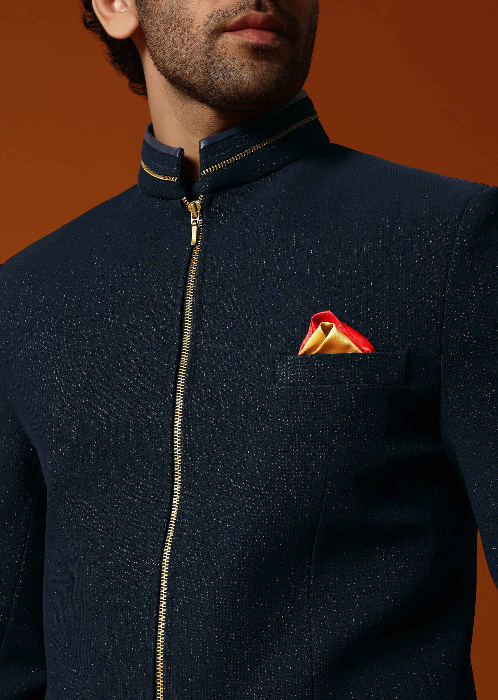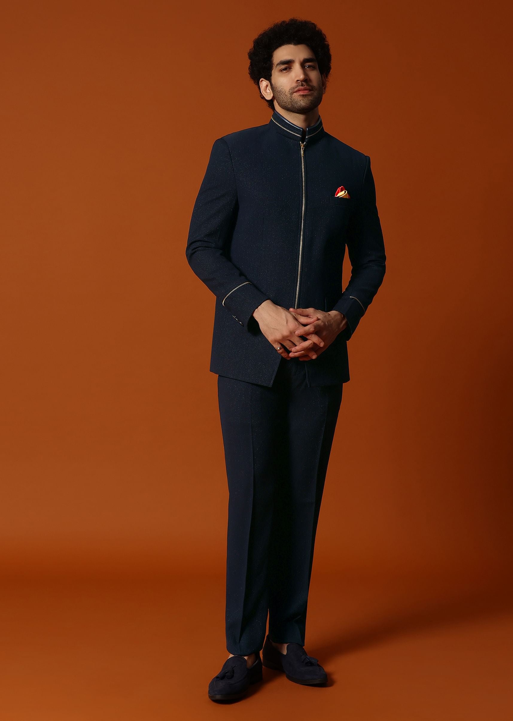 Indulge in celebration with our meticulously designed navy blue jodhpuri set, perfect for sangeet and wedding festivities. Crafted from premium polyester, this jodhpuri comes complete with a shirt and bottoms. Awarded as the Most Trusted Brand, we're delivering styles you love, just as promised.