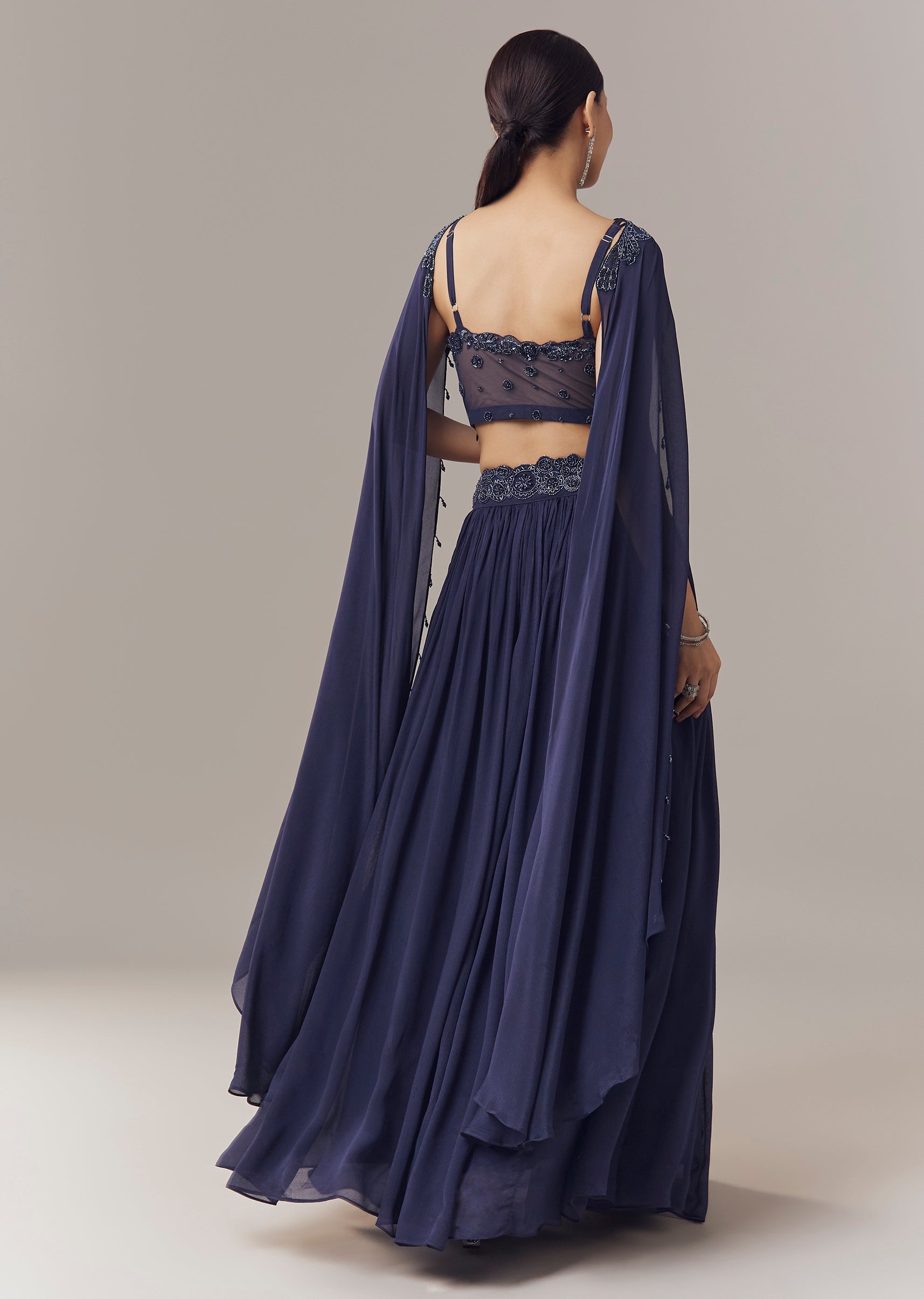 Navy Blue Lehenga With Beads Sequins And Cut Dana Work