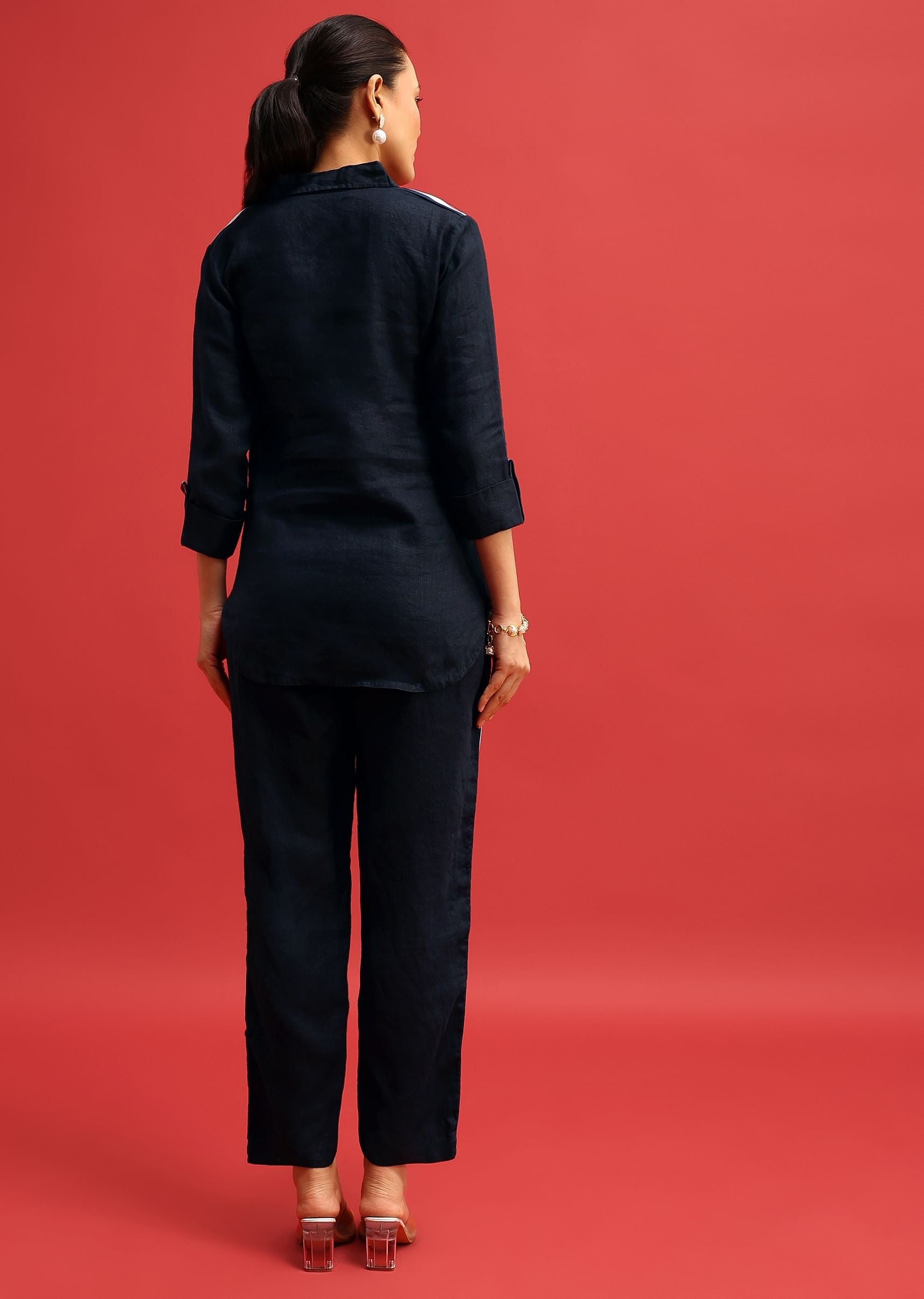 Transform your casual look with our navy blue co-ord set created for seamless elegance. Fabricated from fine linen and embellished with detailed patchwork this outfit includes a shirt and coordinating pants. Awarded as the Most Trusted Brand, we're delivering styles you love, just as promised.