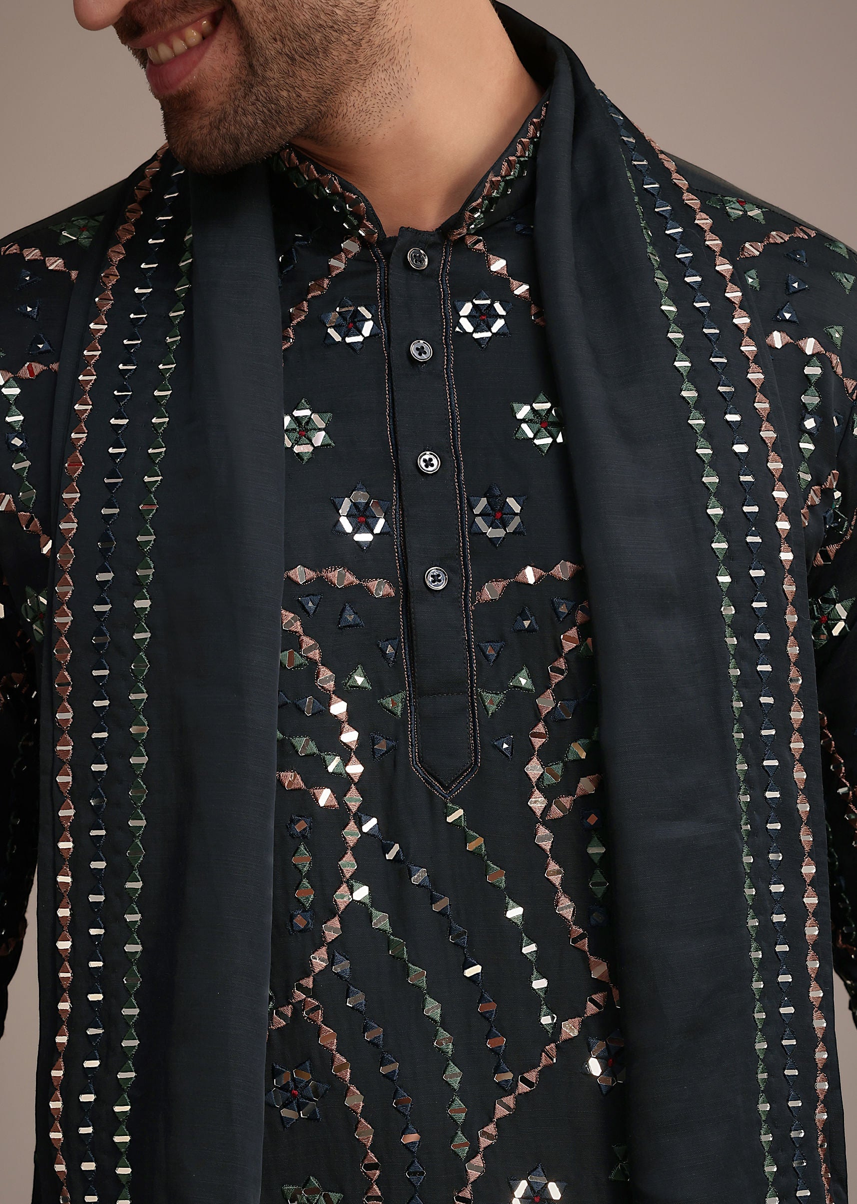 Crafted with finesse this navy blue kurta dupatta set is adorned with intricate mirror work that exudes timeless elegance. The rich hue adds a regal touch making it perfect for... More Product Details