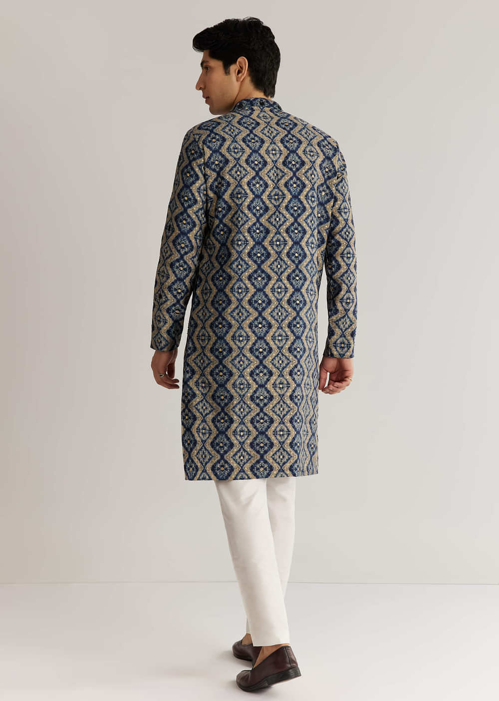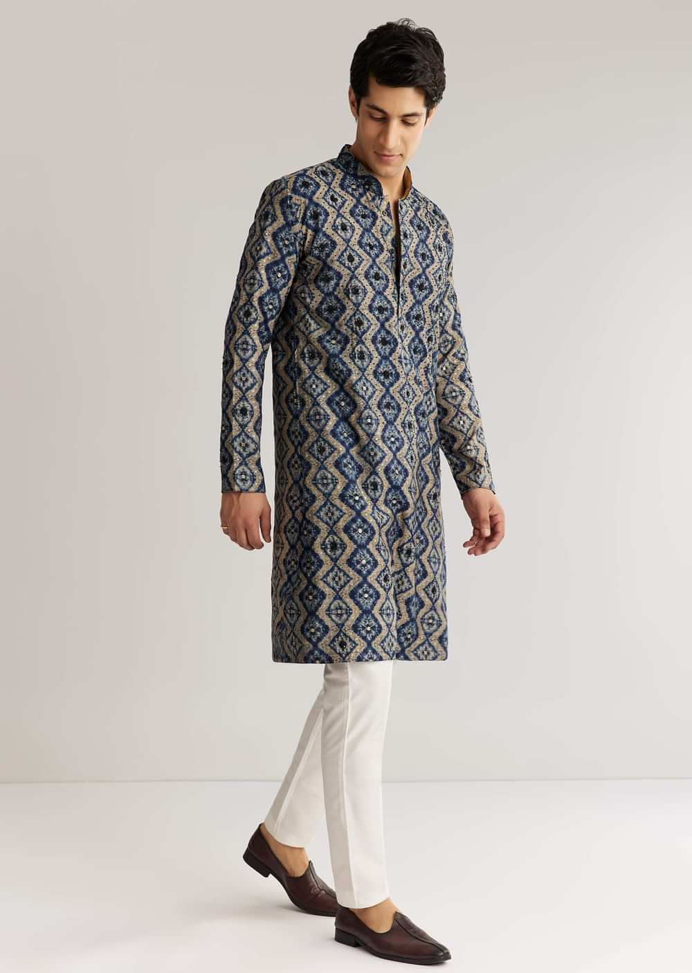 Navy Blue Modal Chanderi Sequin Embroidered Kurta Set