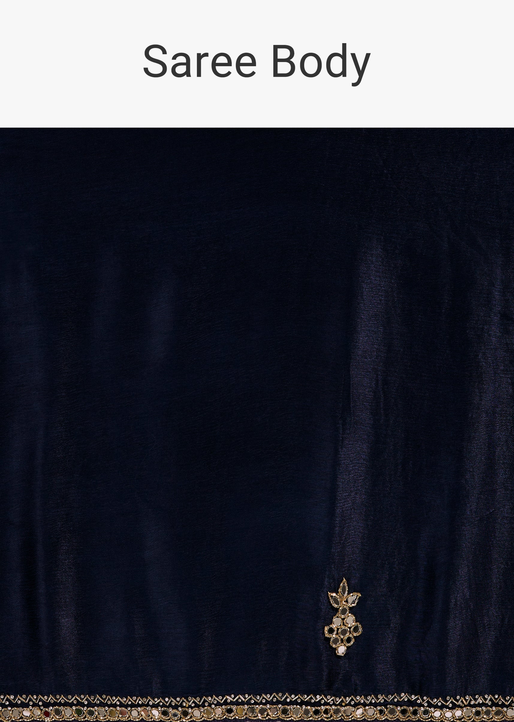 Navy Blue Satin Chinon Saree With Mirror And Bead Embroidered Border