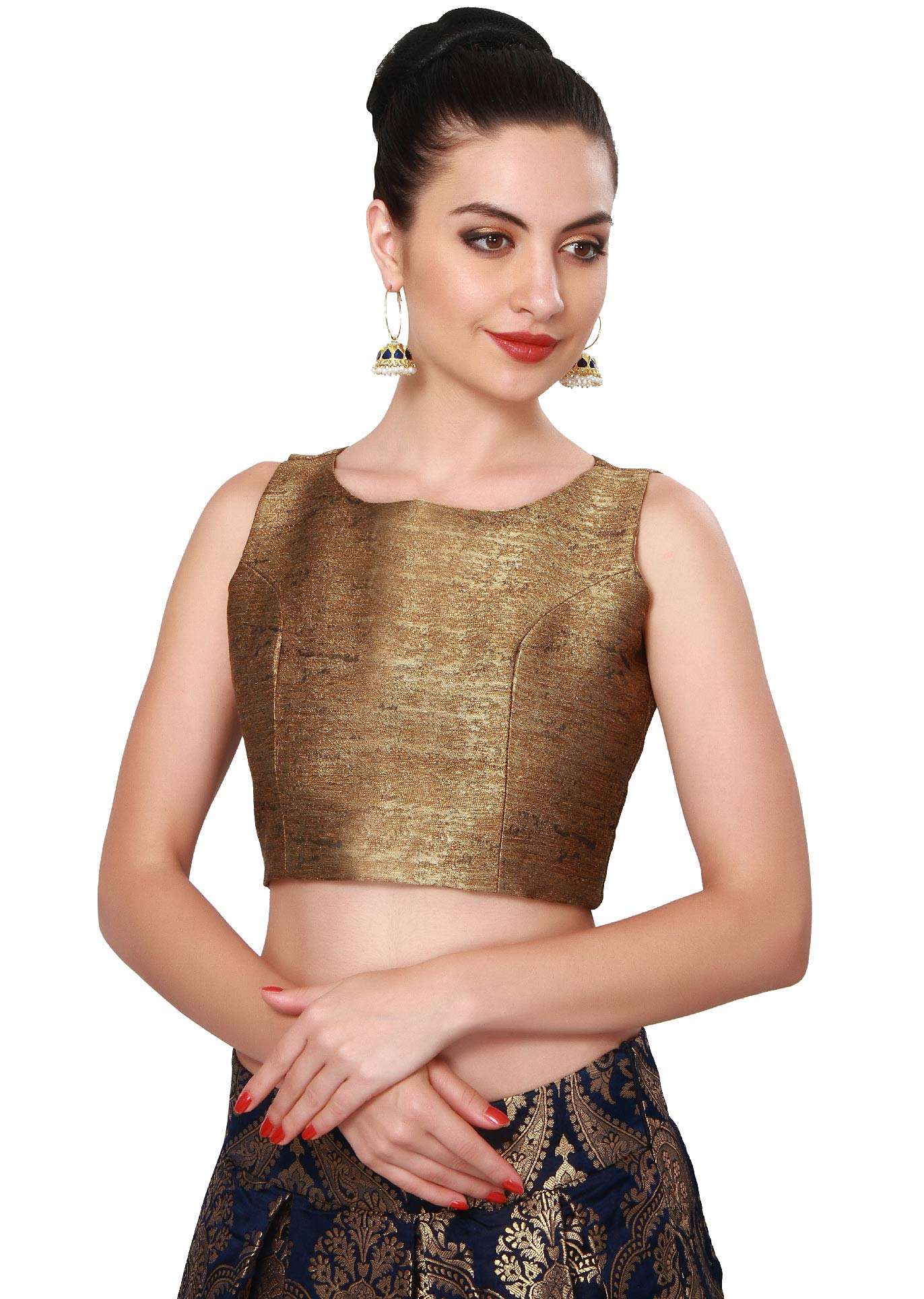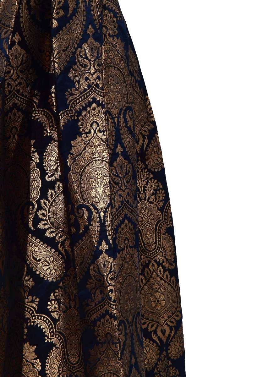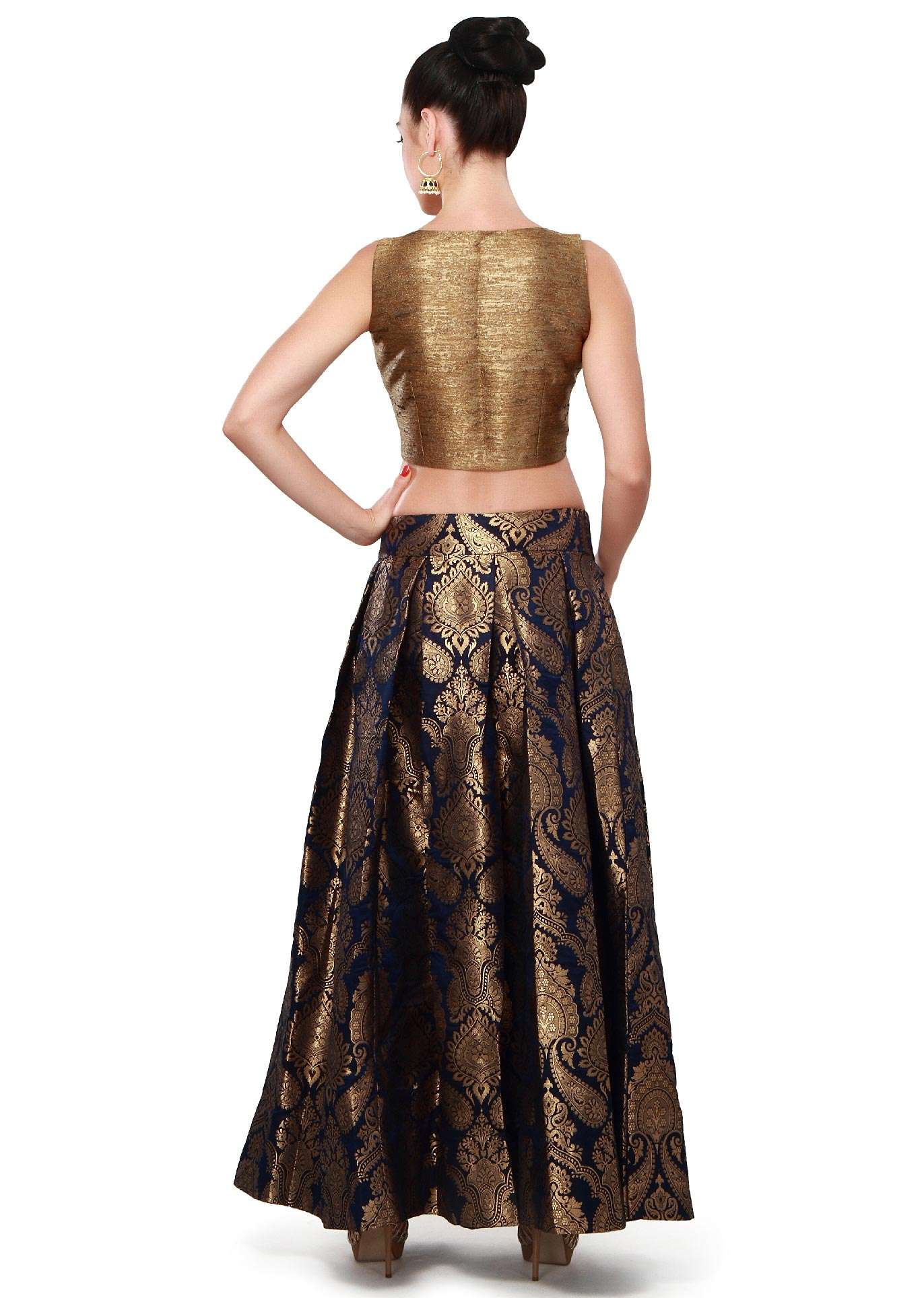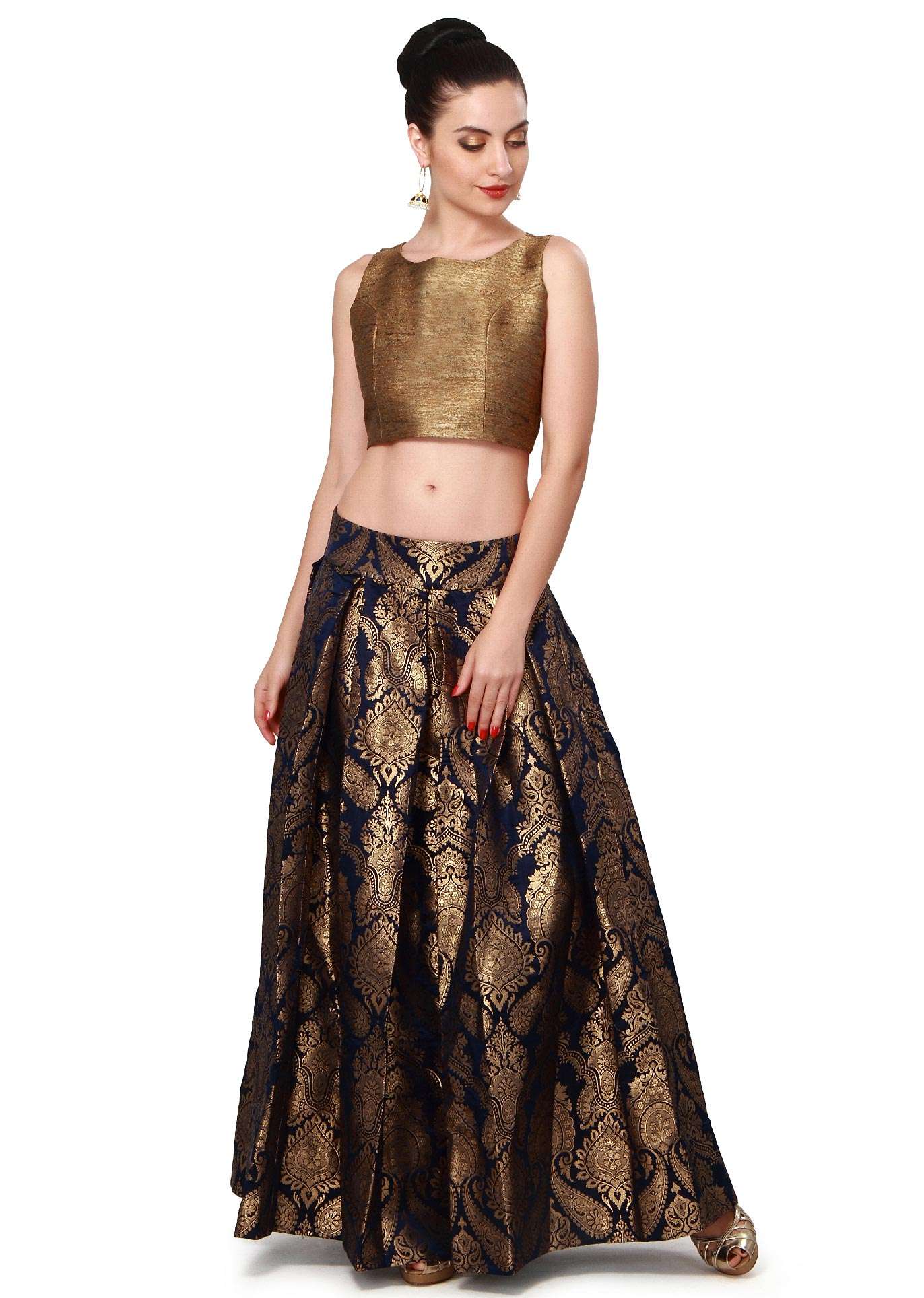 Navy blue skirt featuring in brocade. Matched with Gold lurex crop top blouse. Awarded As The Most Trusted Brand We'Re Delivering Styles You Love Just As Promised.