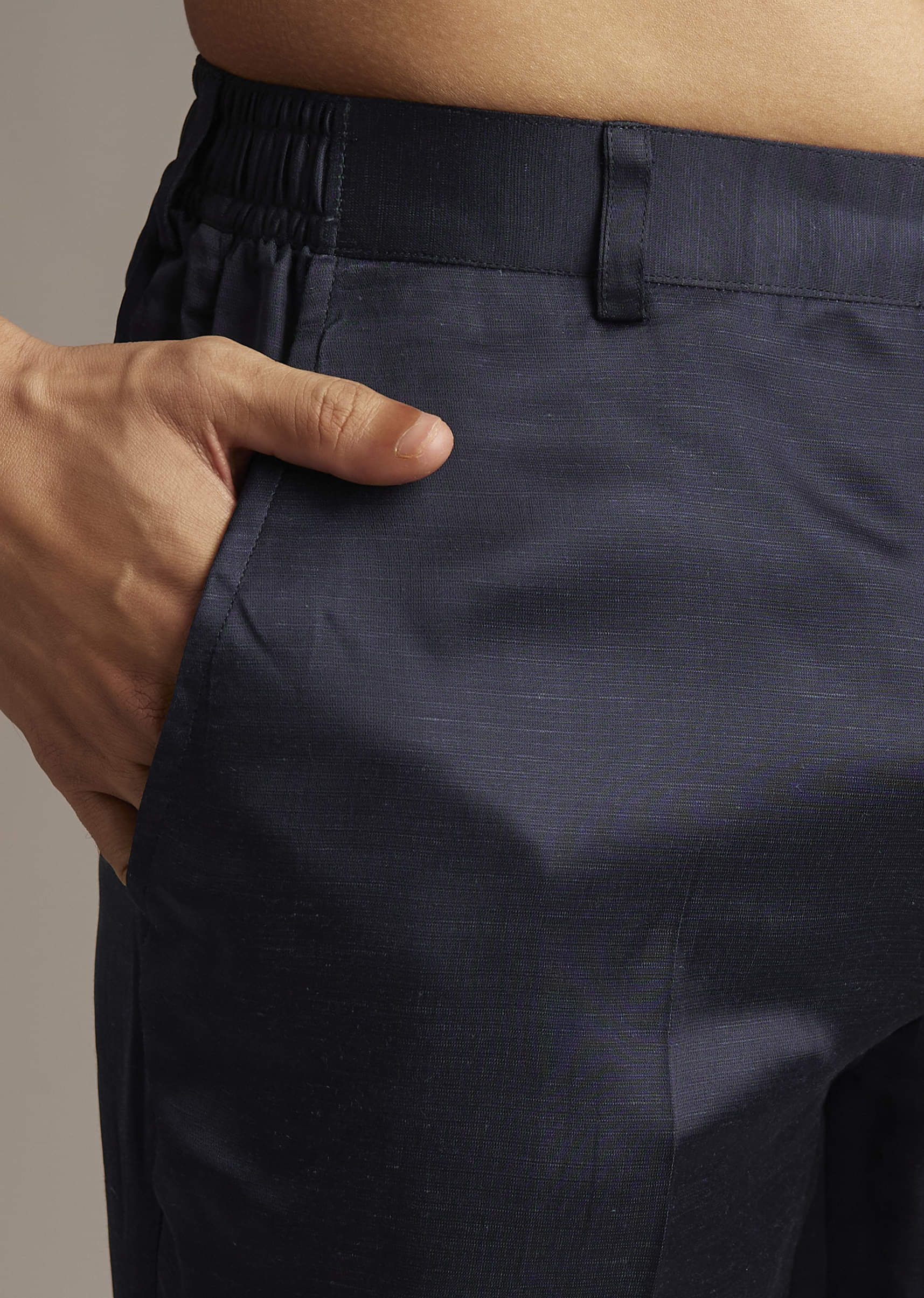 Navy Blue Velvet Indo Western Set For Men With Beads Work