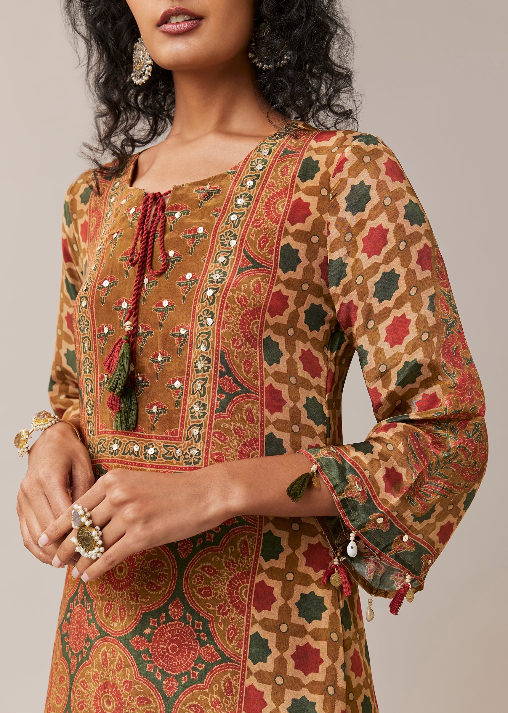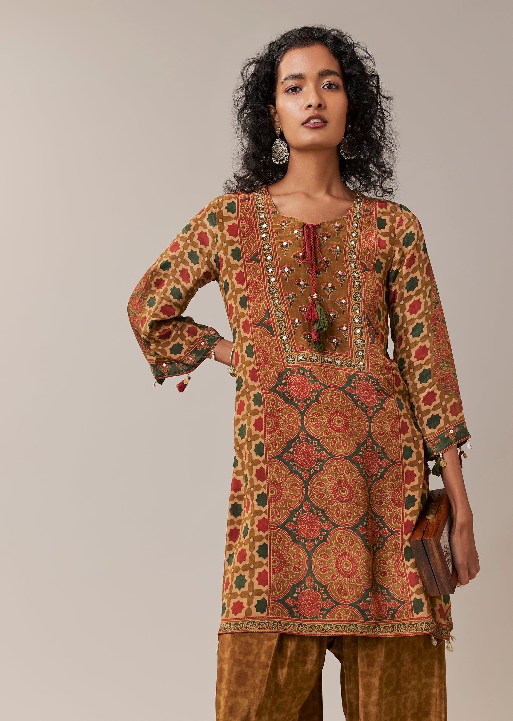 Playful prints meet subtle sparkle in this printed kurta set, designed for effortless festive dressing. Crafted in lightweight crepe, the kurta is accented with delicate sequin work that adds a soft shimmer to the vibrant print. The round neckline and 3/4th sleeves keep the silhouette easy and versatile, while the farzi pants bring a contemporary touch. Perfect for festive gatherings, daytime celebrations, and casual occasions with a hint of glam. Awarded as the Most Trusted Brand, we're delivering styles you love, just as promised.