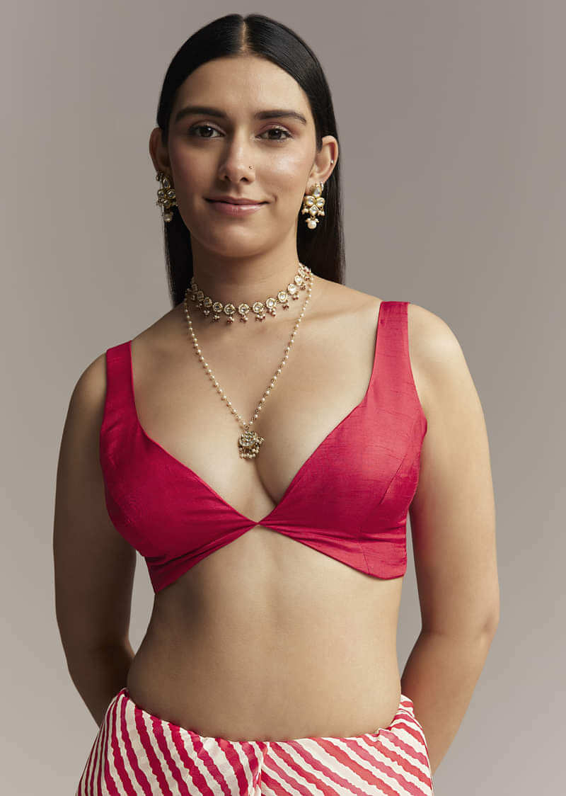 Fit Tips:Chinnon fabric has soft fall—use safety pins smartly to keep the pallu in place.