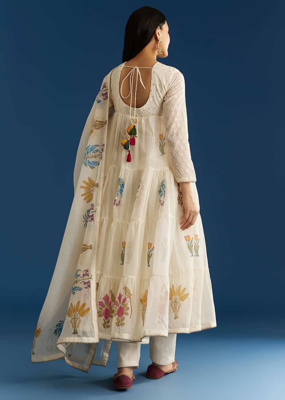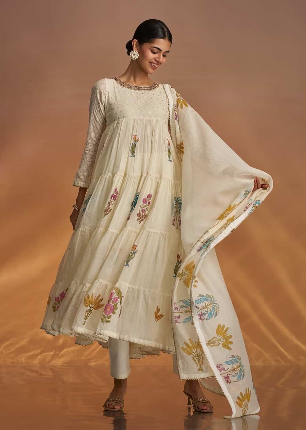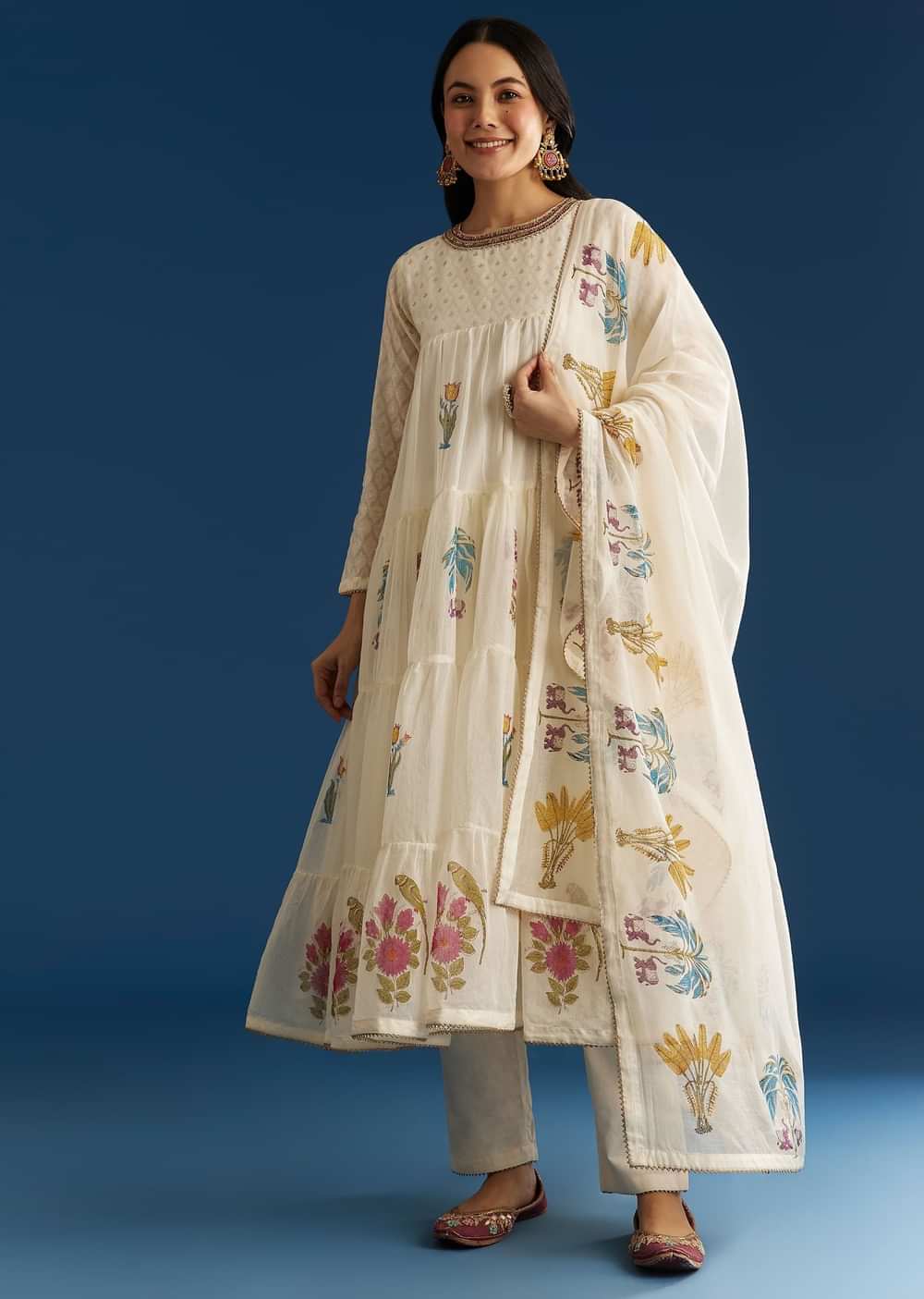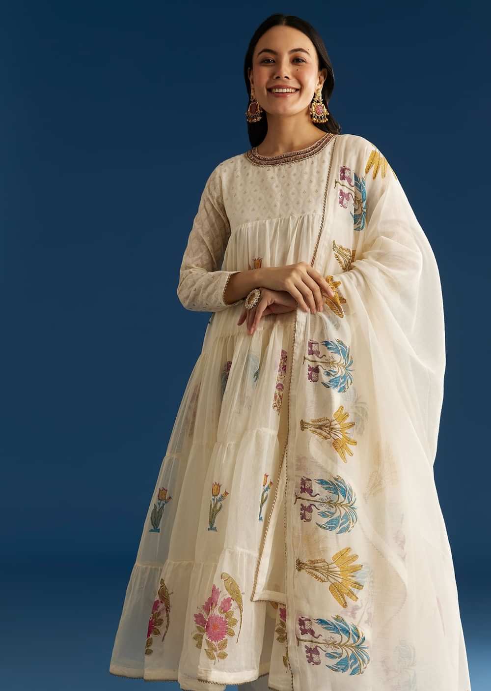 Off White Block Print Anarkali Set With Block Print Dupatta