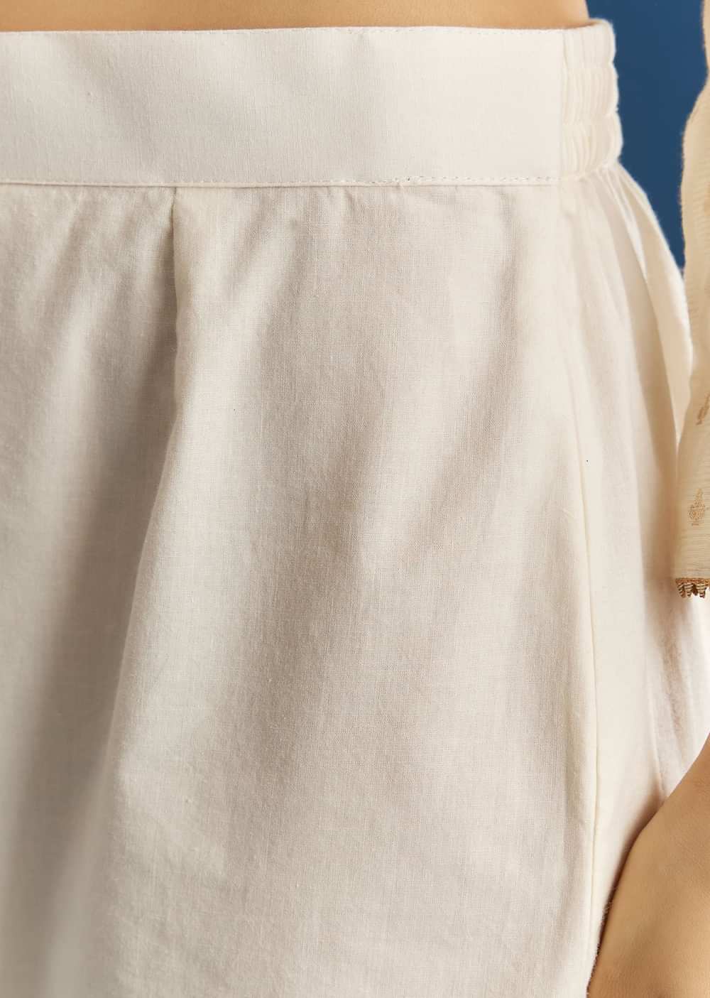 A graceful off-white anarkali in mull chanderi fabric with block prints all over. The neckline is adorned with detailed zardosi work and paired with a matching block print dupatta—ideal for... More Product Details