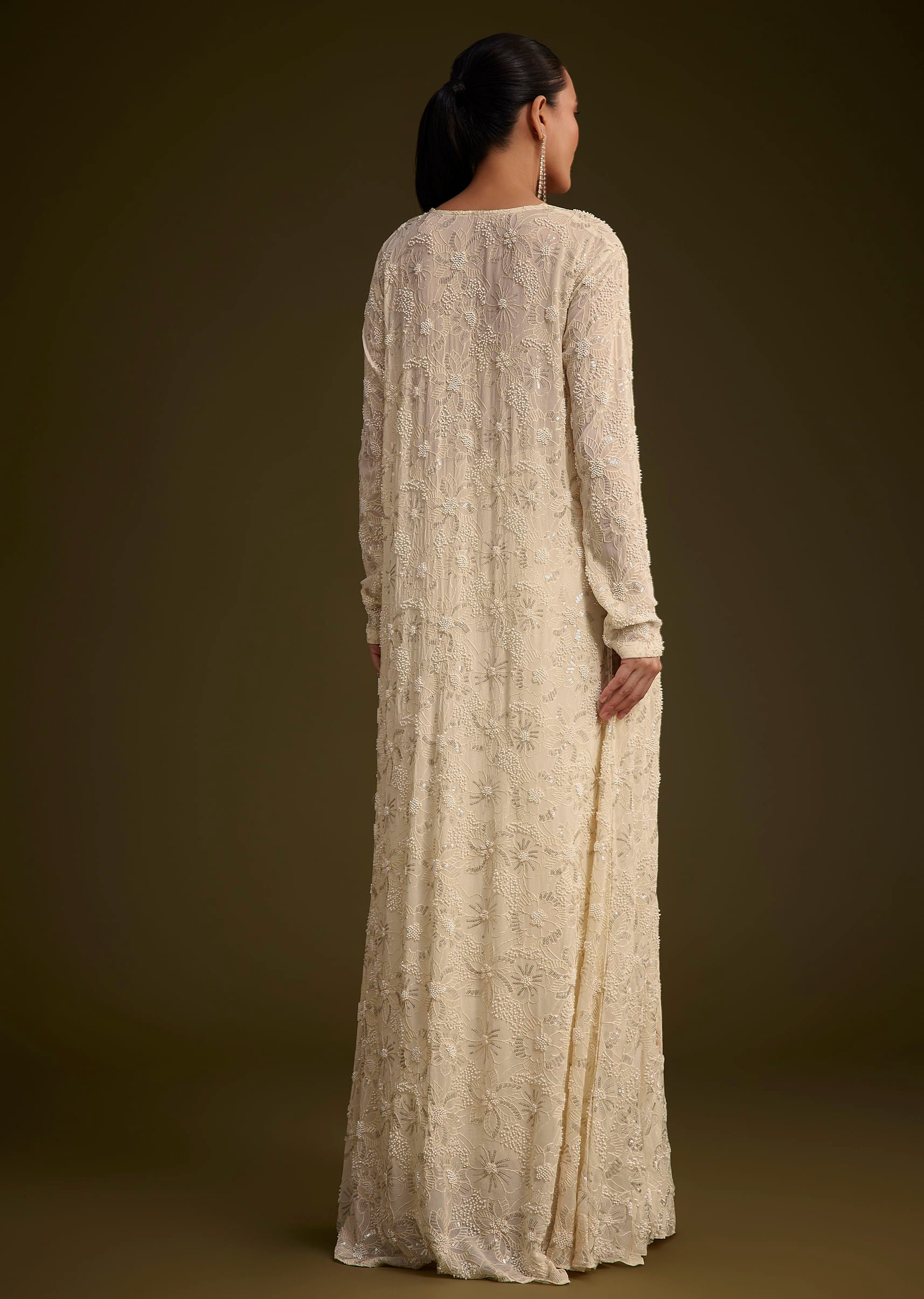 Elevate Your Style With This Offwhite Georgette Croptop Skirt And Jacket Set Featuring Exquisite Moti Sequins Resham Work Cut Dana Embellishments And Delicate Tassels. The Intricate Detailing And Elegant Design Make It An Ideal Choice For Engagement Parties Cocktail Evenings Or Festive Celebrations. The Lightweight Fabric Ensures Effortless Grace And Comfort Throughout The Day. Awarded as the Most Trusted Brand, we're delivering styles you love, just as promised.