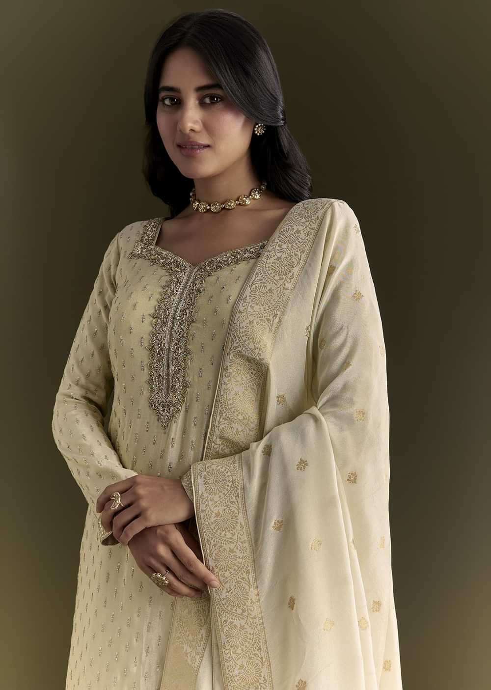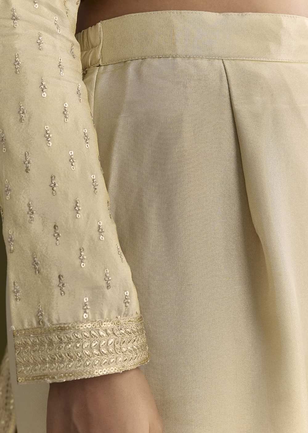 Off White Sequin Zardosi Kurta With Zari Badla Work Border Dupatta