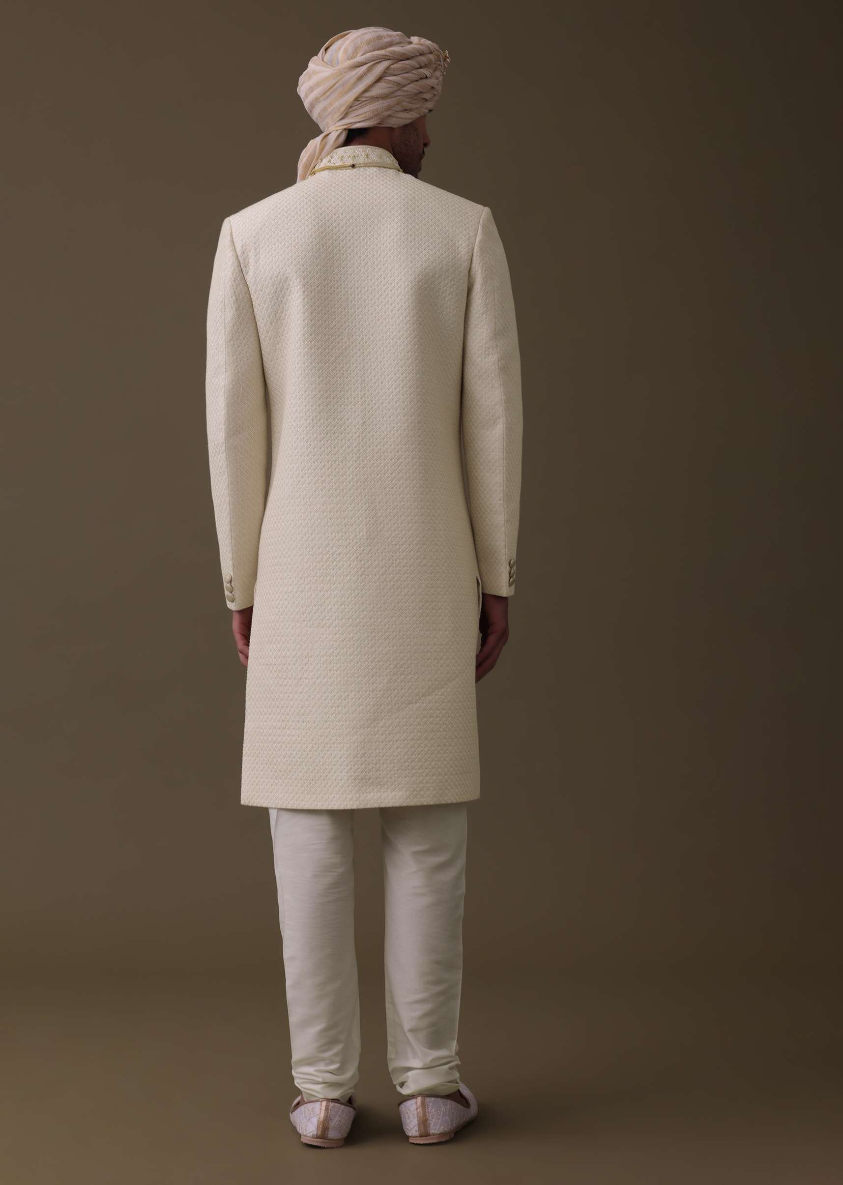 Fit Tips:The Sherwani comes with a front button closure. The Churidar comes with a front drawstring to fasten.