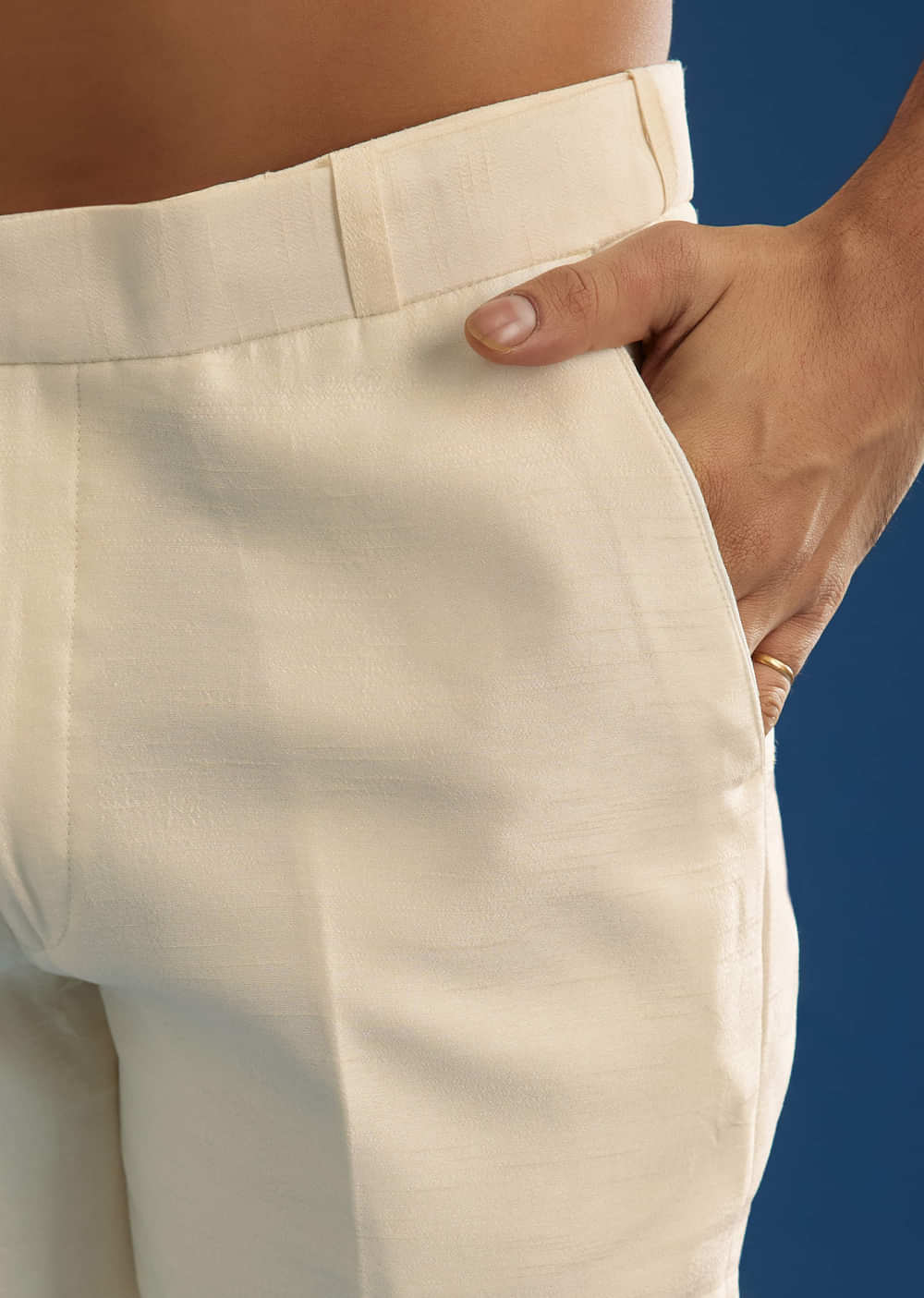 Off White Tussar Groomsman Sherwani Suit With Hand Embroidery