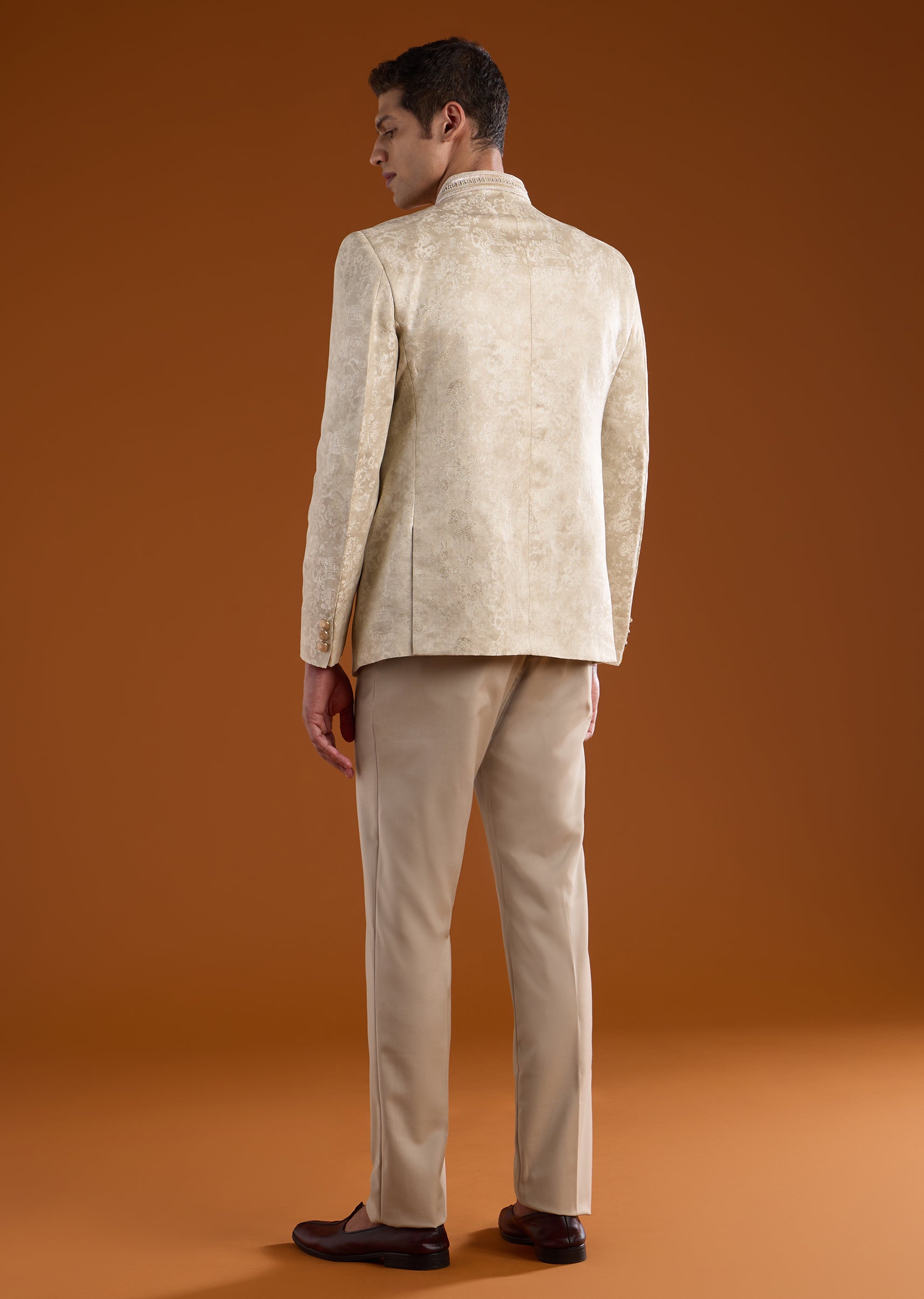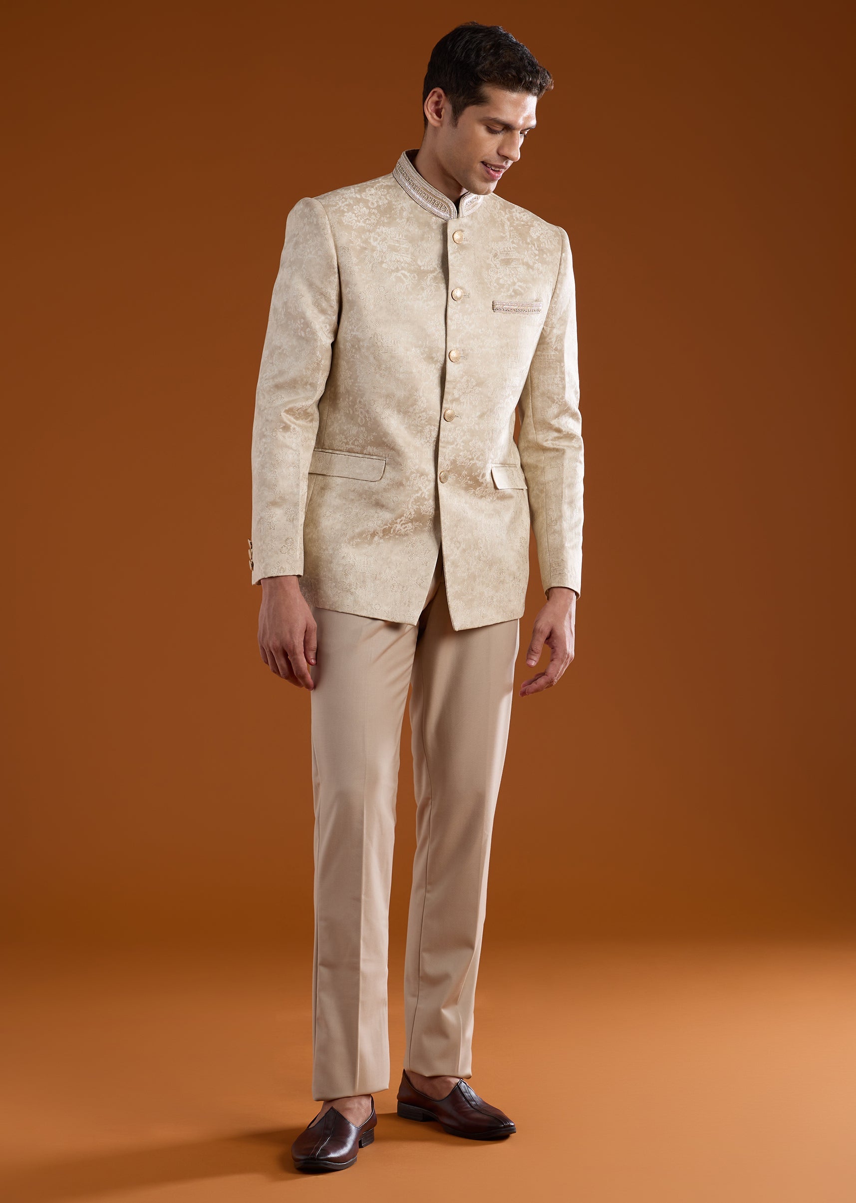 Pair with polished leather juttis or loafers and keep accessories minimal for a timeless jodhpuri look.