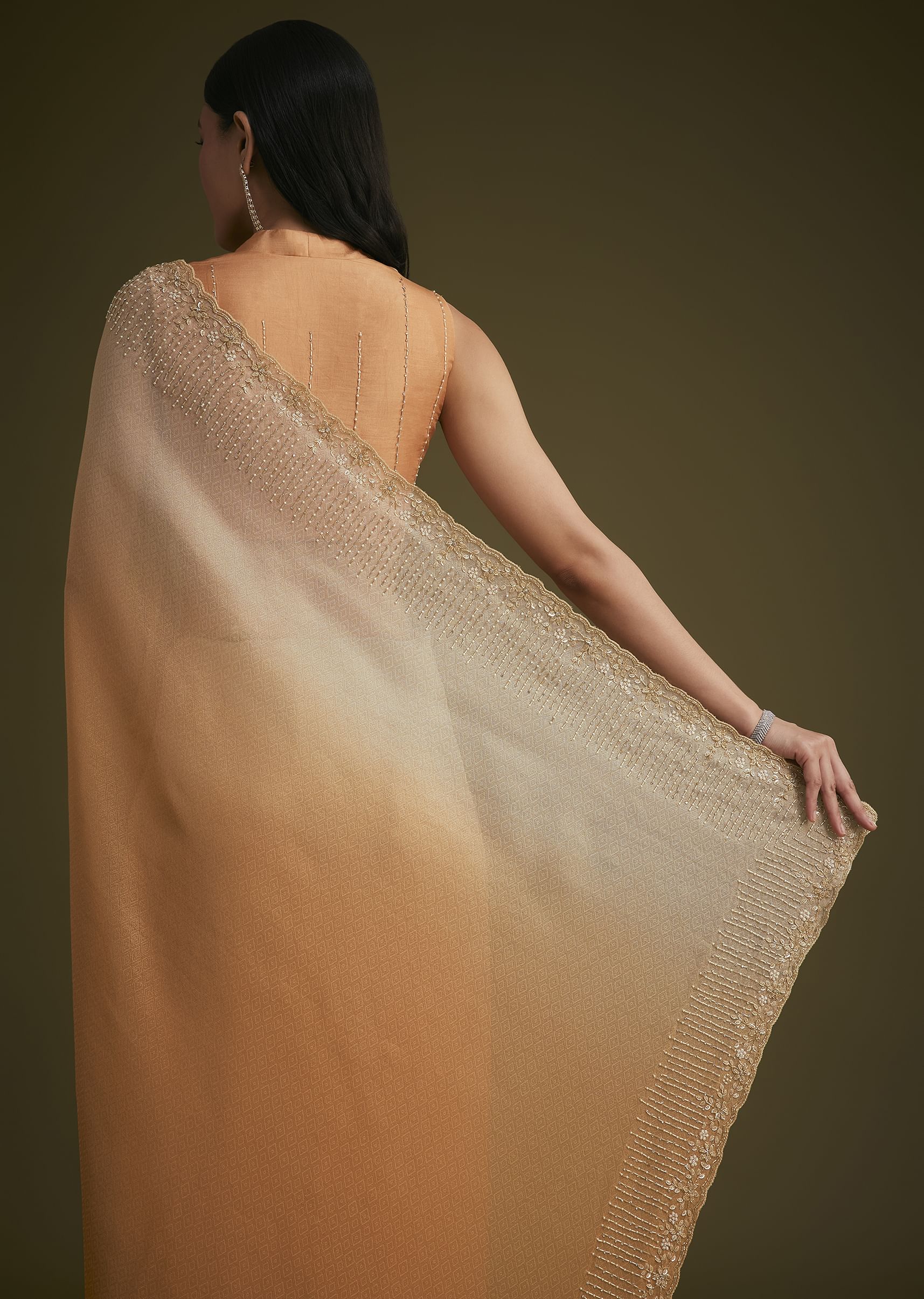 Ombre Orange Jacquard Saree With Cutdana And Stone Embroidery