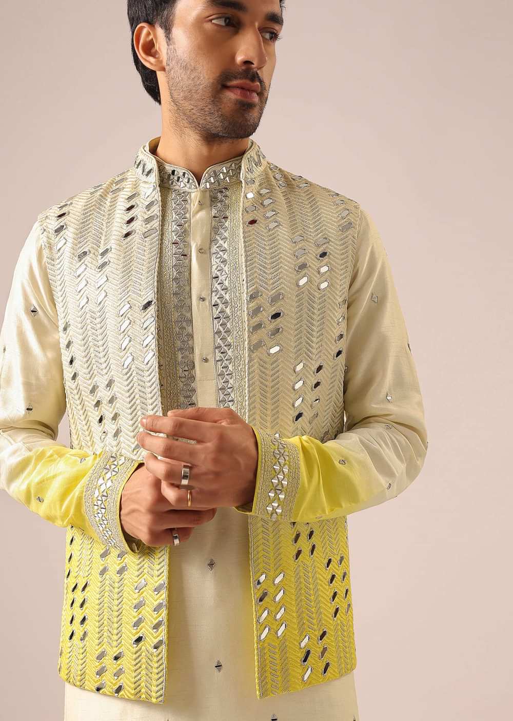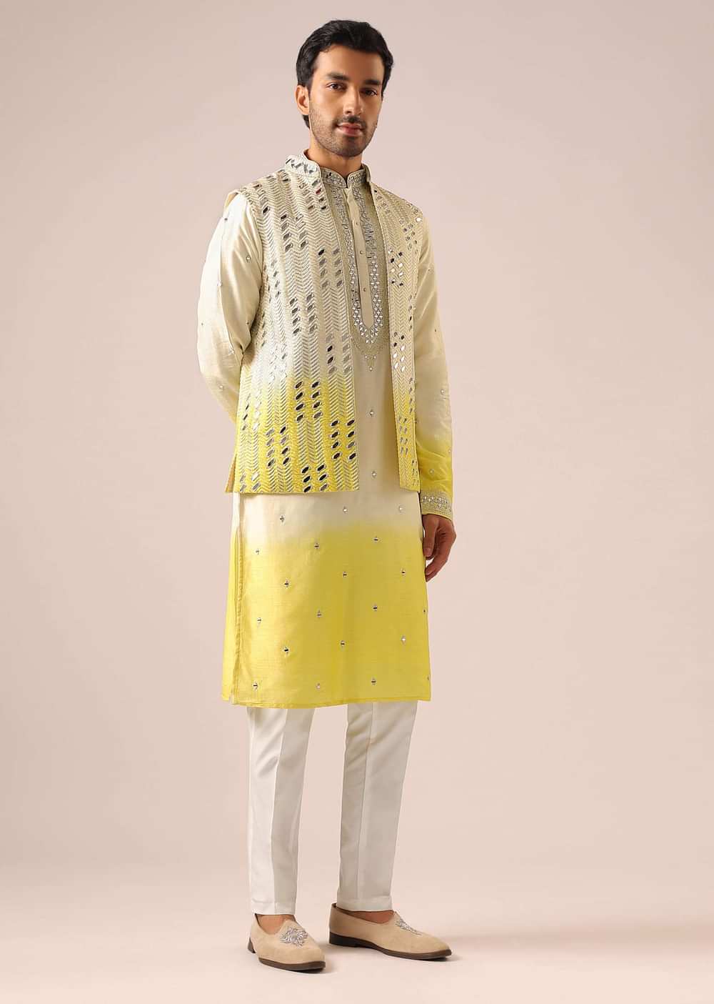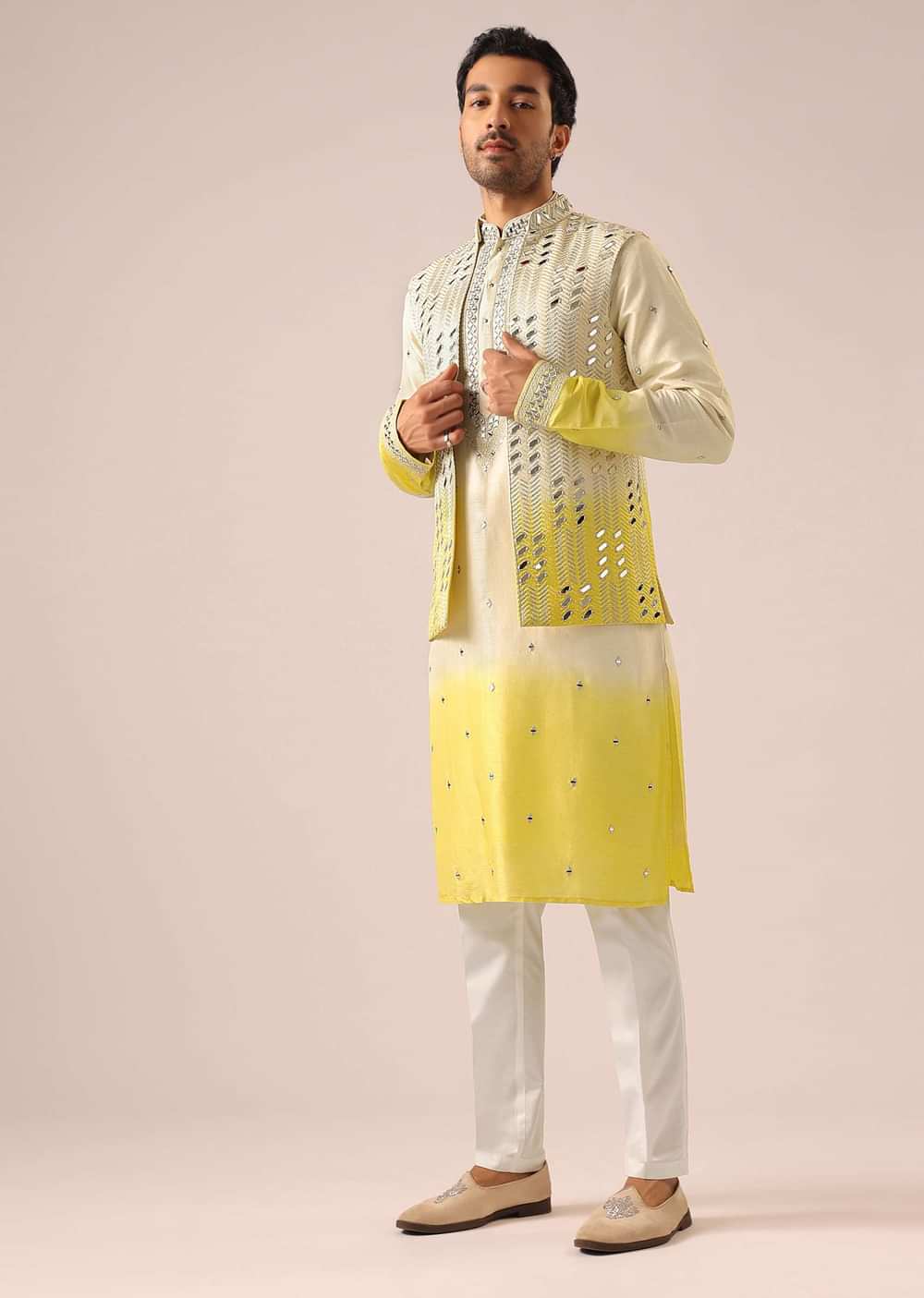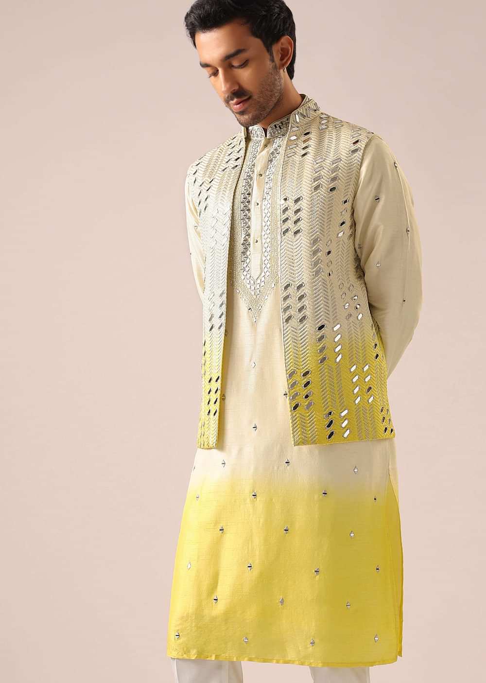 Ombre Yellow Jacket And Kurta Set with Mirror Work