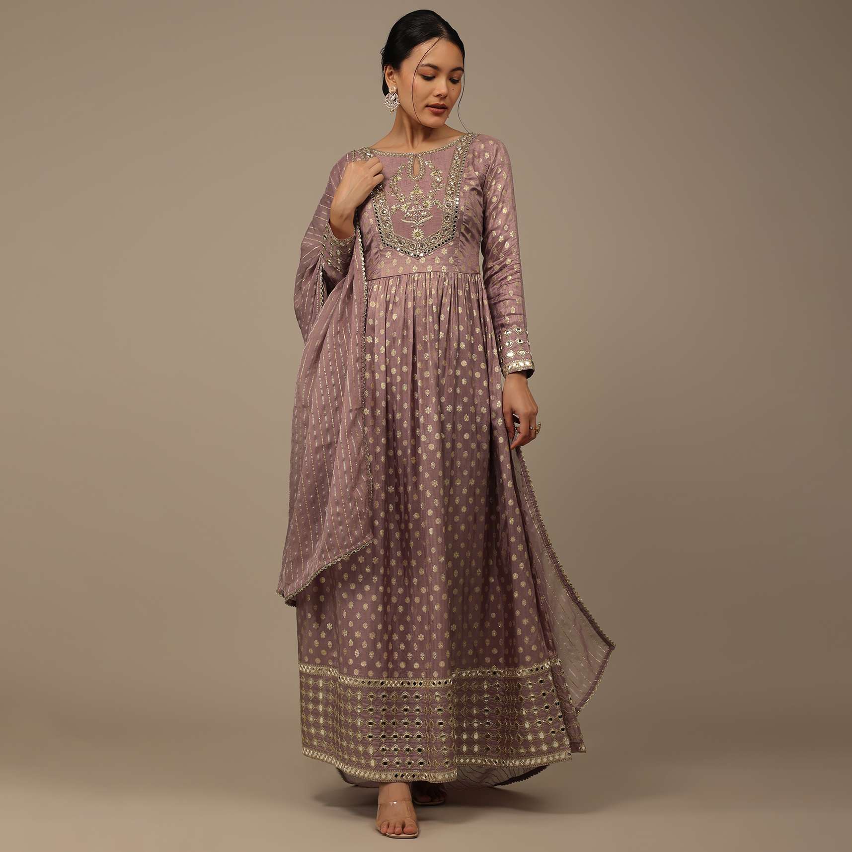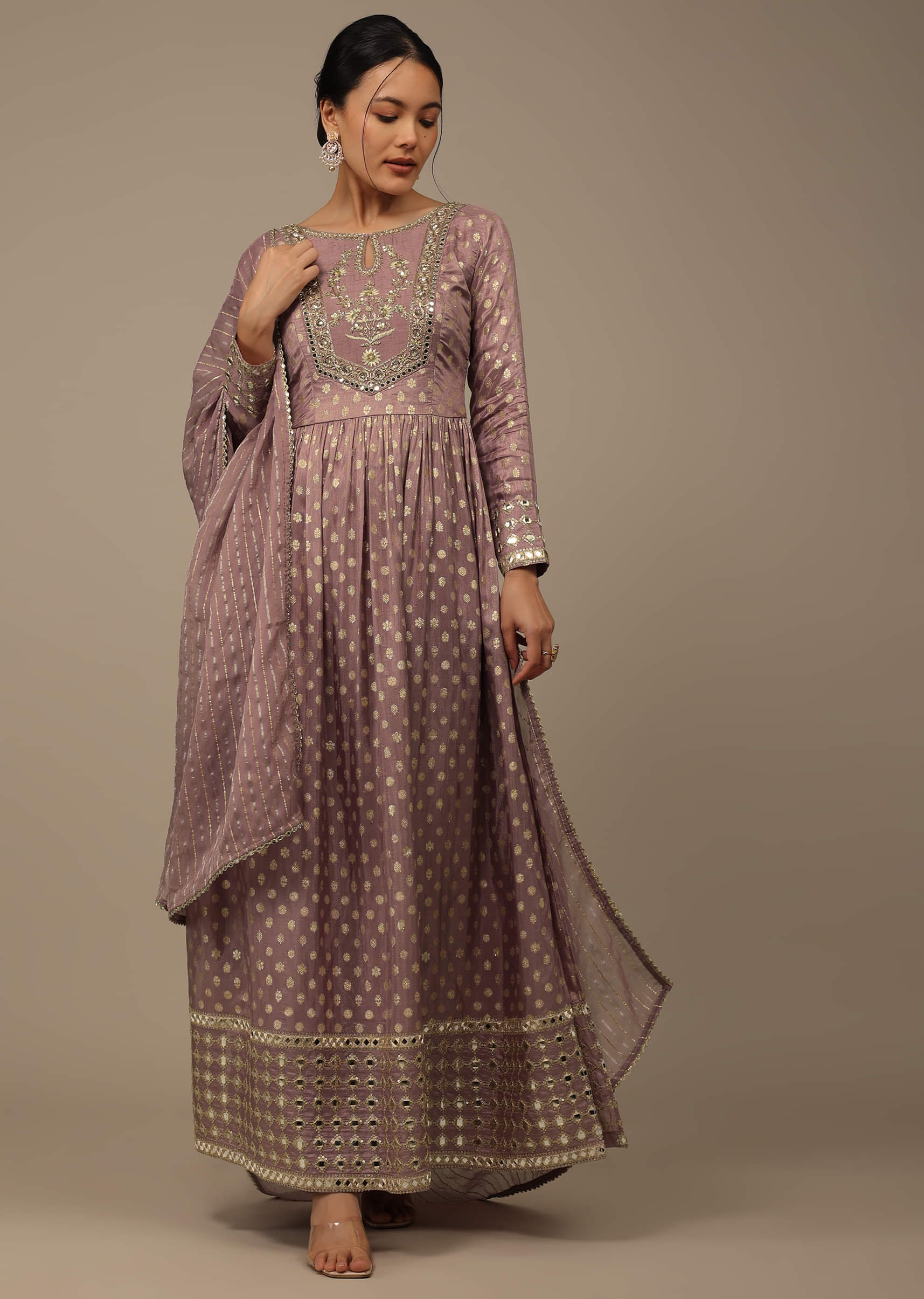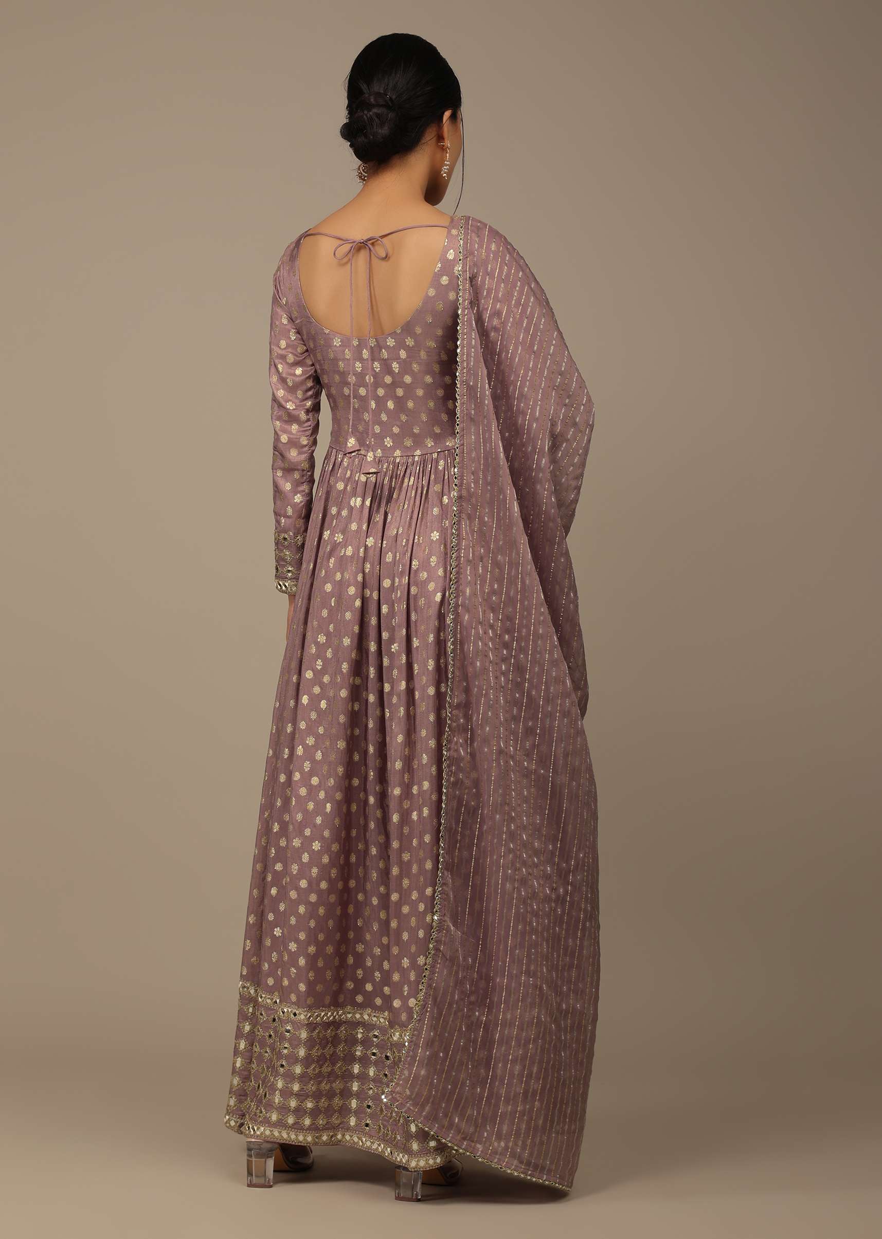 Onion Pink Embroidered Palazzo Suit Set In Banarasi Brocade Silk