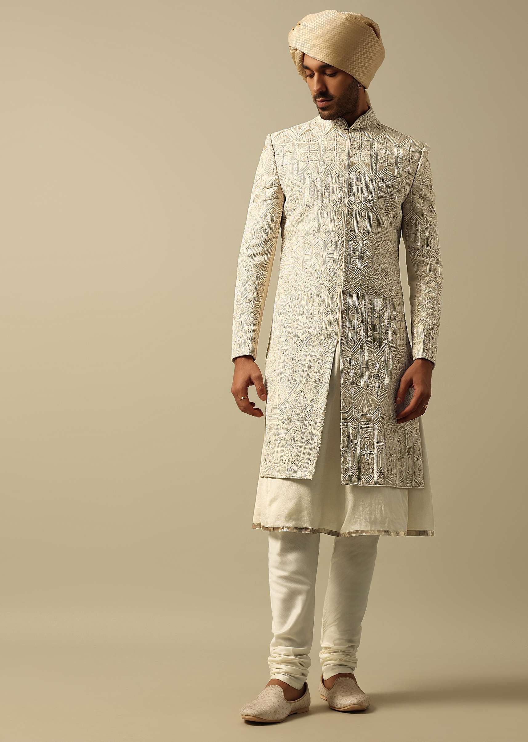 Style Tips: Coordinate this sherwani with opulent accessories such as a complementing turban or embroidered stole.