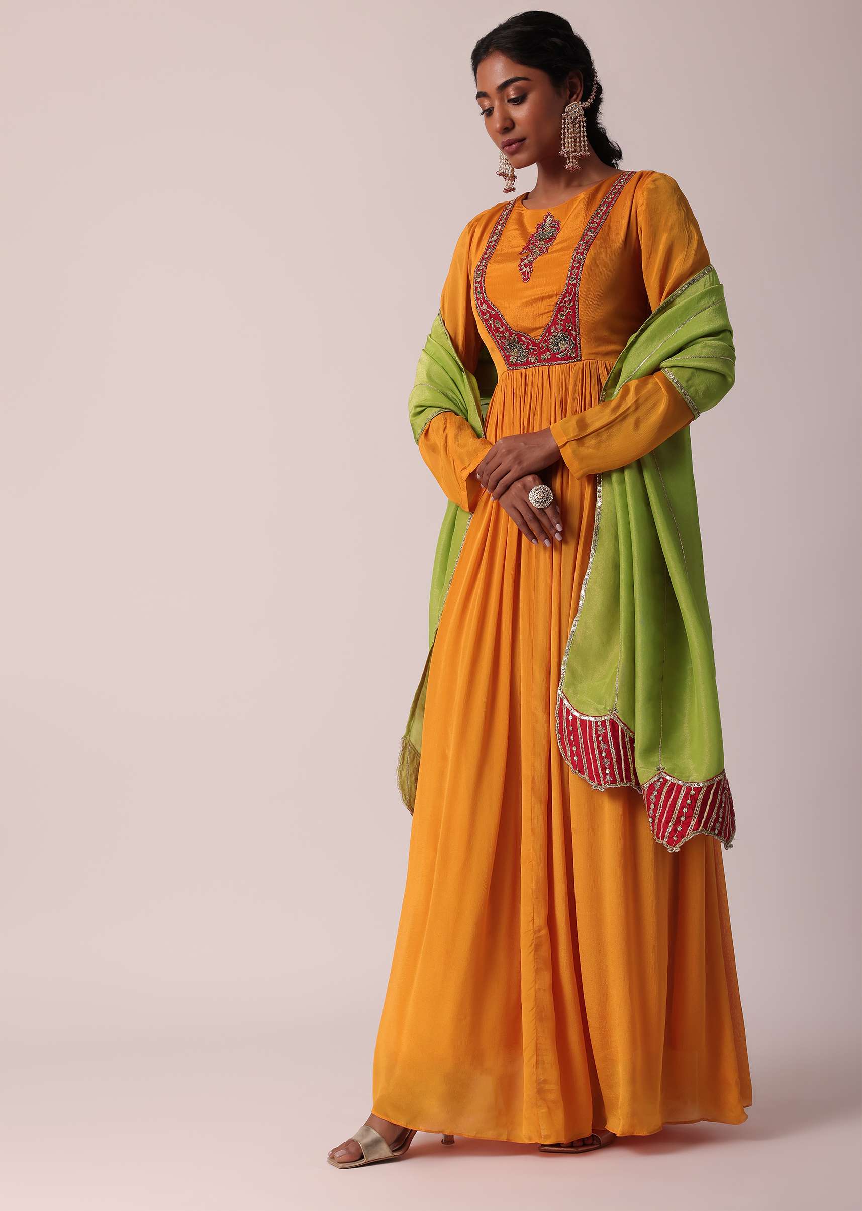 Orange Chiffon Anarkali With Dupatta