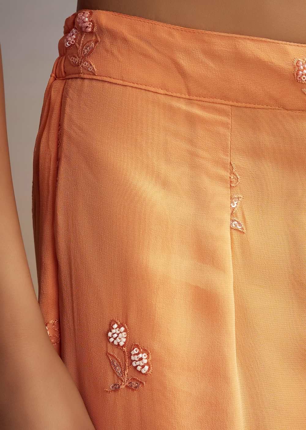 Orange Georgette Sharara Suit With Embroidered Kurta And Dupatta