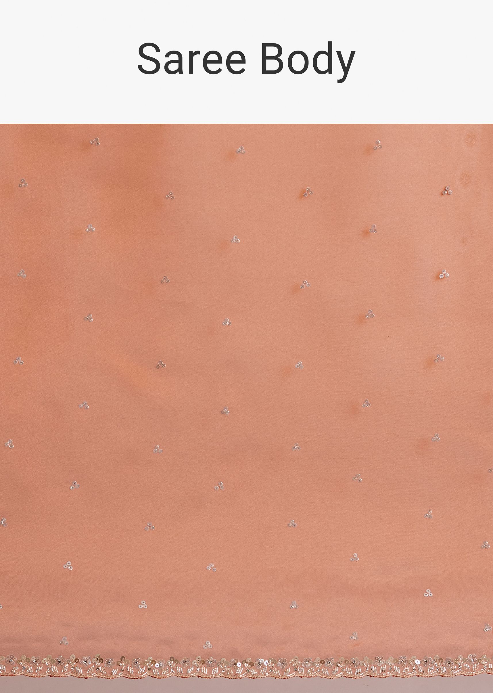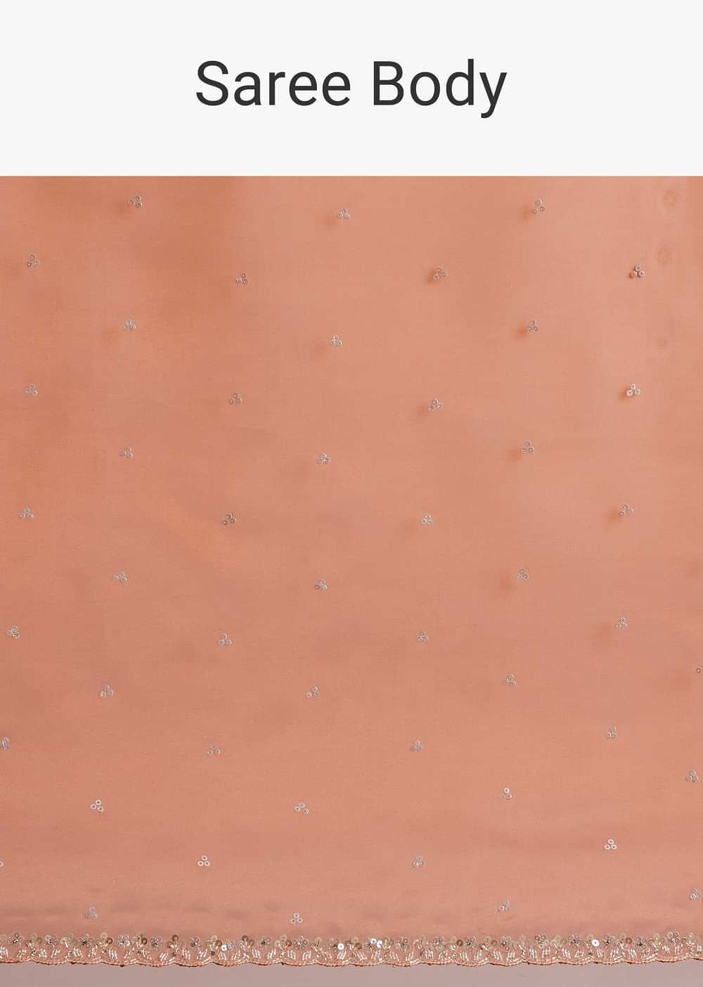 Orange Glass Tissue Saree With Cutdana And Sequins Scallop Border