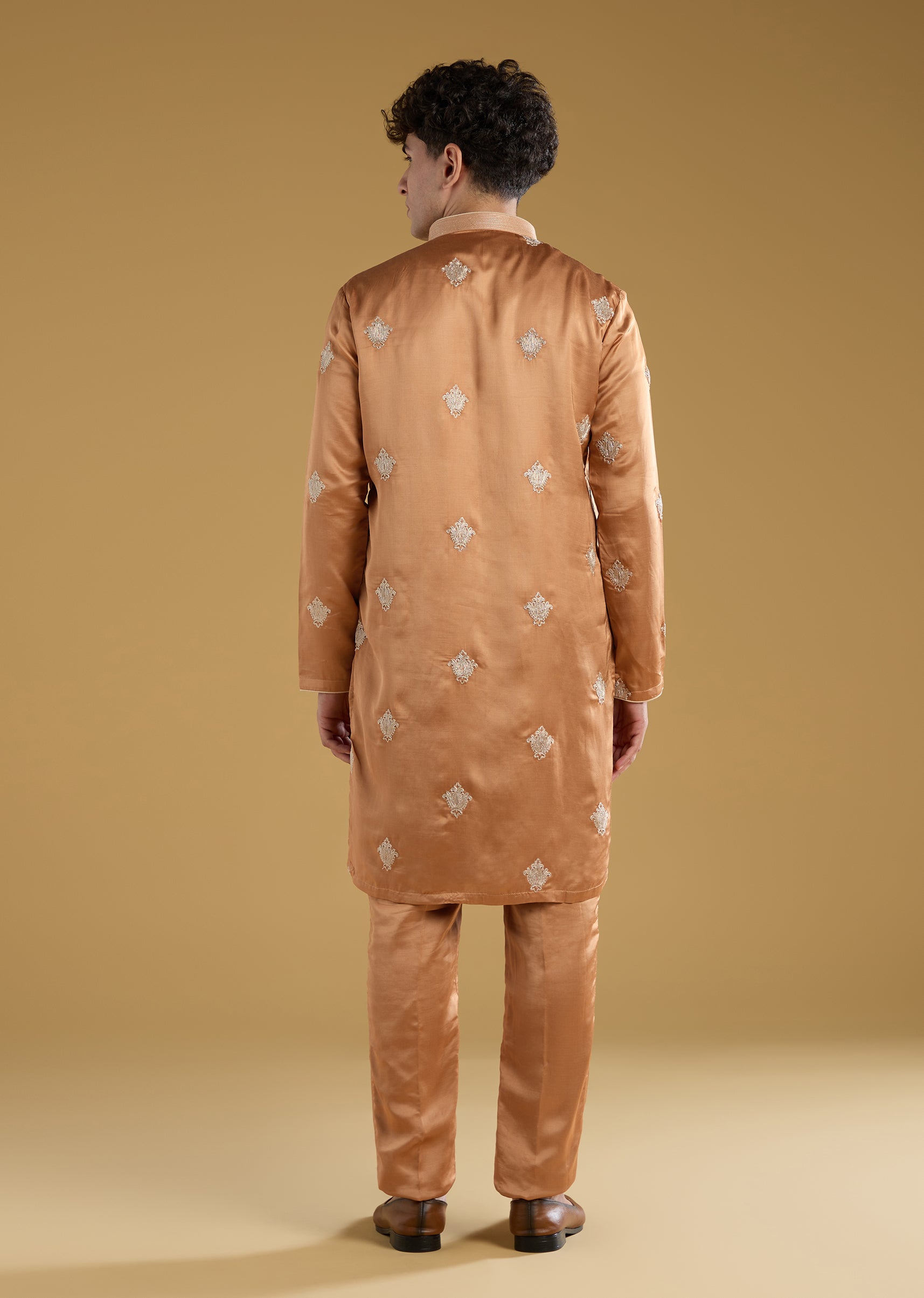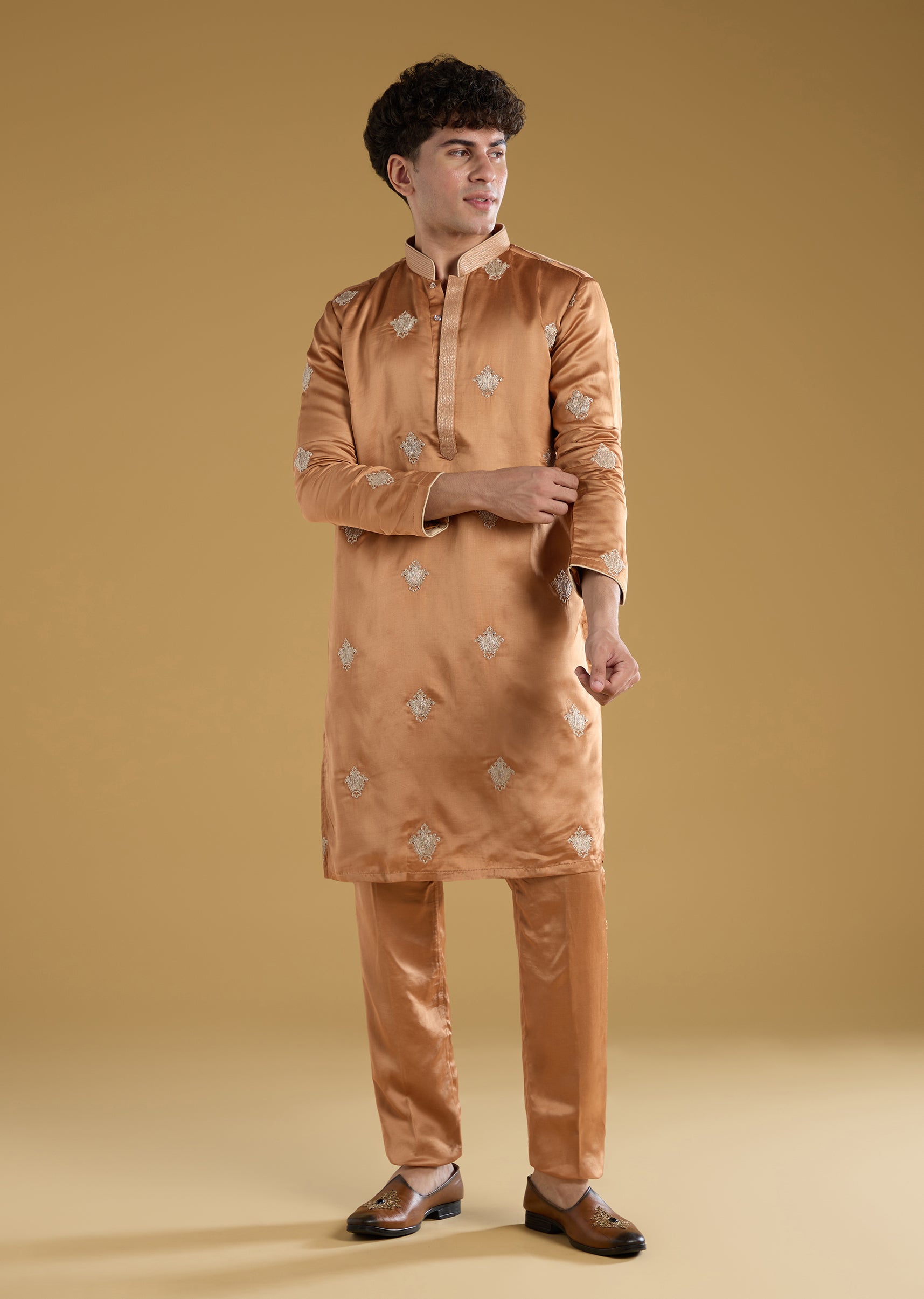 This orange mens kurta set is crafted in a comfortable linen blend featuring intricate thread motif detailing for a vibrant festive look. Perfect for haldi mehendi or as a guest at a wedding the full sleeves and mandarin collar provide a classic finish while the bright hue adds celebratory charm. Ideal for groomsmen or festive occasions this kurta set blends traditional elegance with contemporary style. Awarded as the Most Trusted Brand, we're delivering styles you love, just as promised.