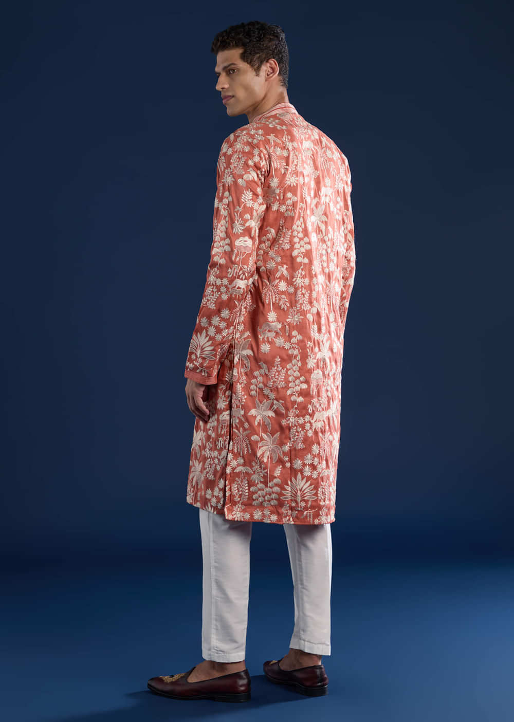 Make a vibrant statement with this orange silk men’s kurta and pant set, featuring intricate mirror embellishments that add festive sparkle and traditional elegance. The luxurious silk fabric offers a... More Product Details