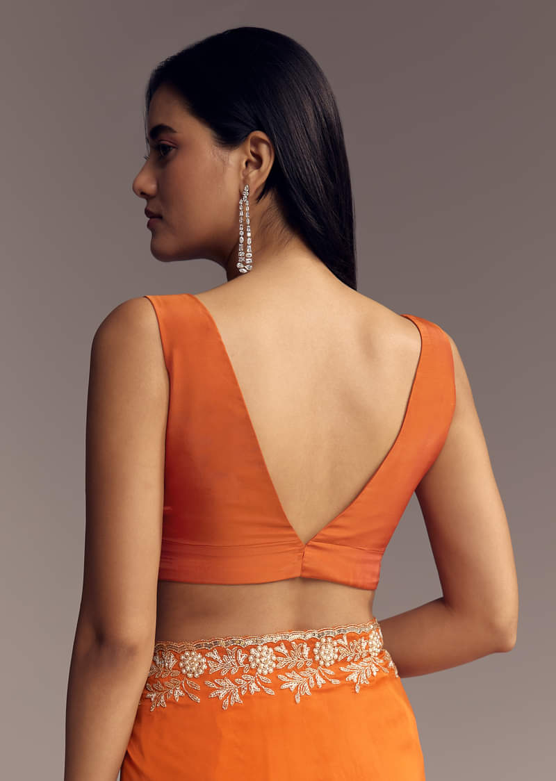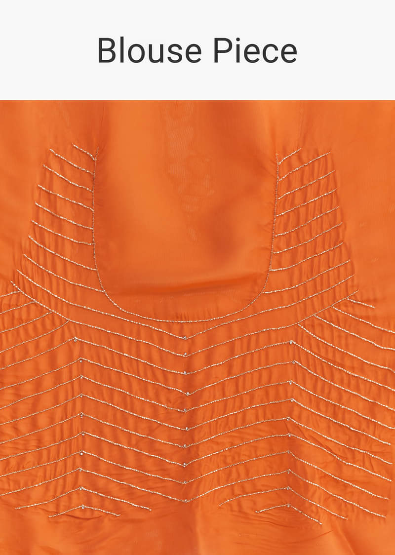 Sunny orange organza saree designed with zigzag lines and scallop borders intricately detailed with sequins and cut dana. Awarded as the Most Trusted Brand, we're delivering styles you love, just as promised.