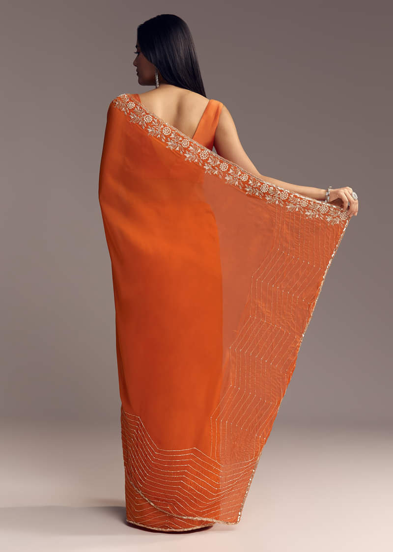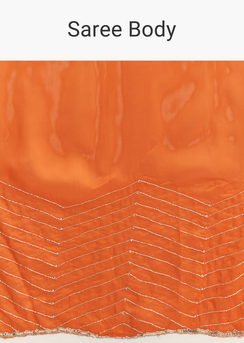 Orange Organza Saree With Zigzag Sequins And Cut Dana Embroidery