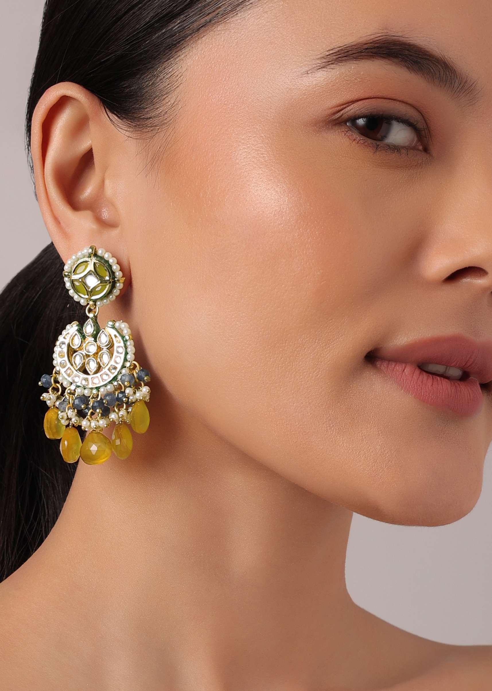 Complete your wedding look beautiful with statement choker set. Adorned with orange bead drops it flaunts stunning exquisite motifs. The pendant drops and multi string beads add to it stylish design. Embedded with kundan and polki stone this set is completed with crescent moon motif danglers. Keep away from moisture perfume alcohol and harsh chemicals.Spot clean only.Keep away from sharp objects. Awarded as the Most Trusted Brand, we're delivering styles you love, just as promised.