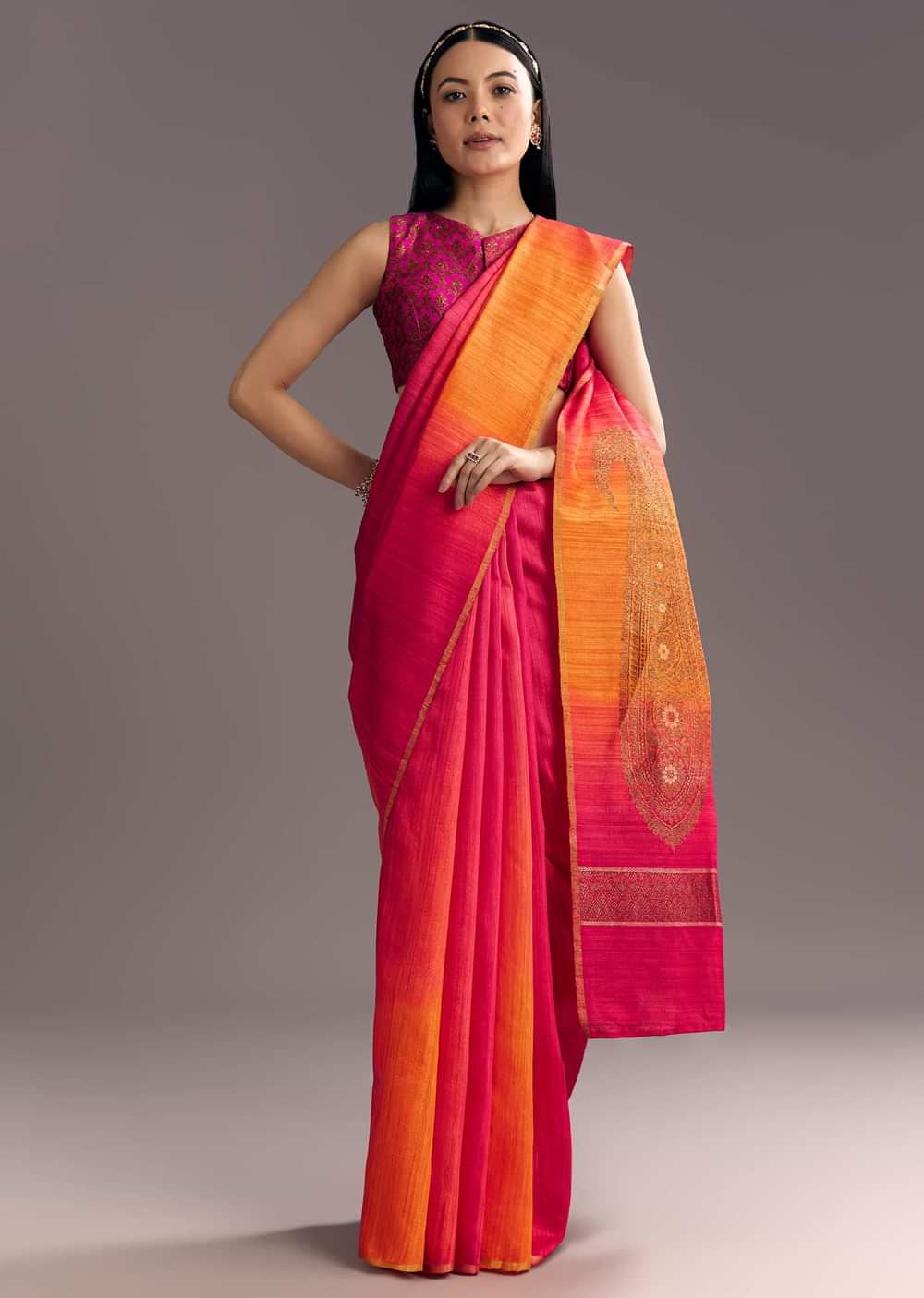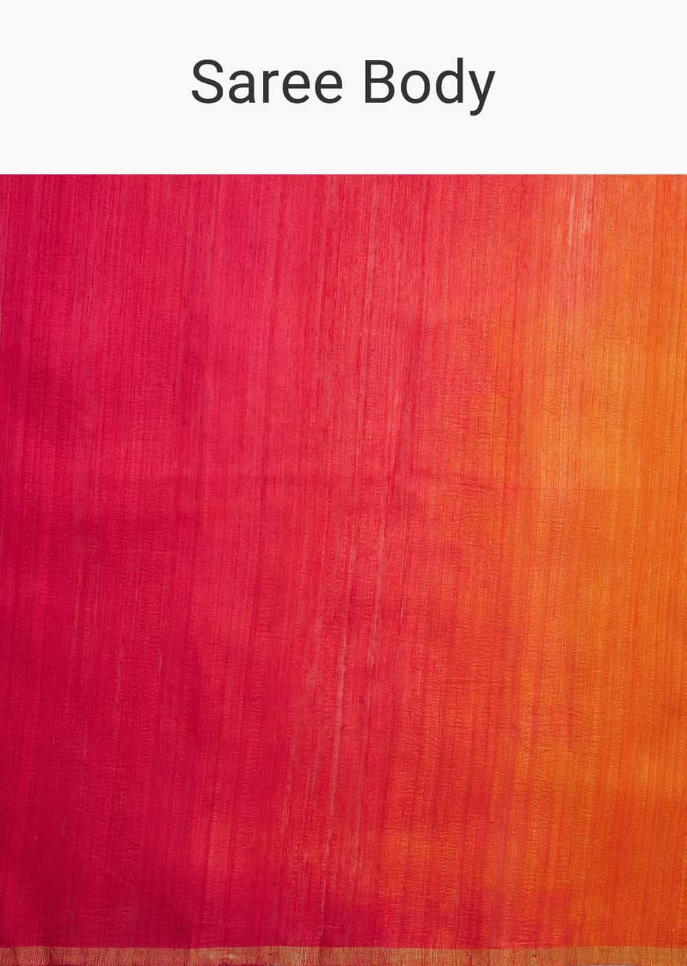 Orange Red Shaded Kora Silk Handloom Saree With Woven Motif