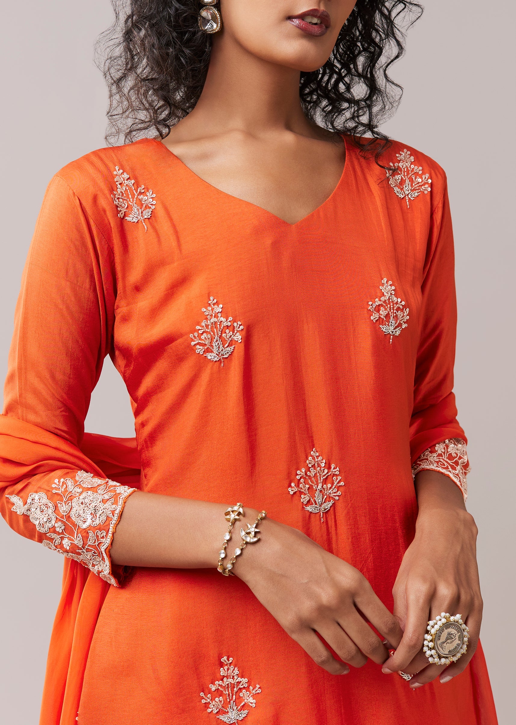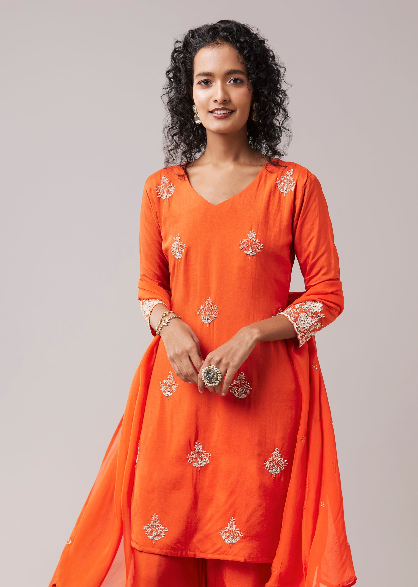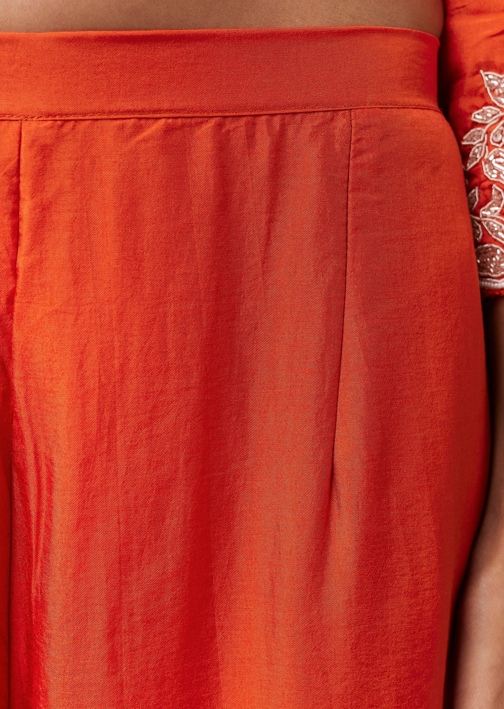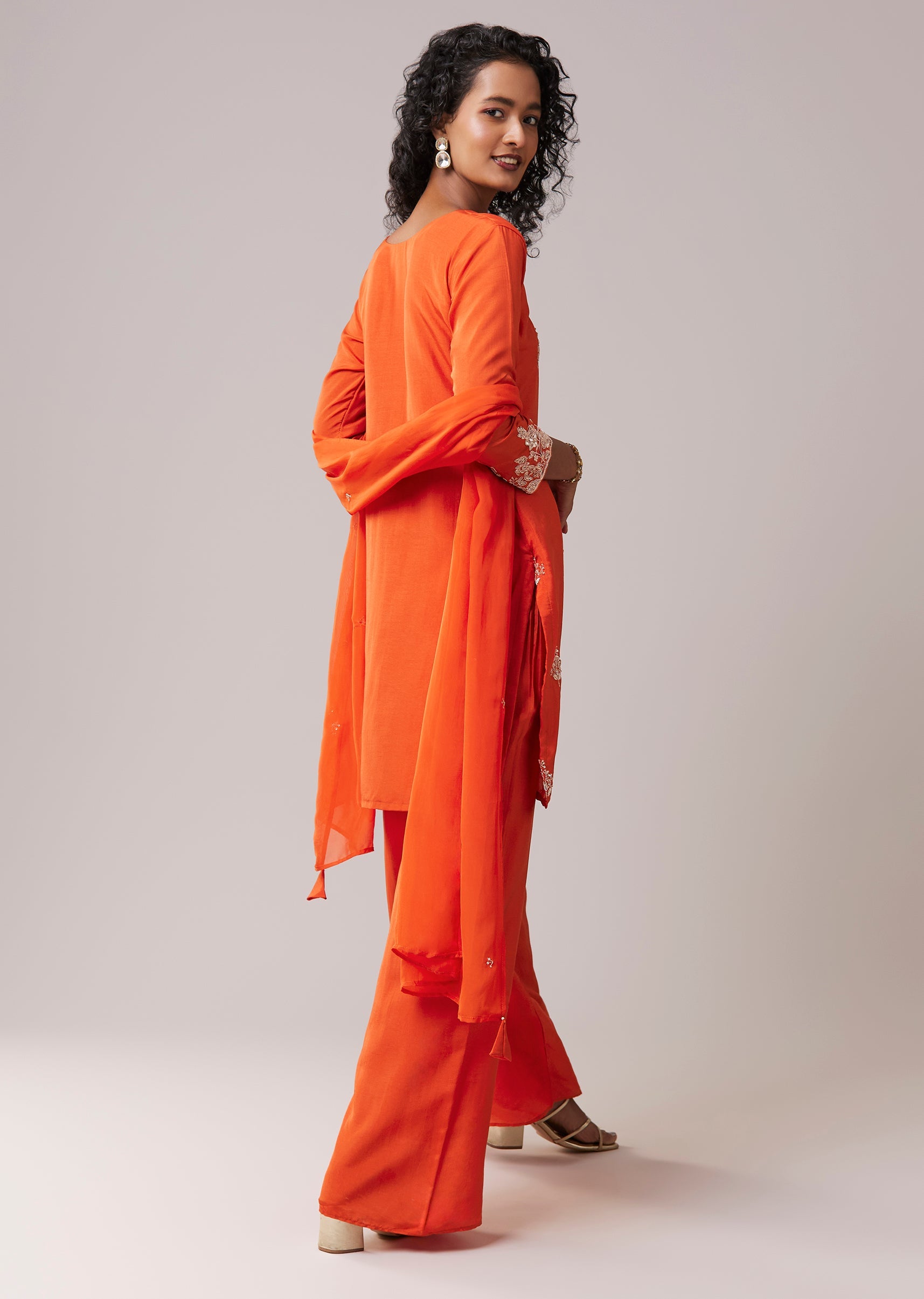 Orange Silk Kurta Palazzo Set with Cutdana Work