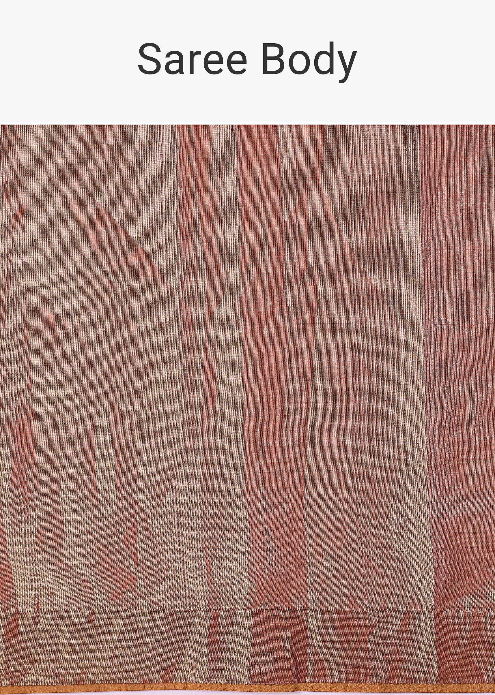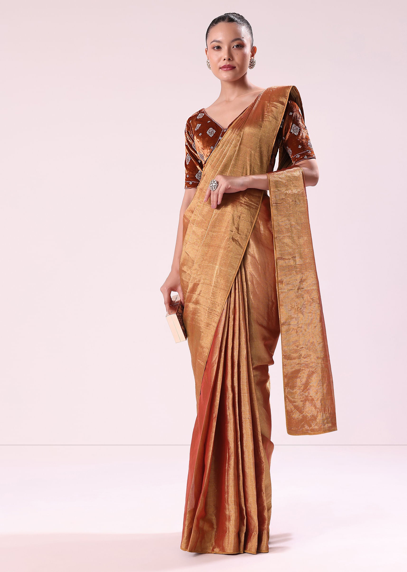 Orange Tissue Saree With Embroidered Rust Orange Stitched Blouse