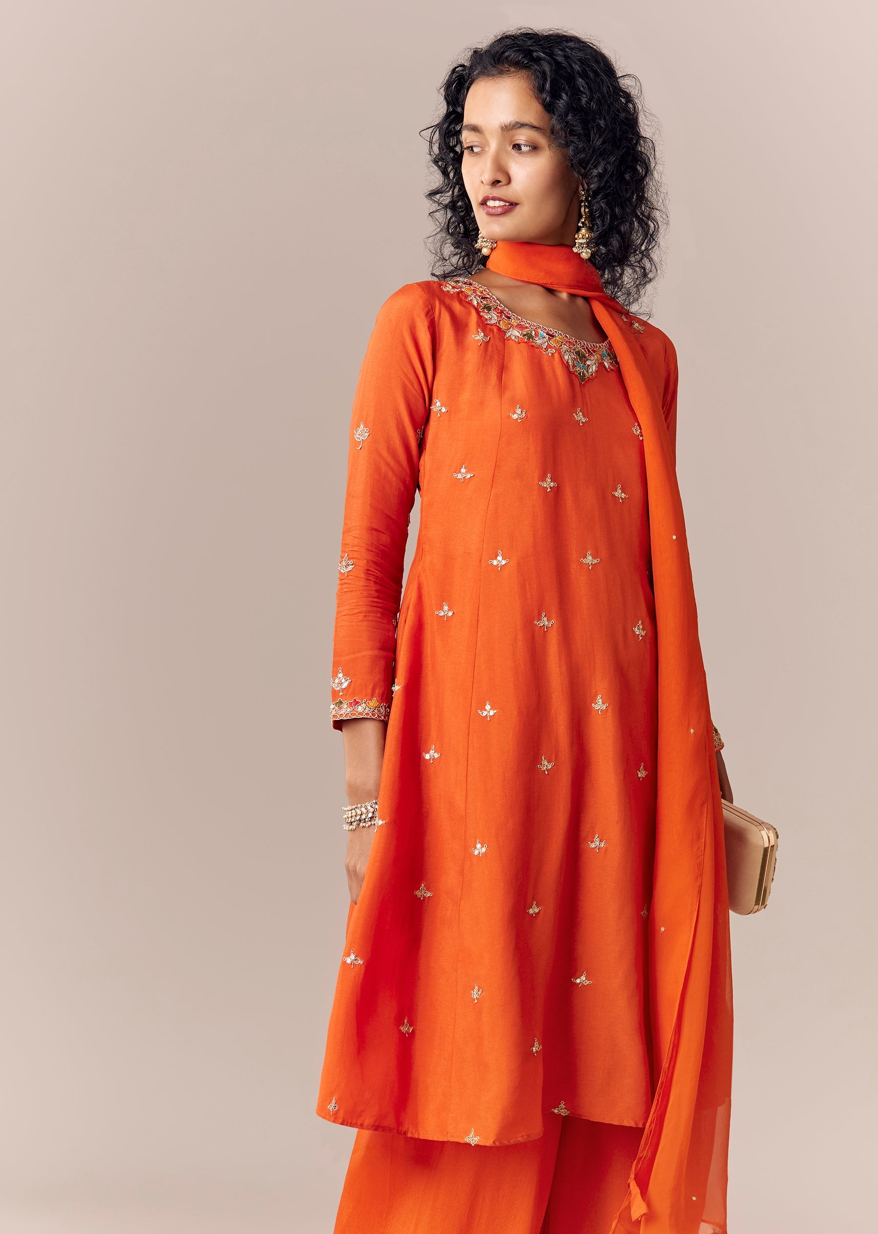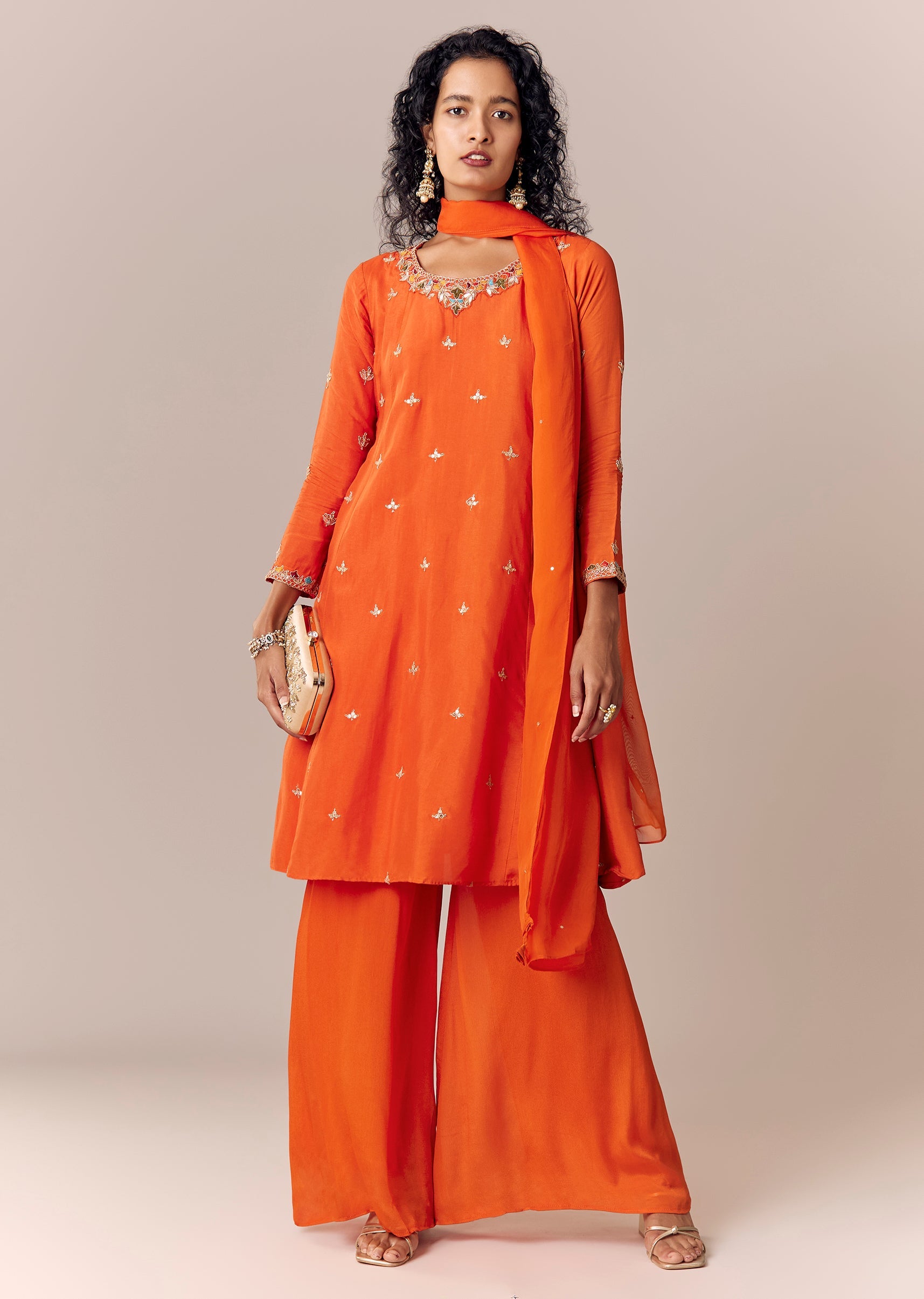 Orange Zari Work Anarkali Palazzo Set With Dupatta
