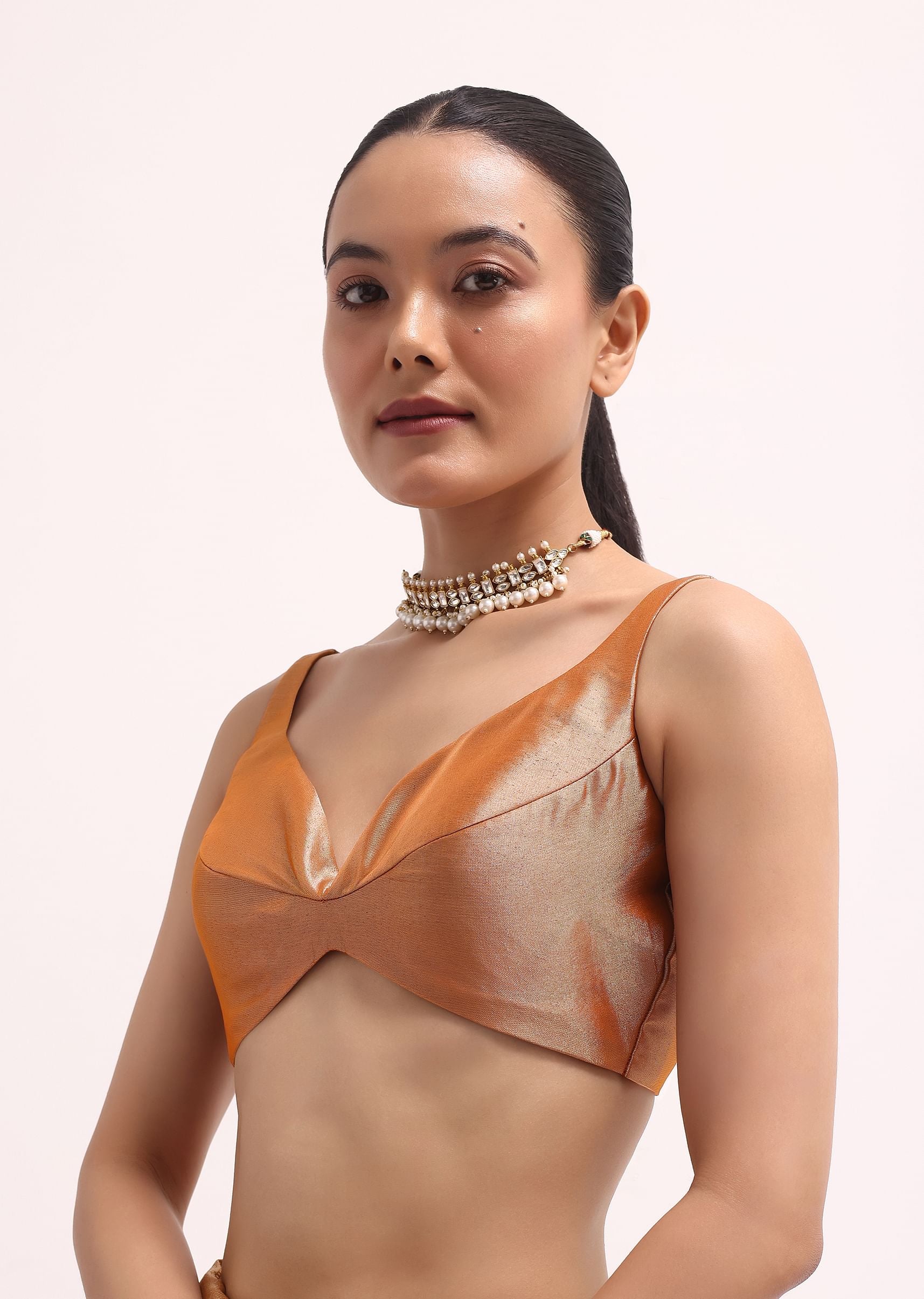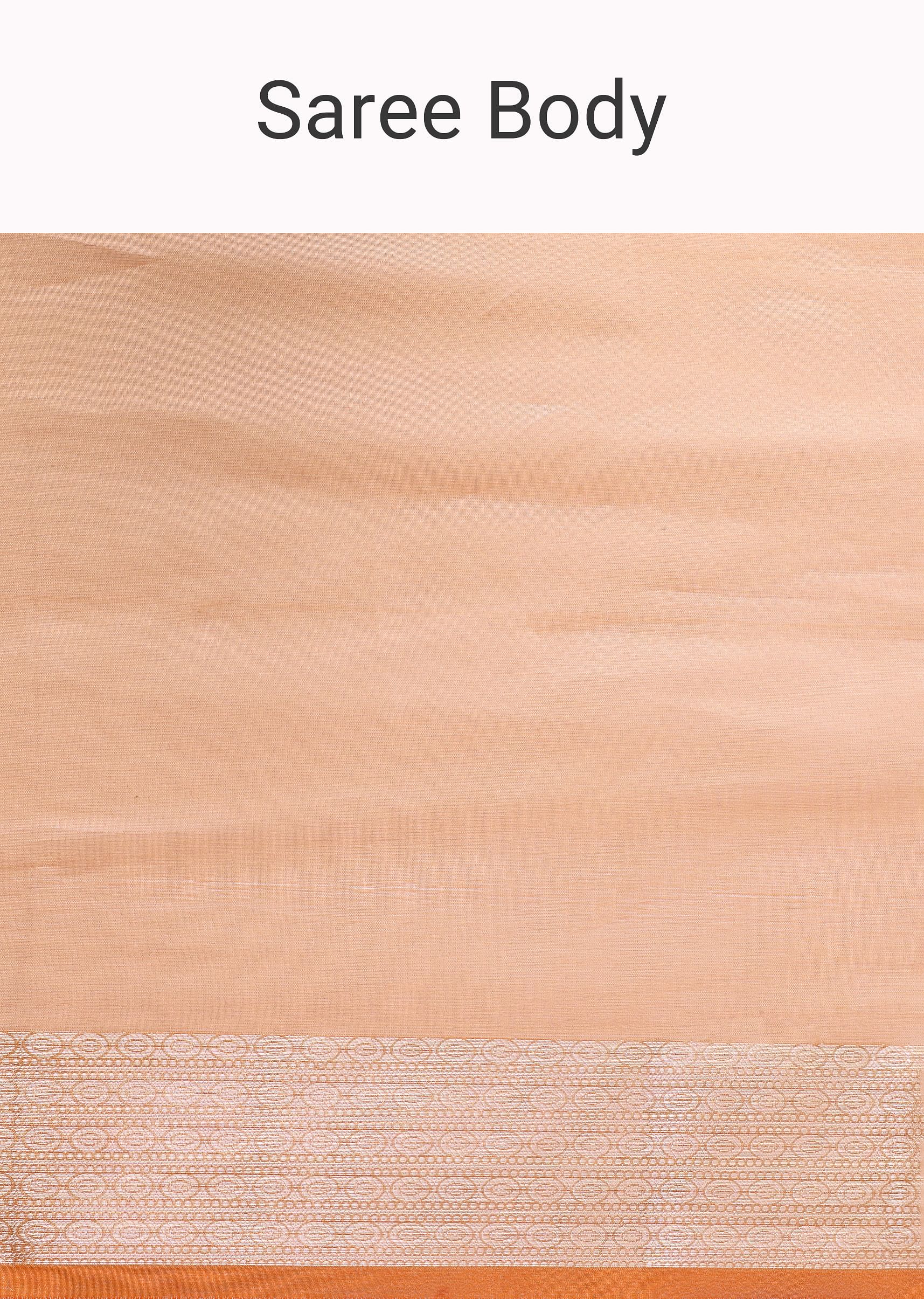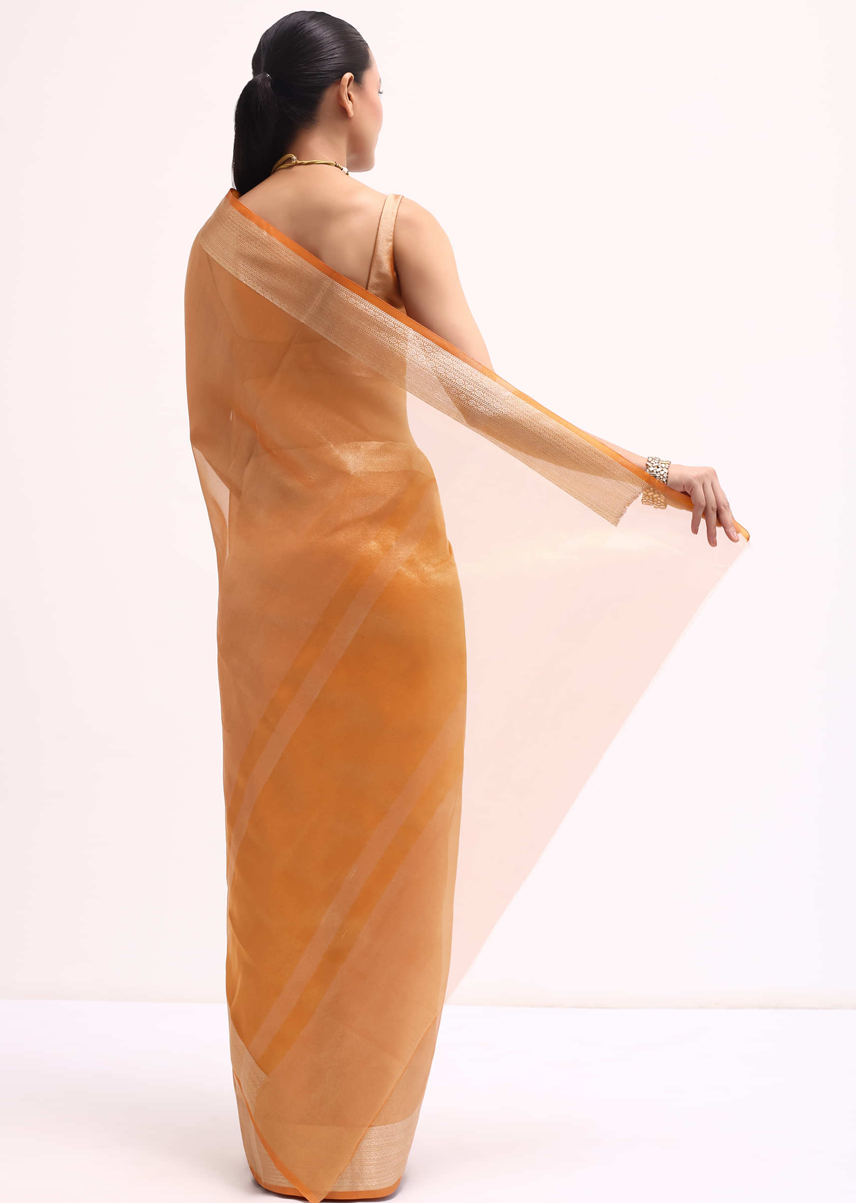 Orangish Gold Zari Chanderi Silk Saree With Unstitched Blouse