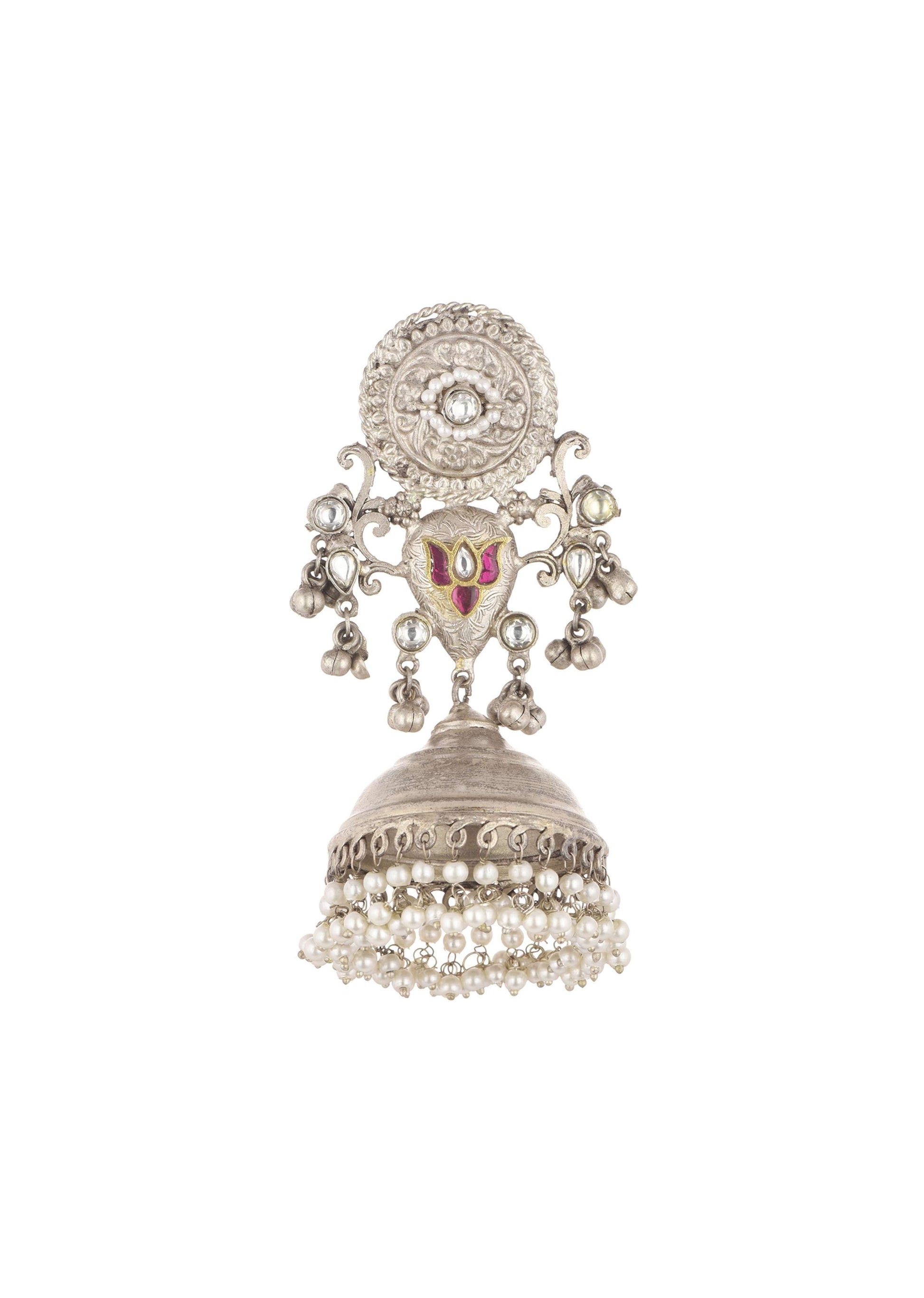 Oxidised Silver Finish Jhumkas With Meenakari Work